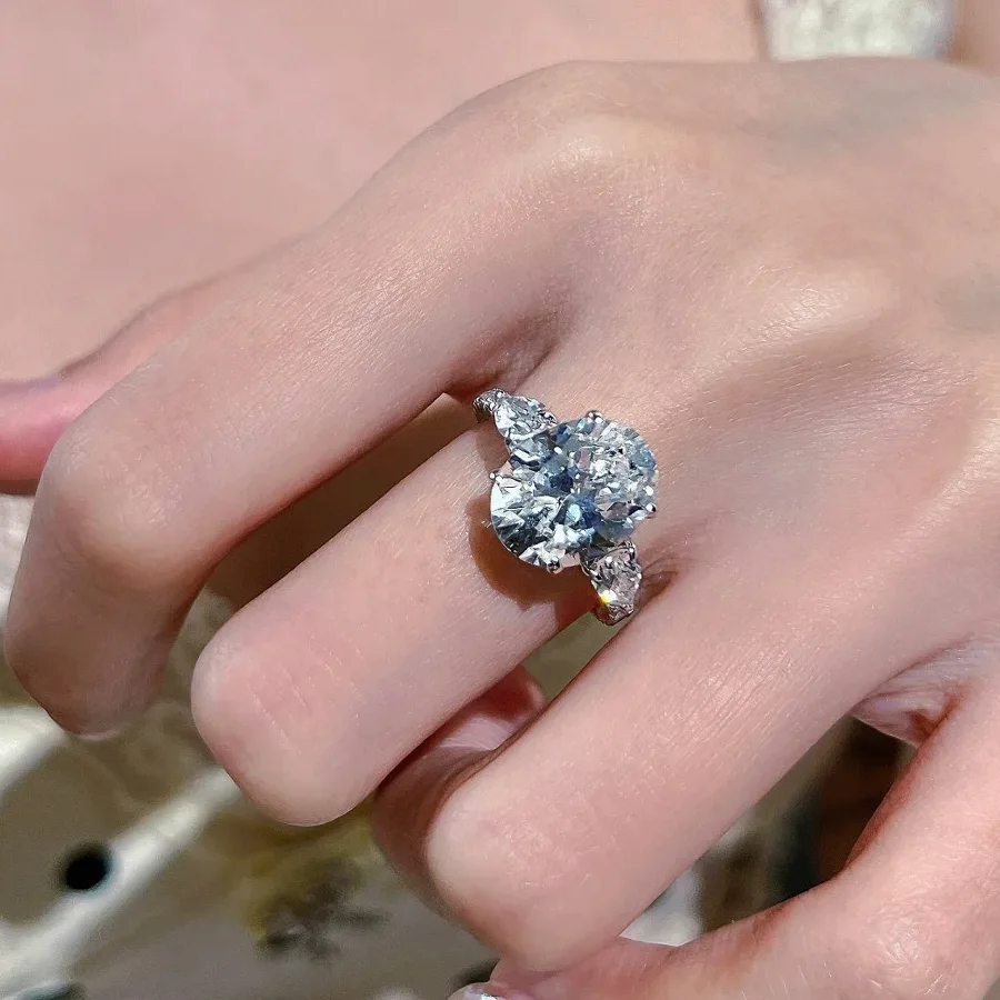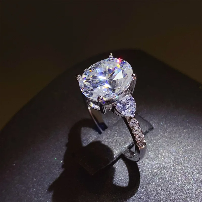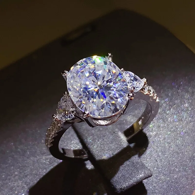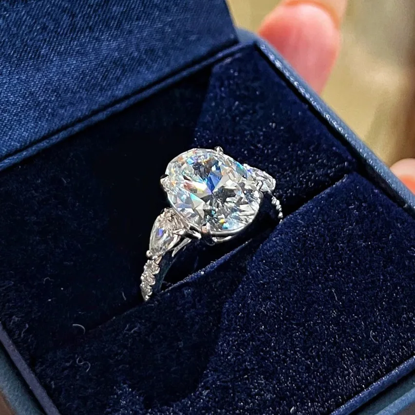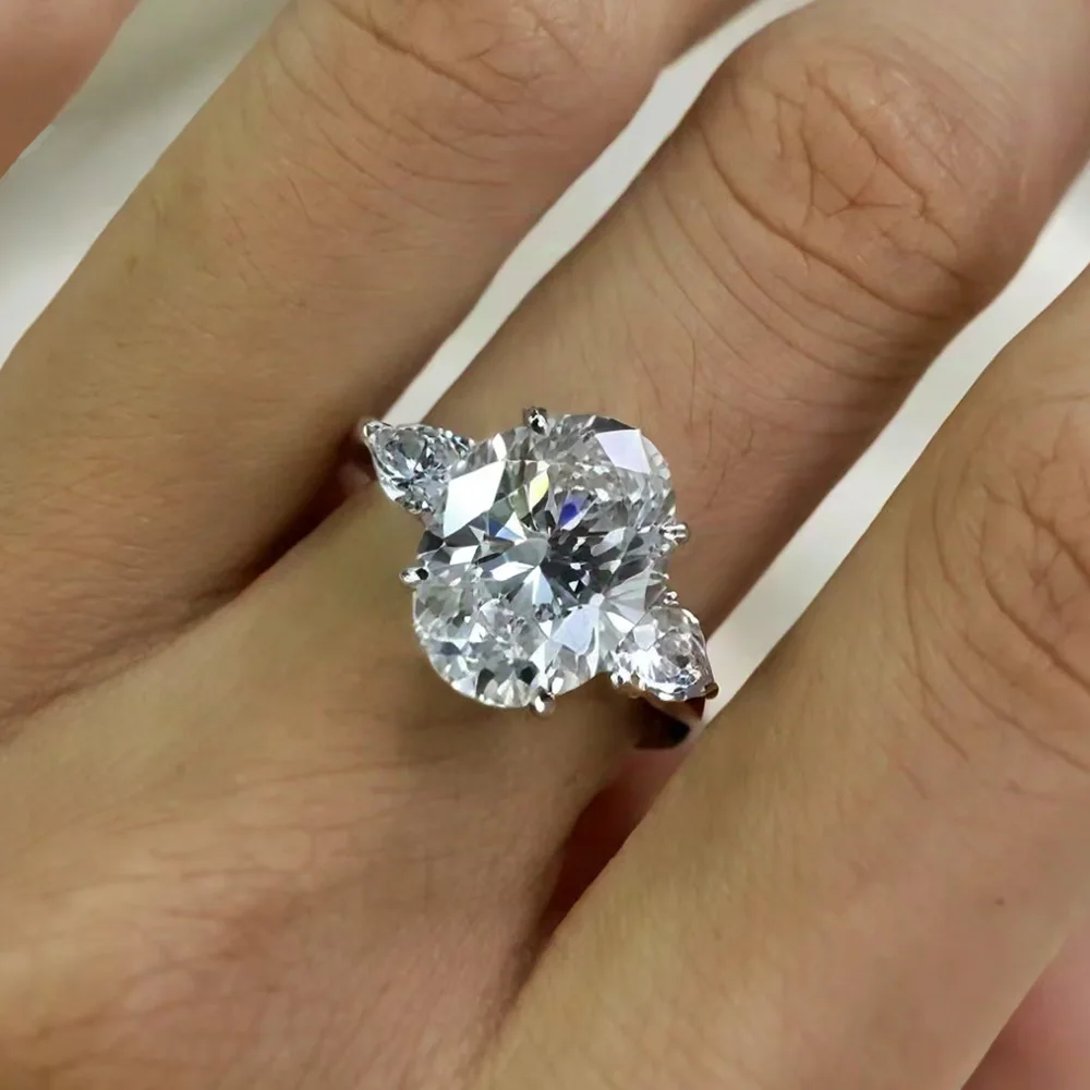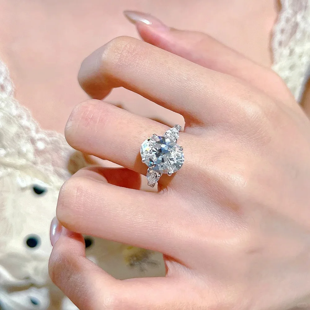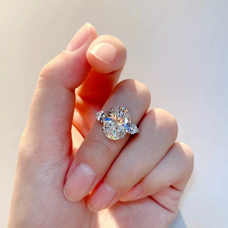 BXINY 5CT Oval Cut Moissanite Ring S925 Silver D Color Lab Diamond For Women Three Stone Wedding Band Fine Jewelry GRA Certified