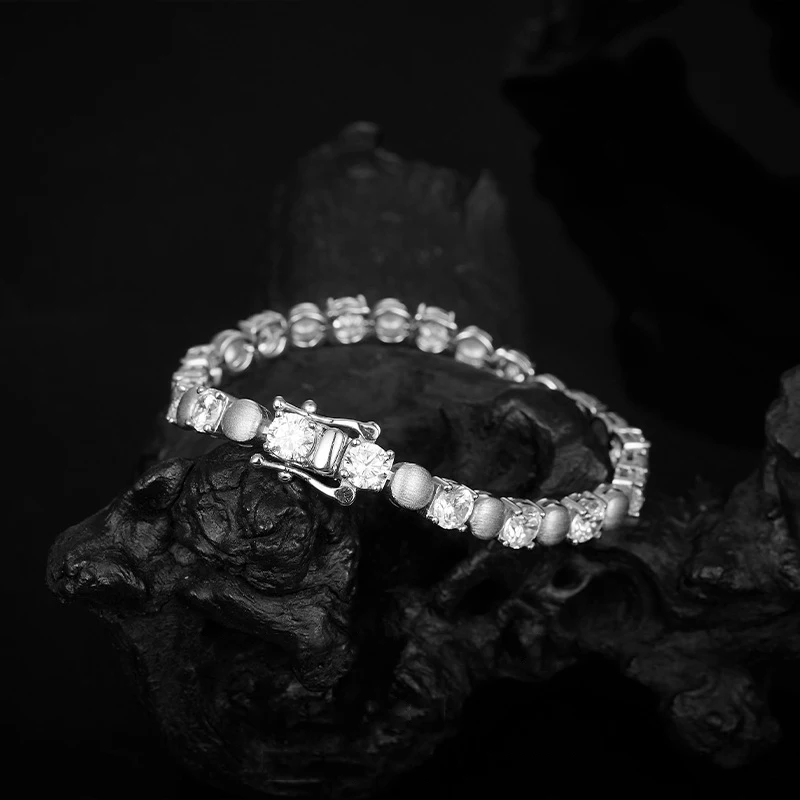 BXINY 5mm Moissanite Bracelets 925 Sterling Silver for Women Men GRA Certified Lab Diamond Vintage Hand Chain Fine Jewelry Gifts