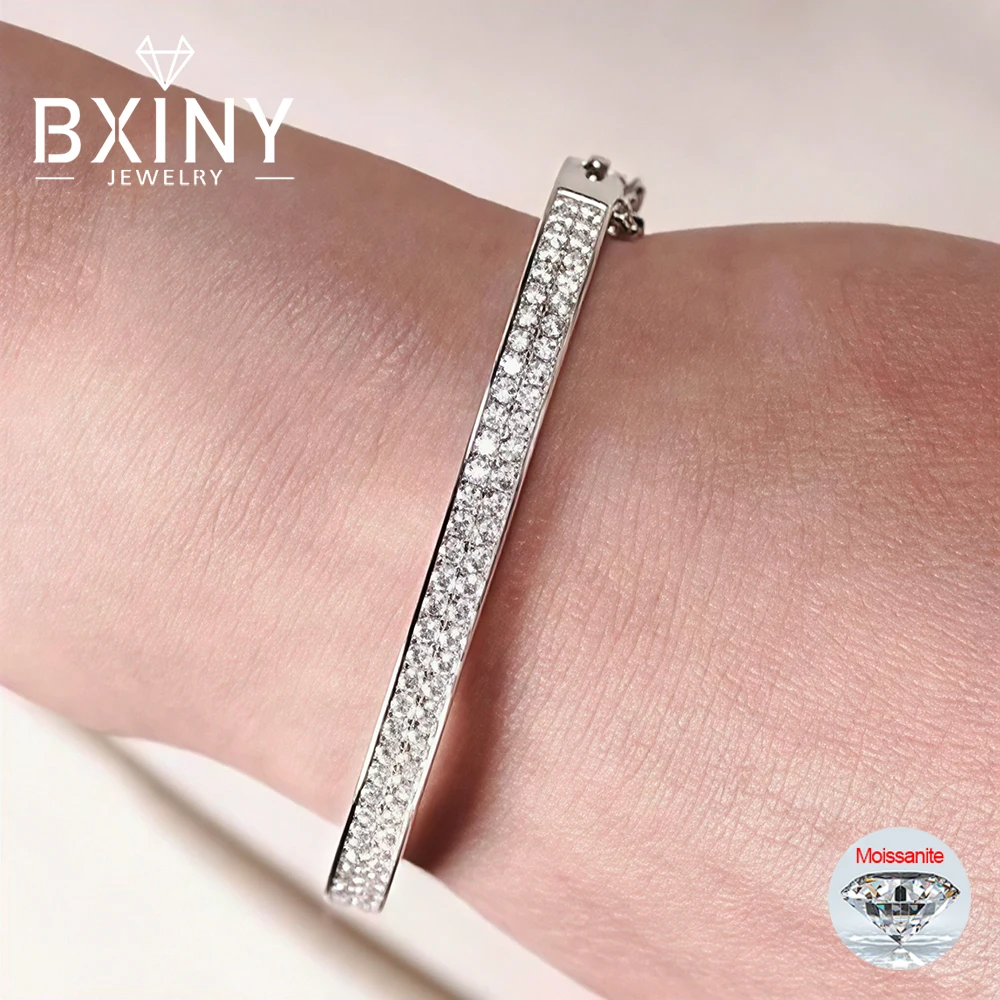 BXINY All 2mm Moissanite Bangle 100% S925 Silver GRA Certified Lab Diamond Bracelets for Women Bridal Wedding Gifts Fine Jewelry