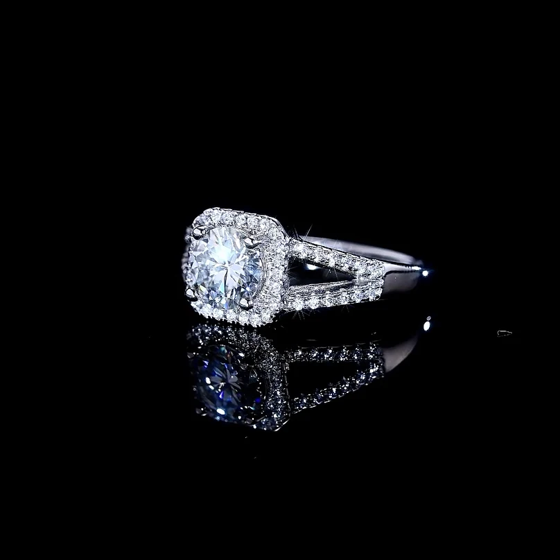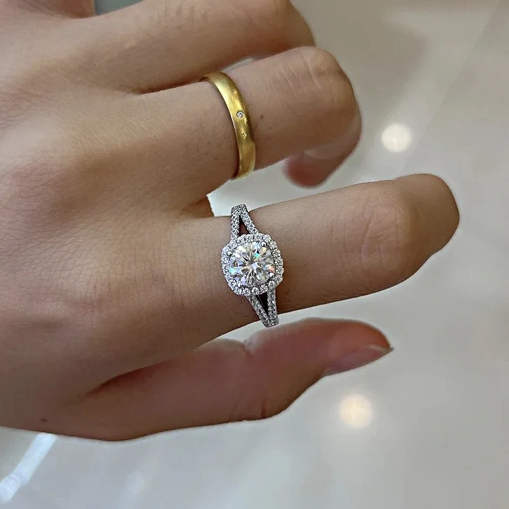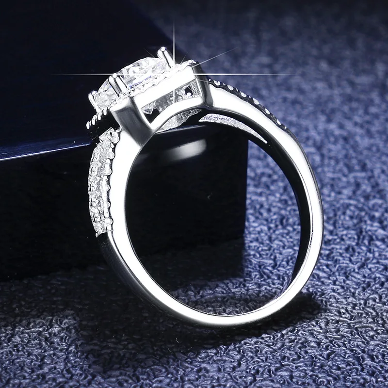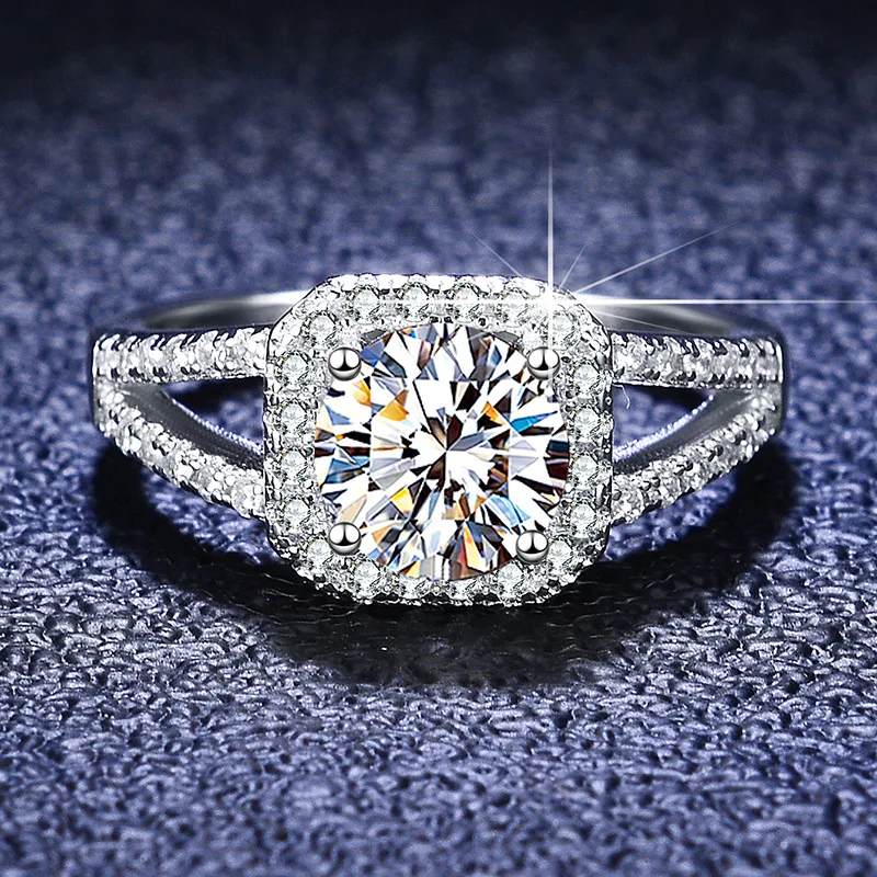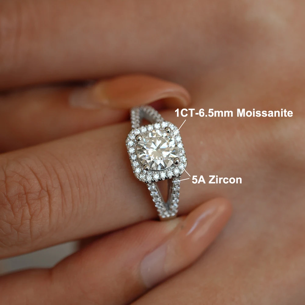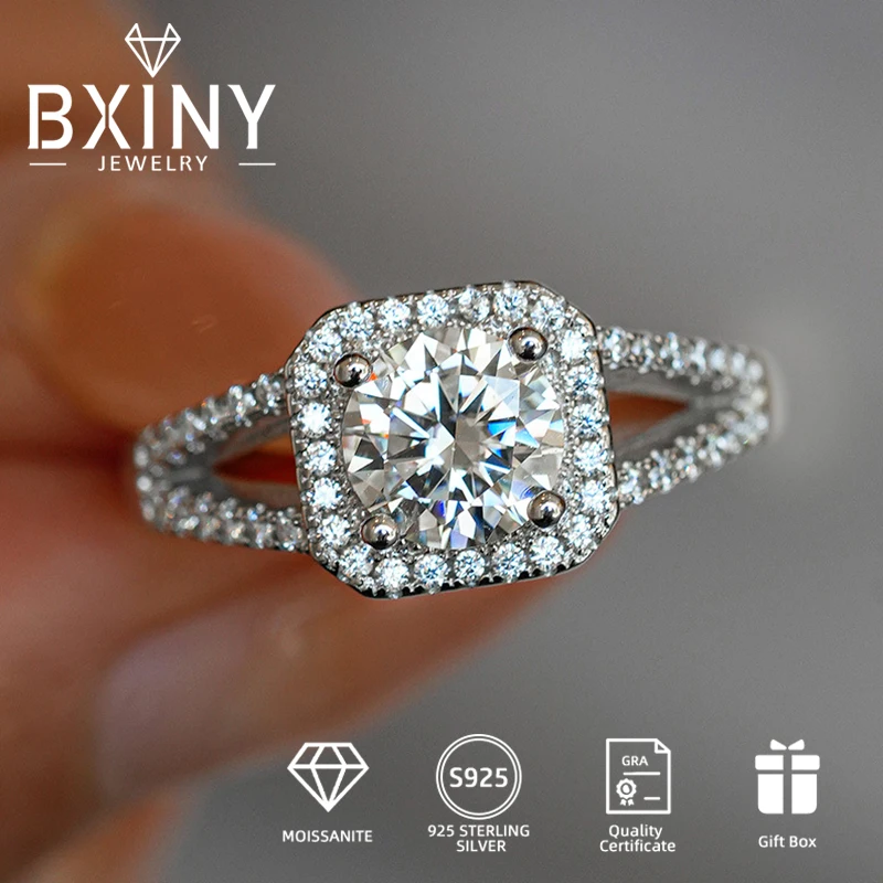 BXINY GRA Certified 1Carat Moissanite Rings 925 Sterling Silver D Color Lab Diamond Square Halo Wedding Bands for Women Jewelry