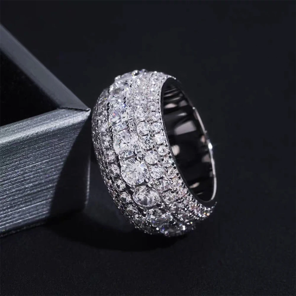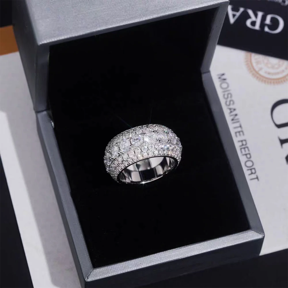 BXINY Luxury Full Moissanite Rings 925 Sterling Silver D Color Lab Diamond For Women Men Hiphop Bands Fine Jewelry GRA Certified