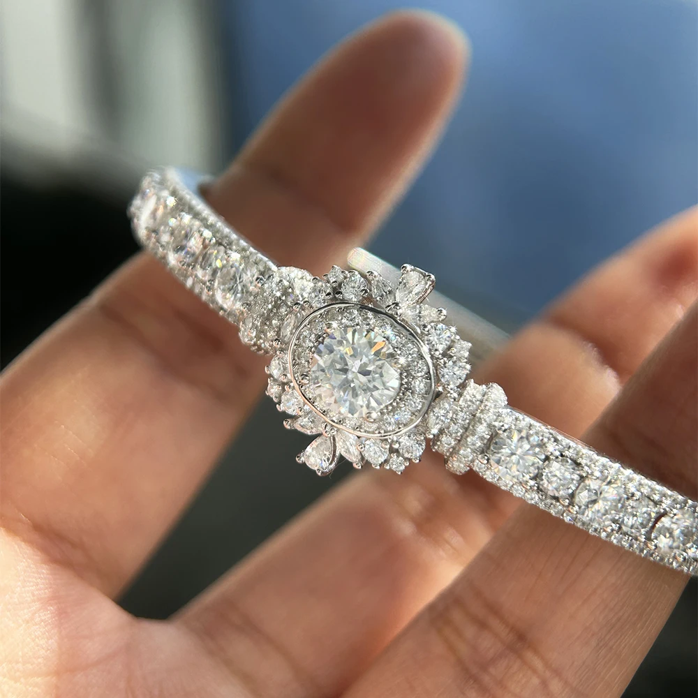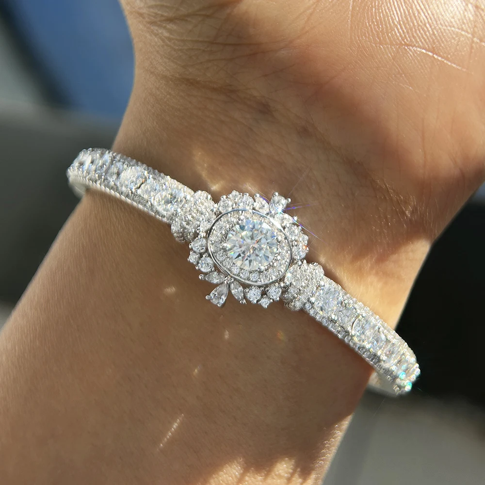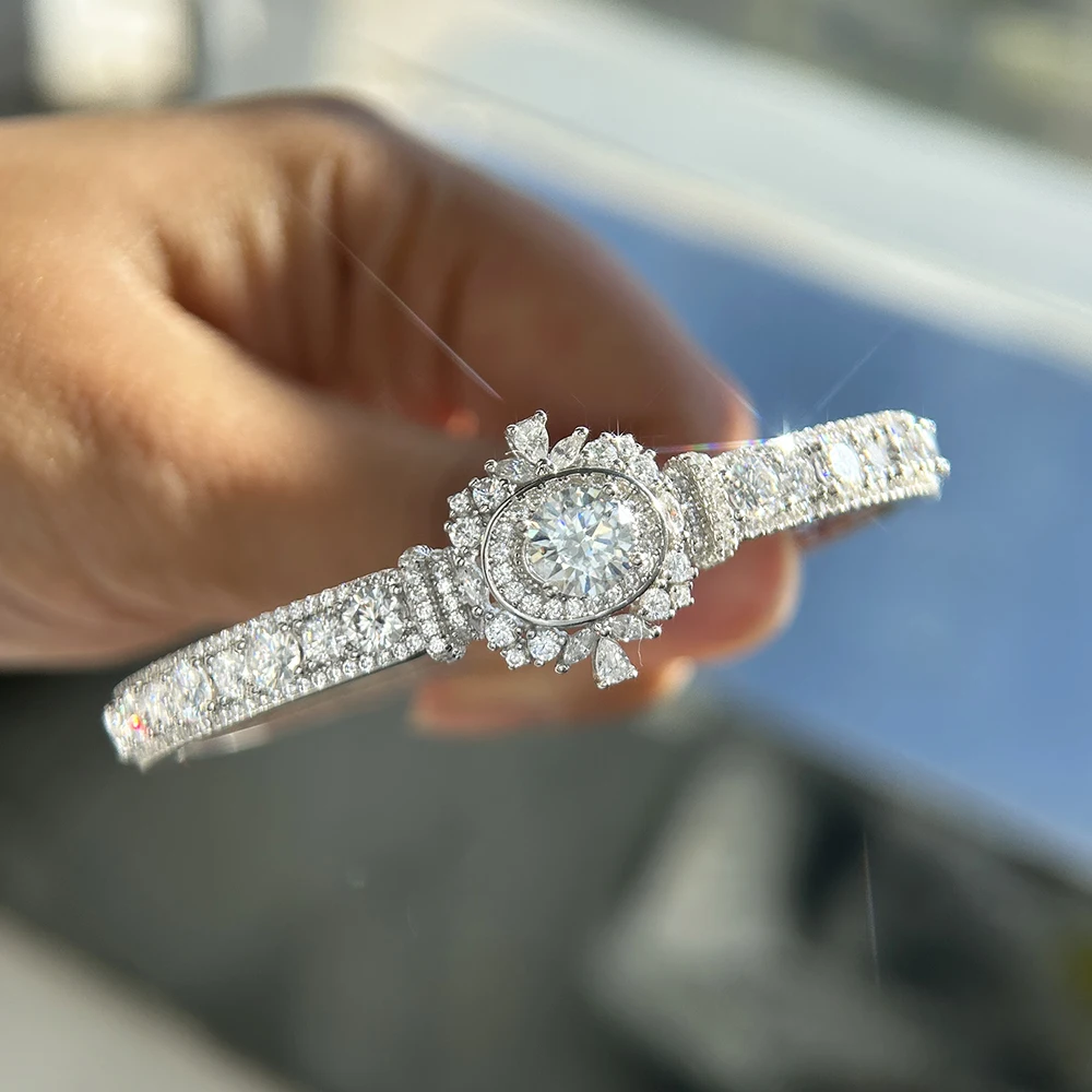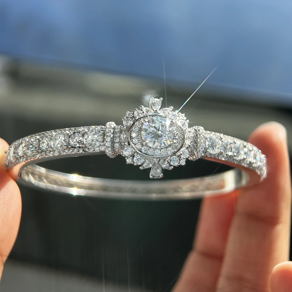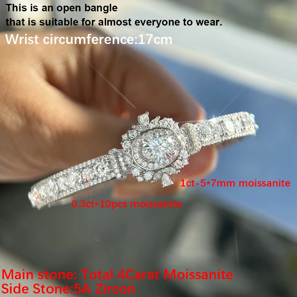 BXINY Luxury Moissanite Open Bangles 925 Sterling Silver GRA Certified Lab Diamonds Bracelets for Women Party Fine Jewelry Gifts