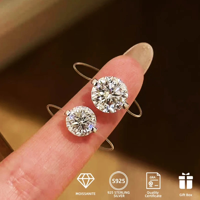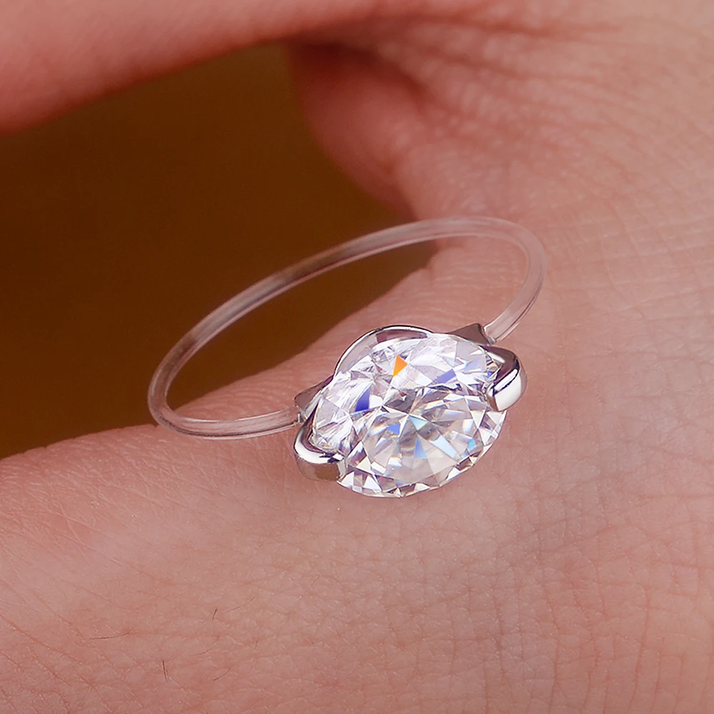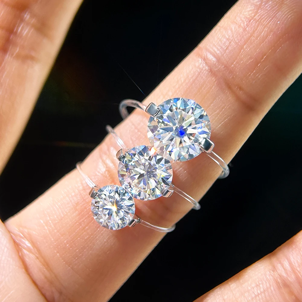 BXINY Transparent Fishing Line Moissanite Rings S925 Silver GRA Certified Lab-grown Diamond Solitaire Wedding Bands Fine Jewelry