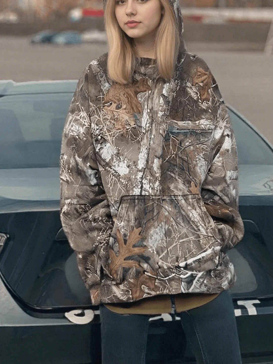 MATERIAL: Our camo hoodie made of Polyester Keep you warm and relaxed all day in Spring, Fall and Winter DESIGN: Fall winter oversized vintage camo print hoodies for women, long sleeve graphic maple leaf print camo hoodie trendy, womens camouflage hoodies pullover MATCH: This womens camo hoodie is easy to match with shorts, skirts, skinny jeans, leggings, casual pants, cargo pants for daily casual look on cold days, ideal choice in your Wardrobe OCCASION: This vintage camo hoodie suitable for daily wear, weekend, camping, hunting, vacation, school, work, street wear, holiday, picnic and any time, comfortable to wear for Spring, Autumn and Winter Tips: S/M/L/XL. Please refer to product measurement size chat before ordering. Hand/Machine washable with cold water recommended; Let us know if you have any question and we will try our best to serve you within 24 hours