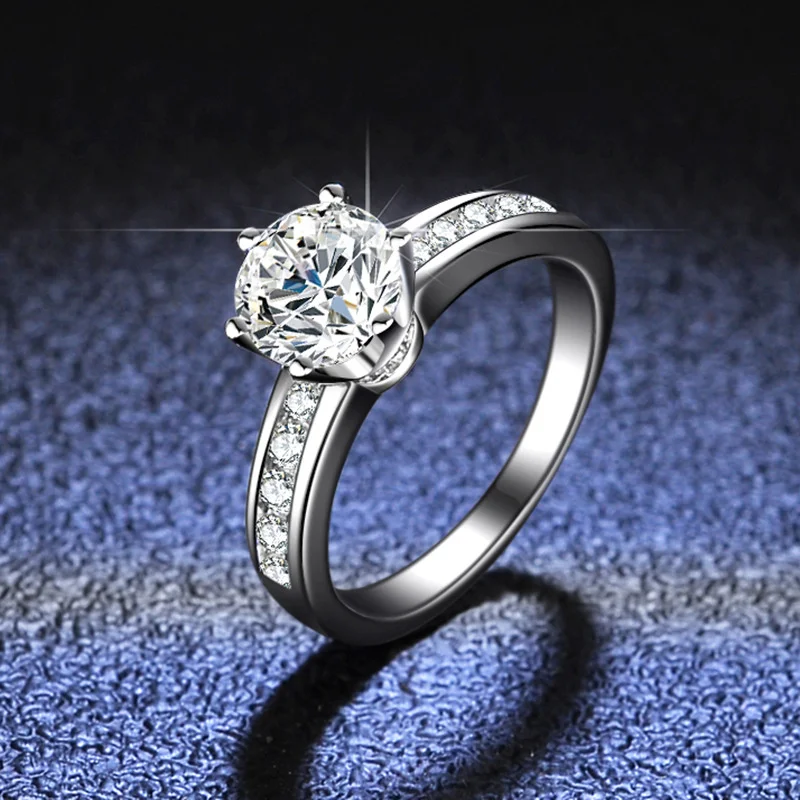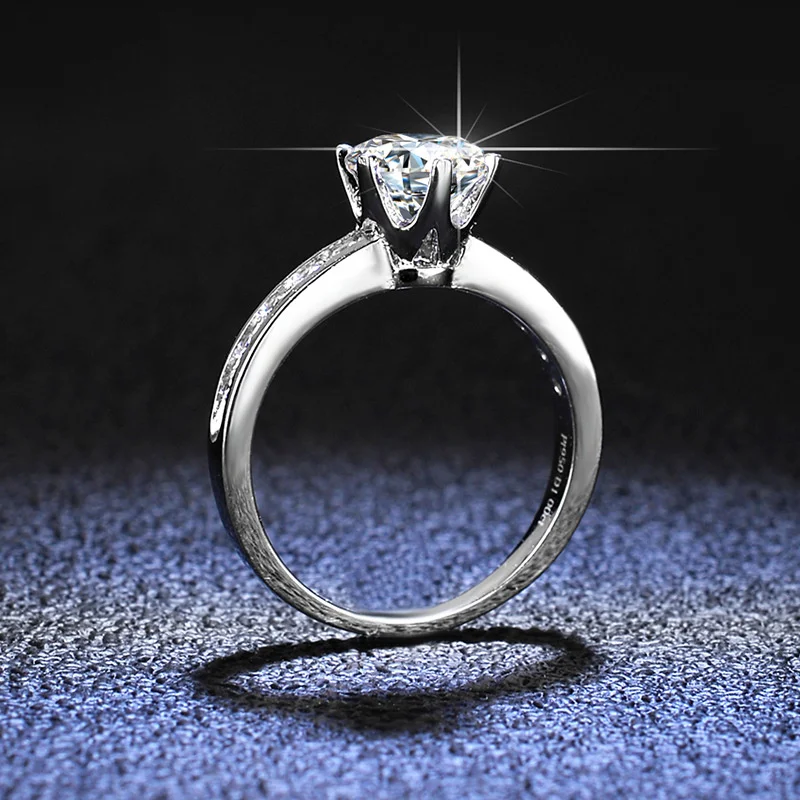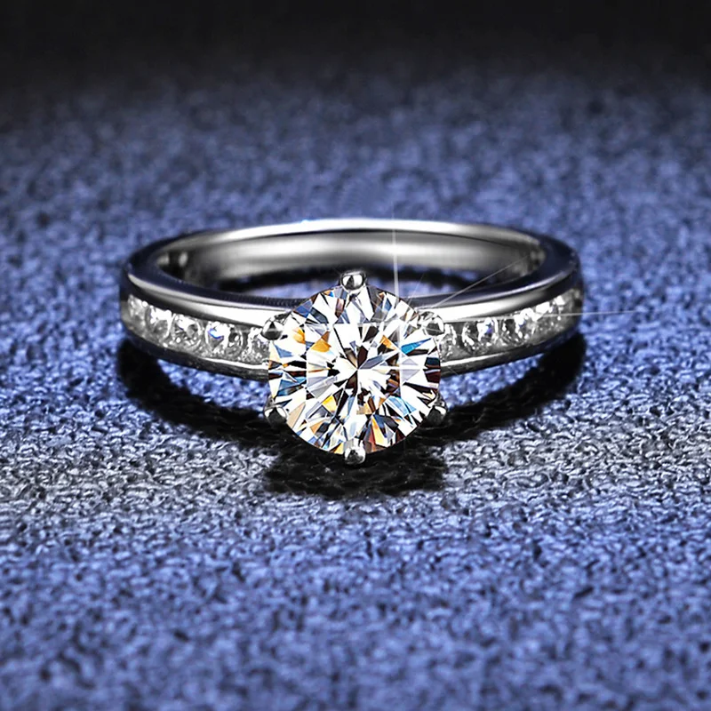 Certified 1CT 6.5mm Moissanite Rings for Women Classic Lab Diamond Wedding Bride Jewelry 925 Sterling Silver Band Fine Jewelry