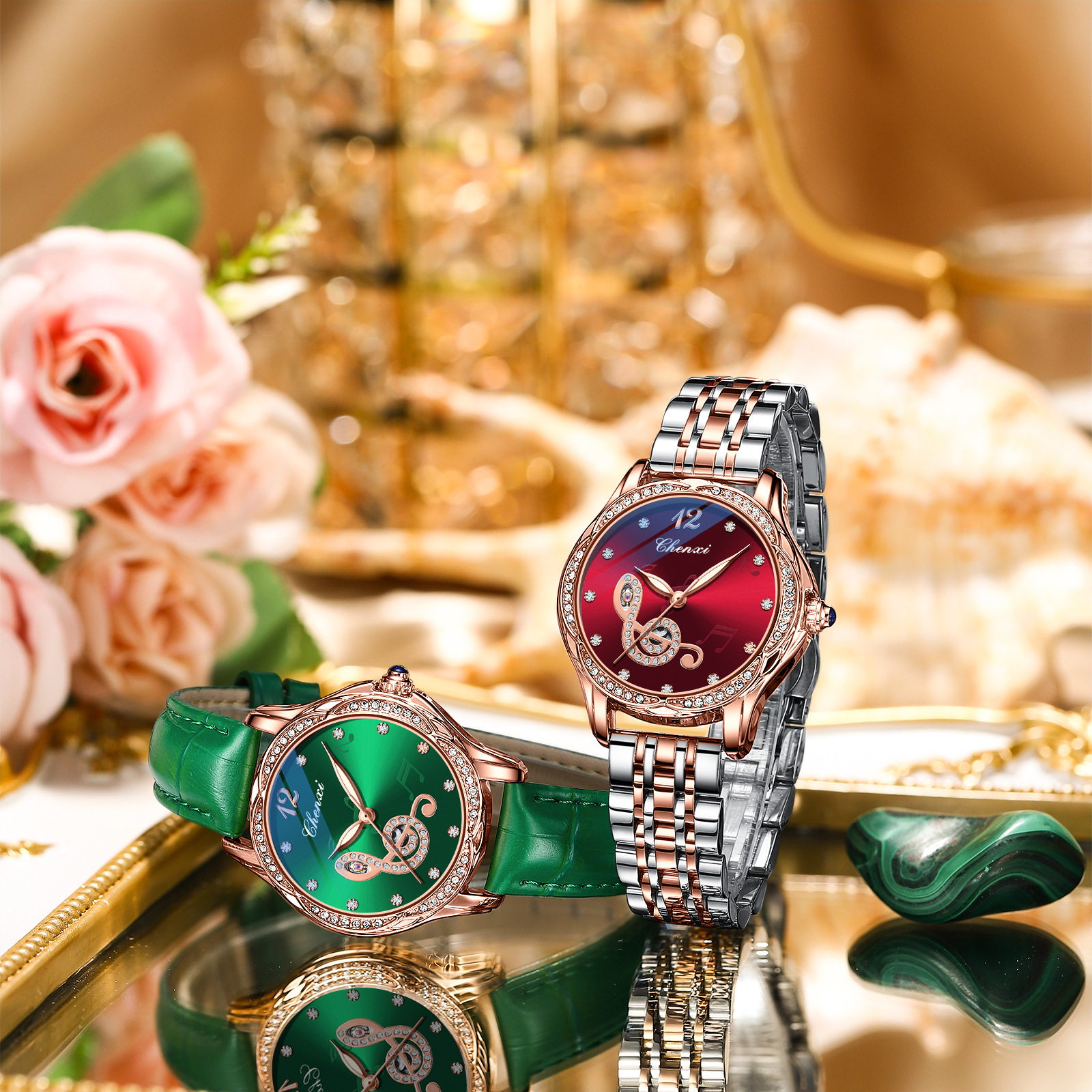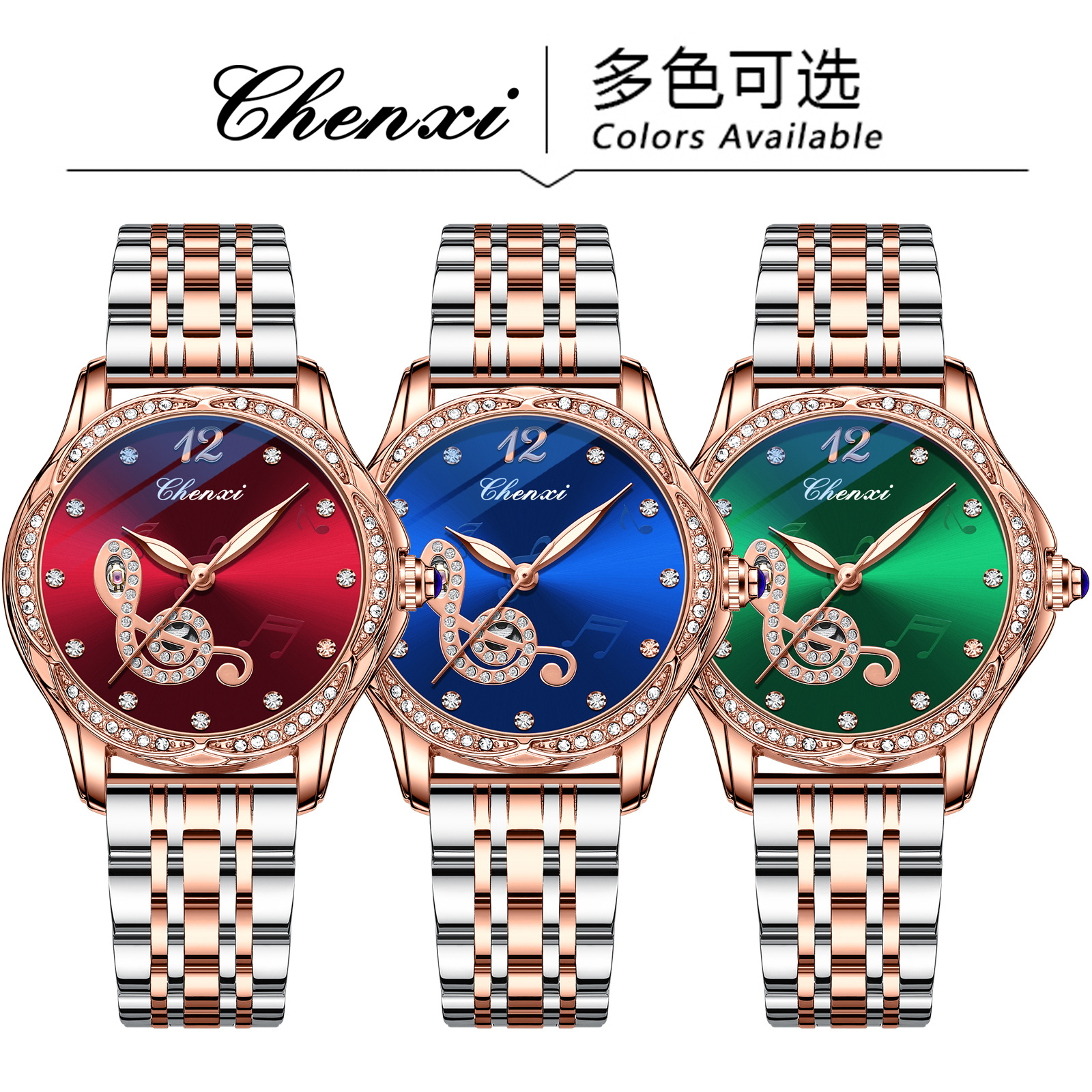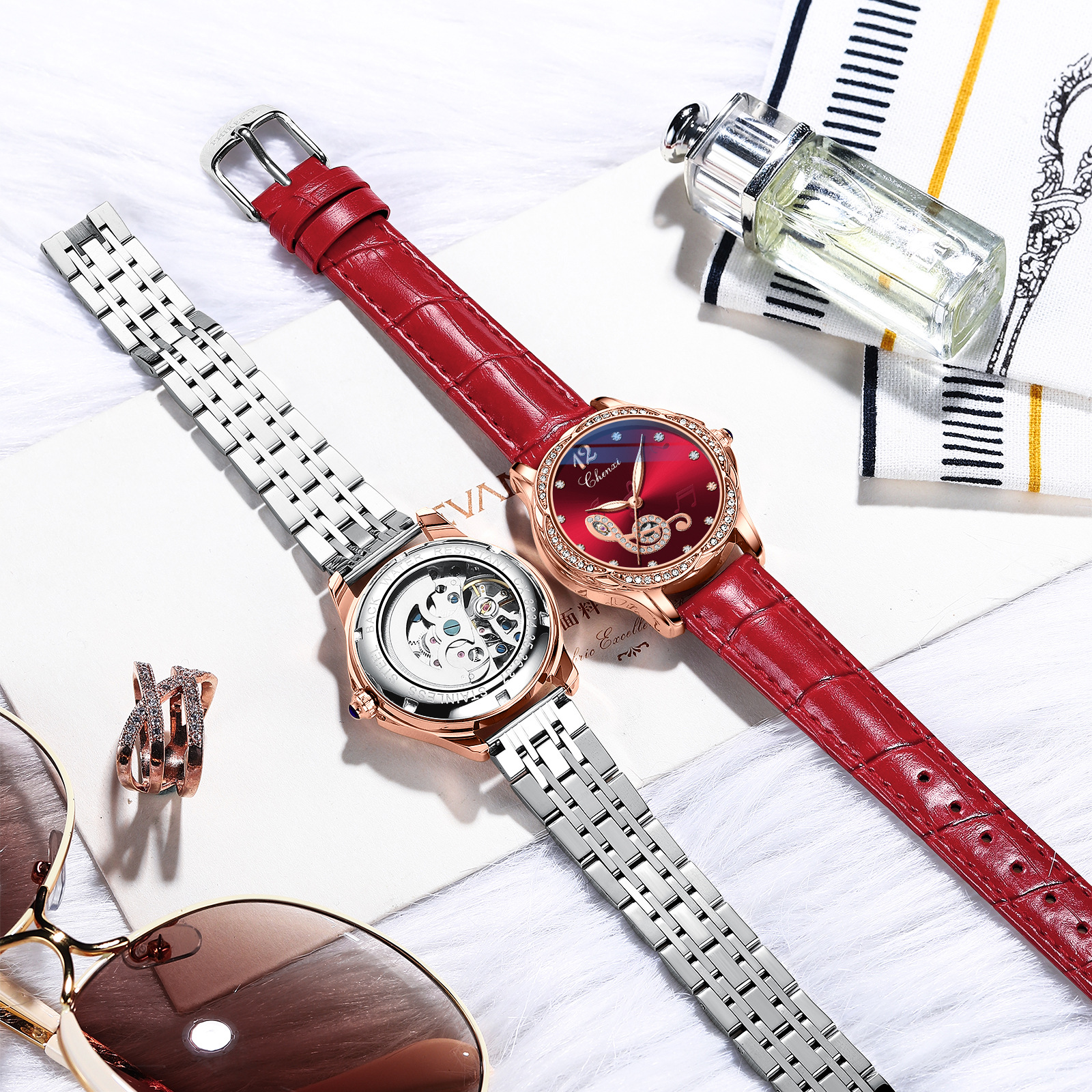 Chenxi Fully Automatic Mechanical Watch for Women | Double-Sided Hollow, Diamond-Encrusted, Luminous, Fashionable, Boho Style, Stainless Steel Band and Case