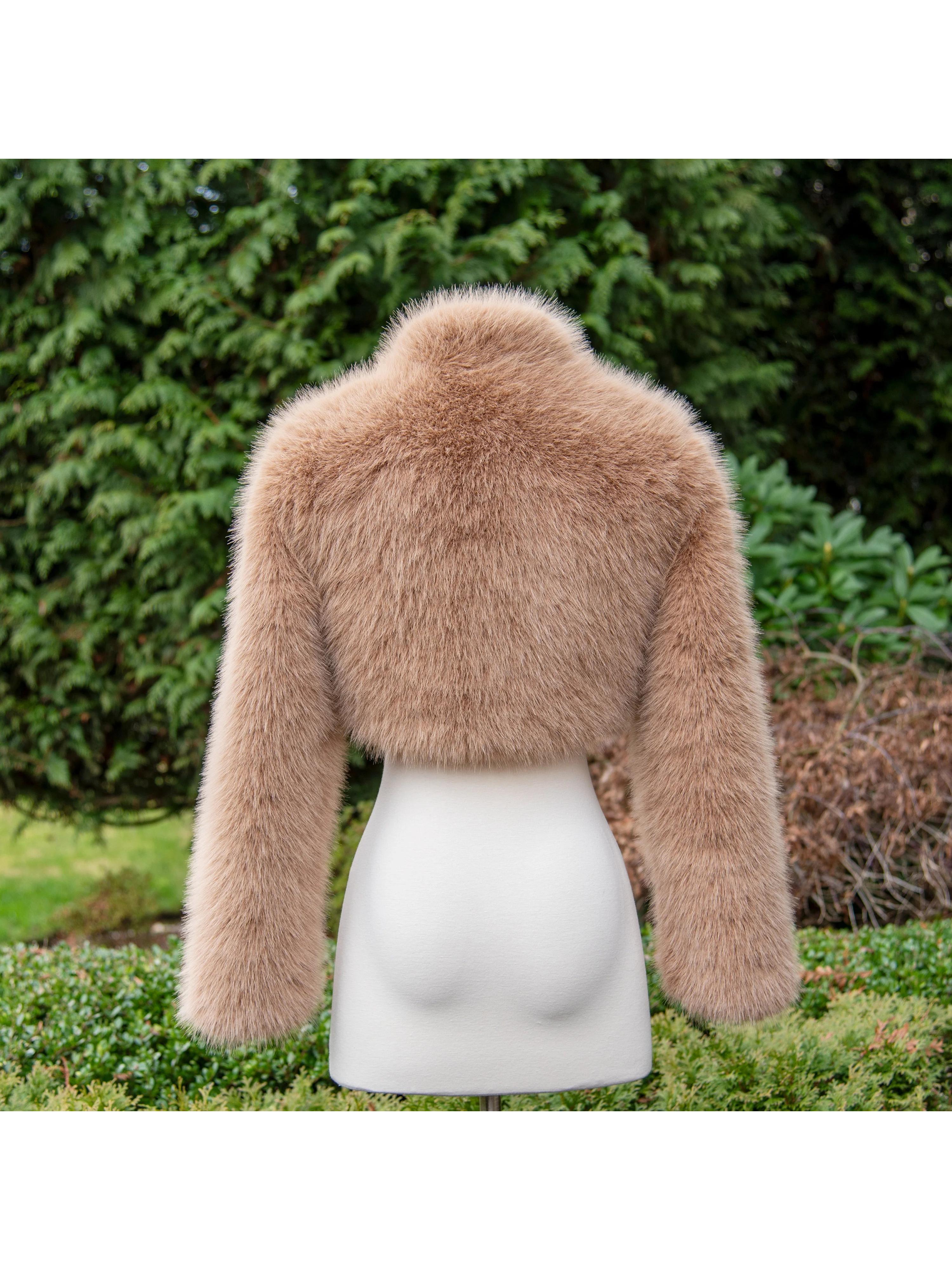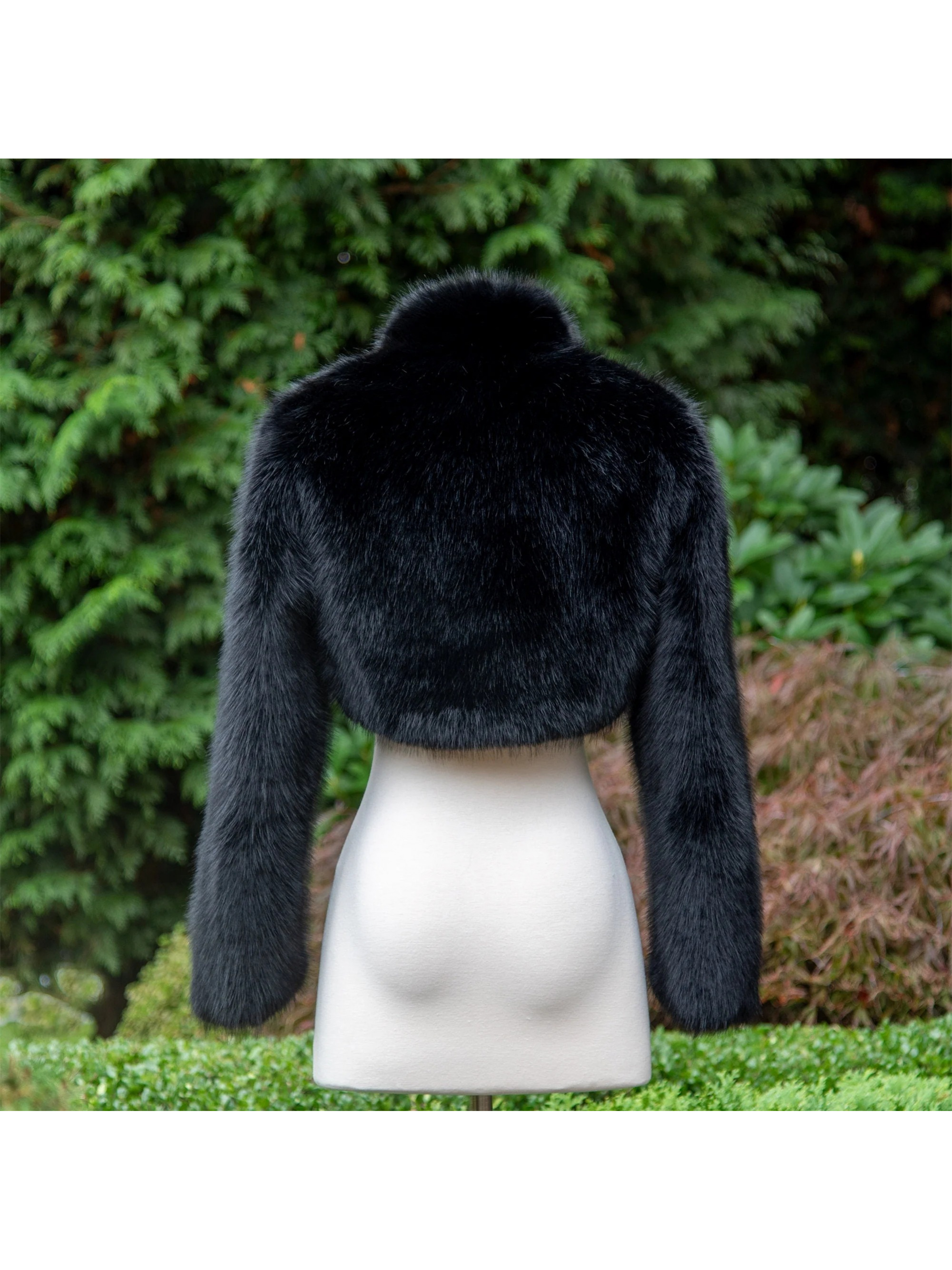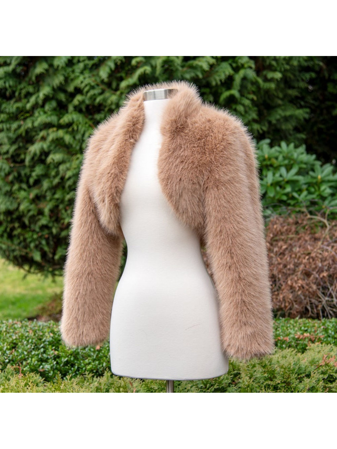 Chic Women’S Short Faux Jacket, Winter Enhanced Imitation Animal Coat, Opulent Plush Outerwear, Body-Enhancing, Cozy In-One Women’S Short Coat