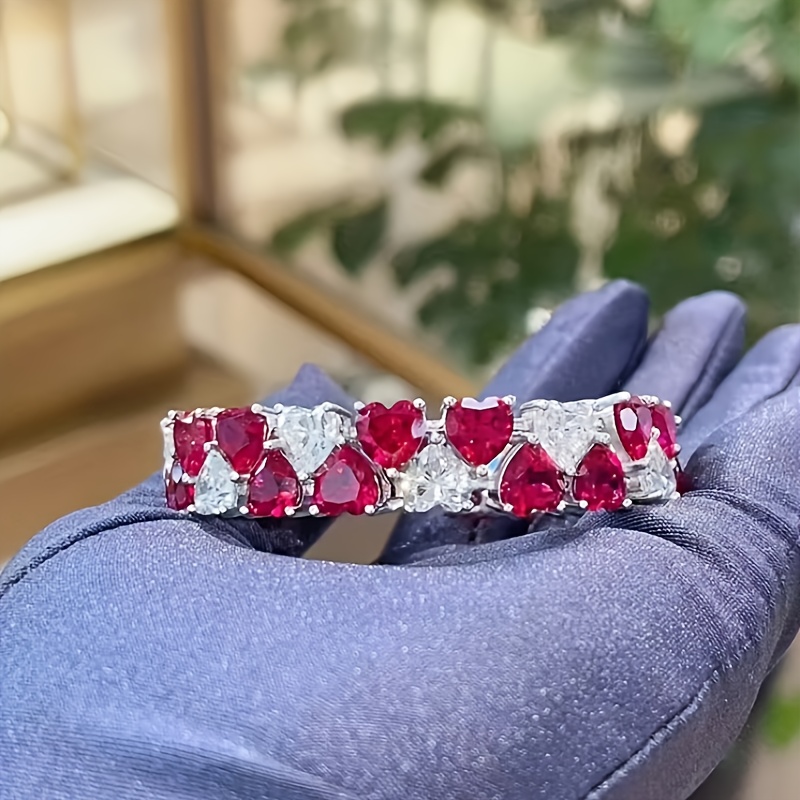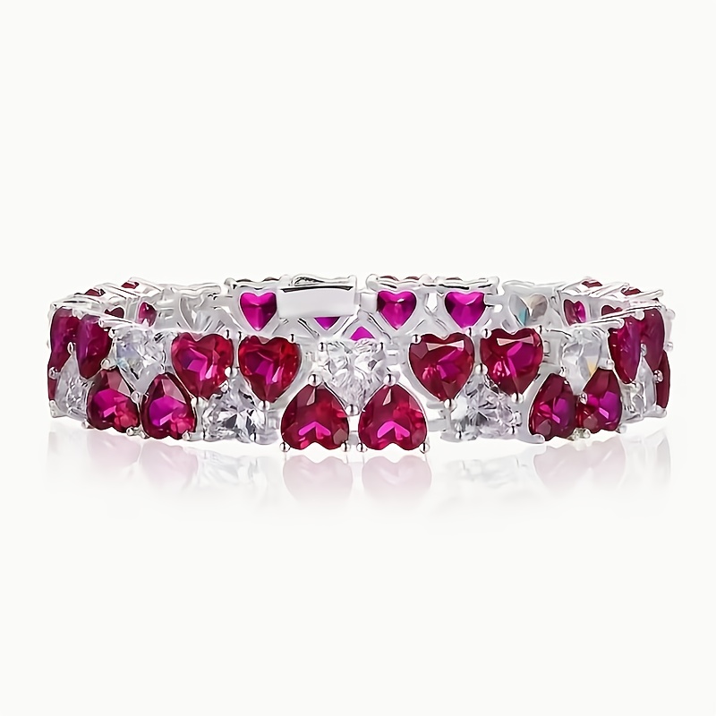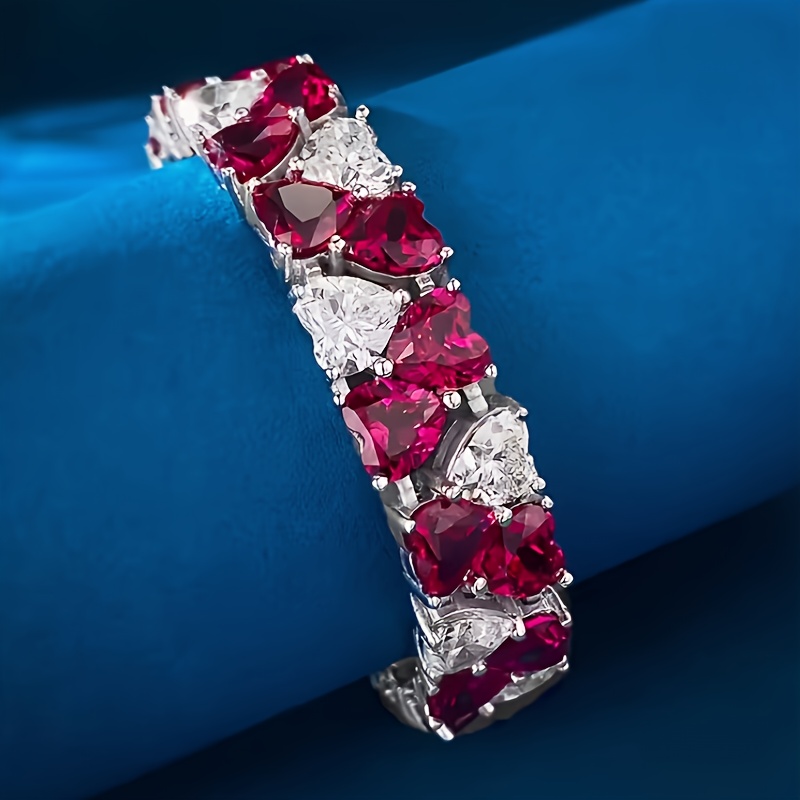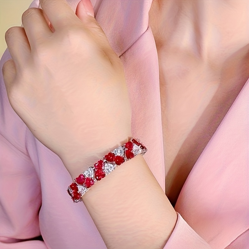 Christmas Limited 925 Silver Red & White Double Heart 7*7 Full Moissanite Bracelet, Luxury Retro Colorful Jewelry, Perfect Holiday Gift for Best Friends & Classmates, Holiday Jewelry, Gift for Her, Bohemian Jewelry, Elegant Design