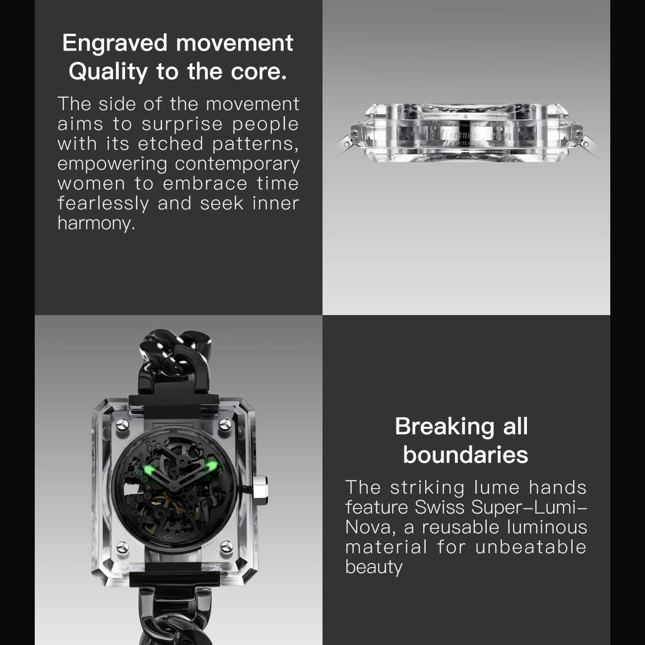 CIGA Design R Series Crystal Love Ladies Watches Luxury Automatic Watch Women Transparent Skeleton Mechanical Watch 3 Straps