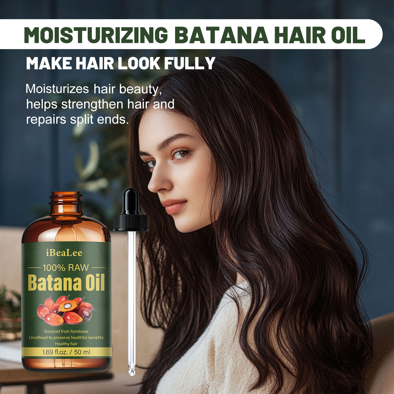 [Cold-Pressed Batana Oil] Ibealee Cold-Pressed Batana Oil – 50Ml Deep Conditioning & Strengthening Hair & Lash/Brow Oil for All Hair Types, Dried, Frizzy, Split Ends