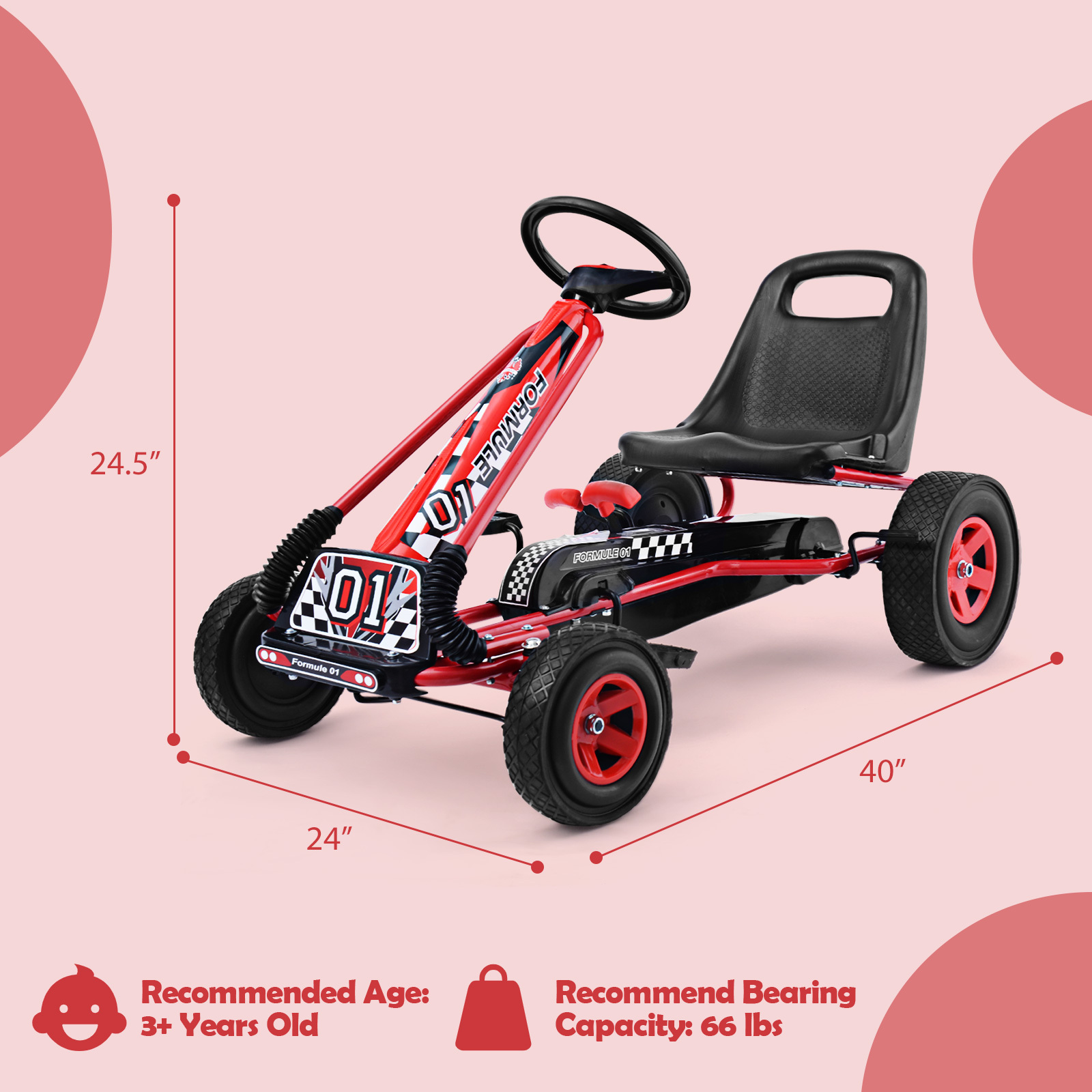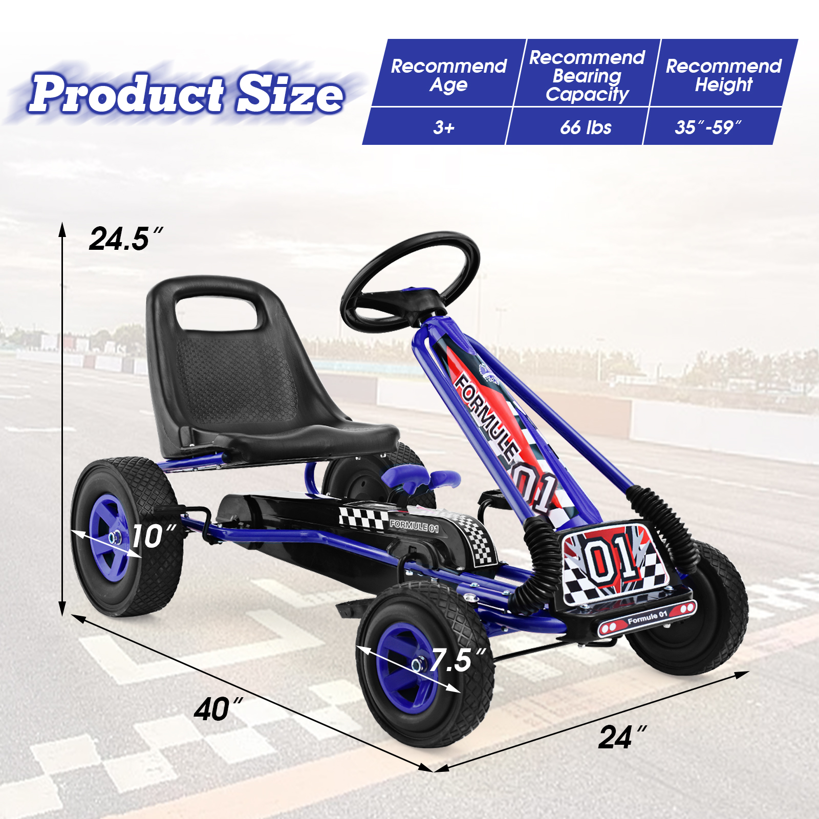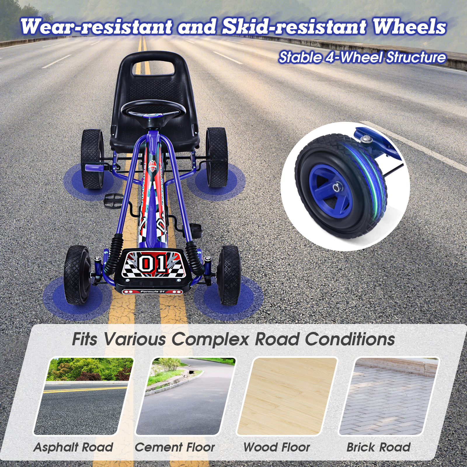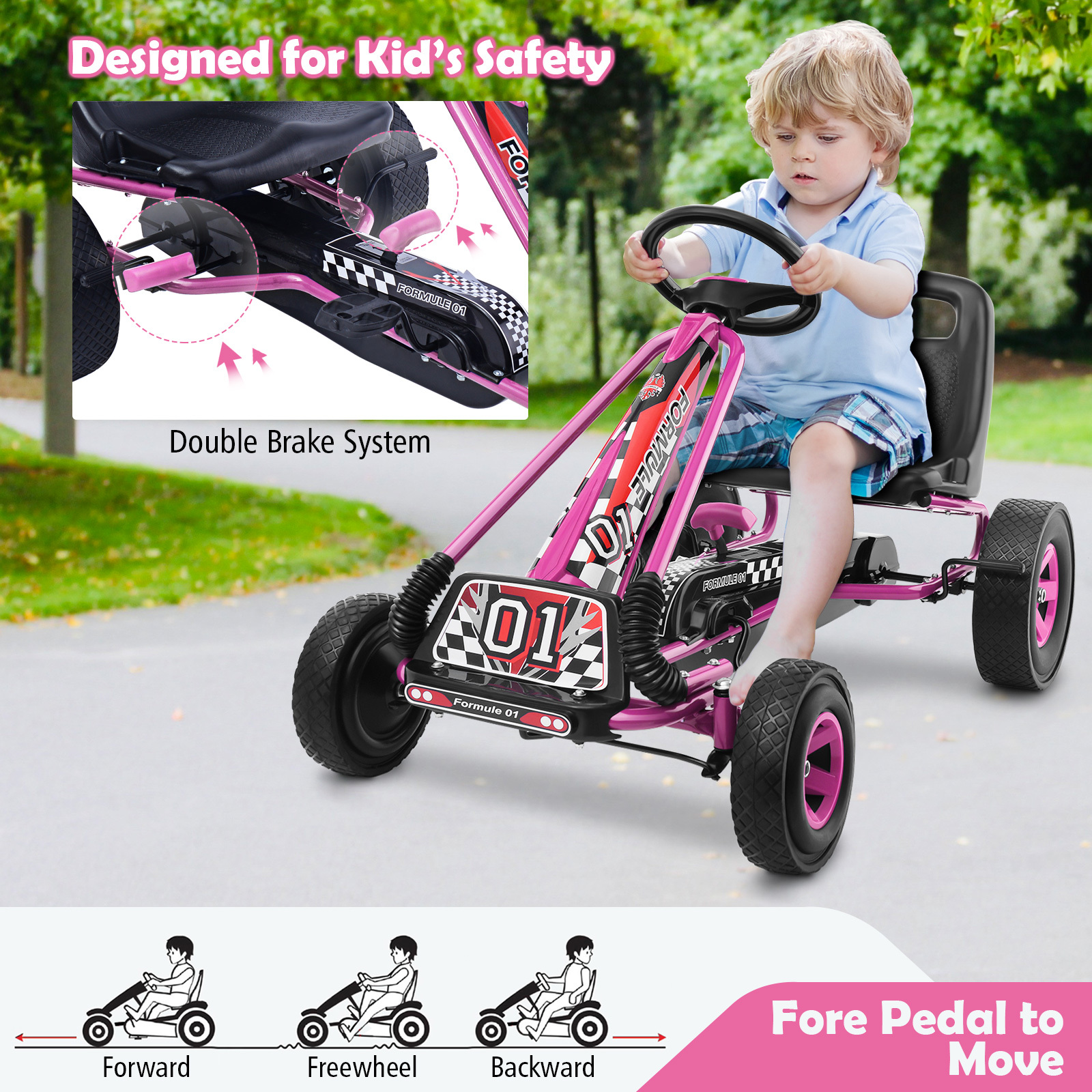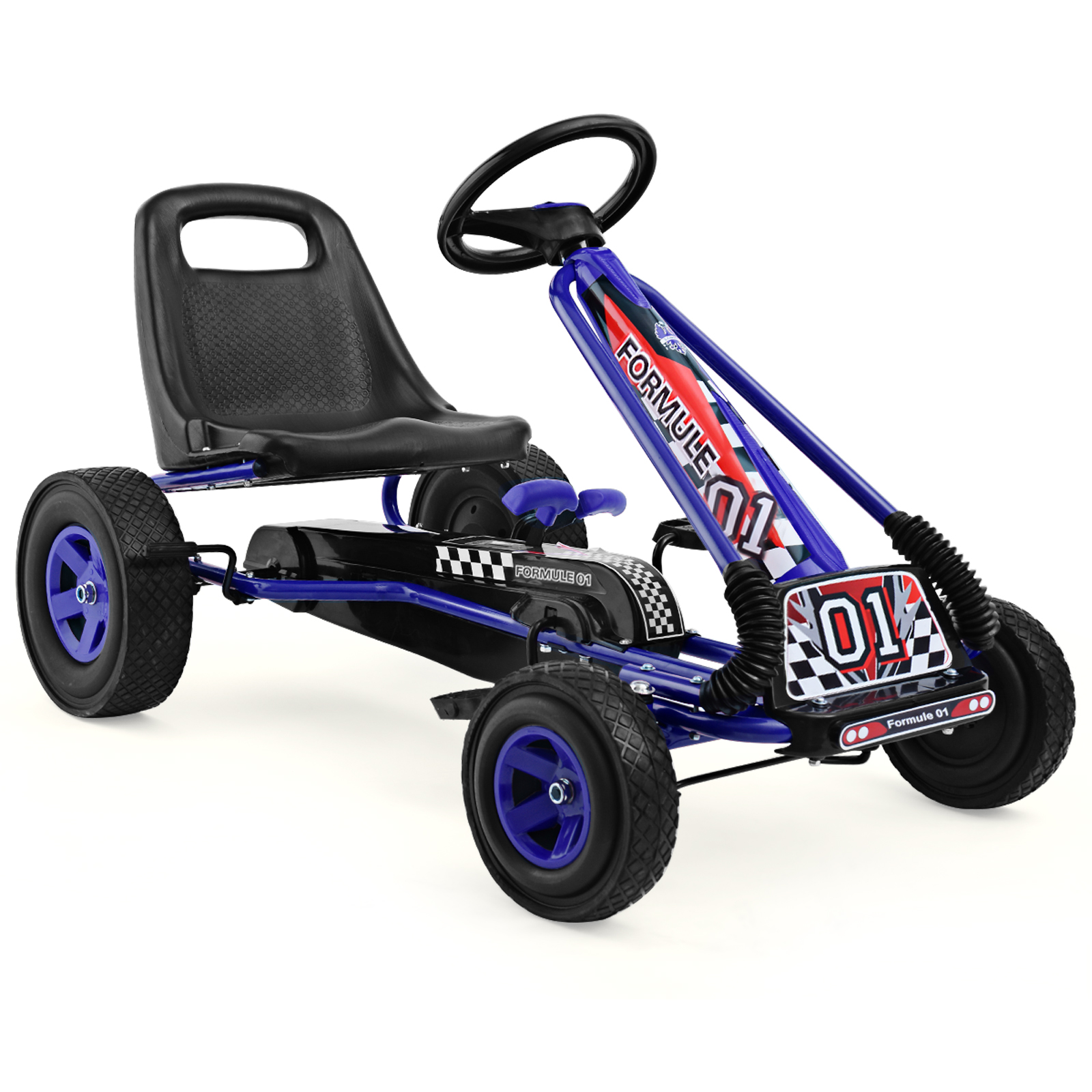 COSTWAY Children Pedal Go Kart for 3 to 8 Years Old, Directional Pedaling, Moves Forward and in Reverse, 3-point Steering Wheel, Ergonomic Adjustable Bucket Seat, Ride-on Car with Four Rubber Wheels, Steel Frame, Blue/Green/Red/Pink