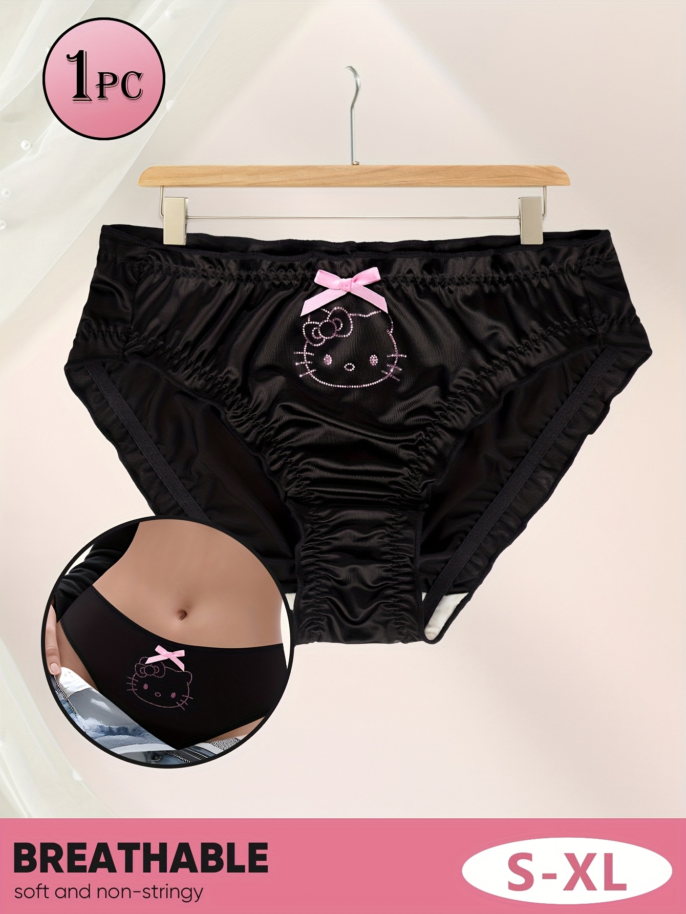 [Cute Hello Kitty Panties] Sanrio Hello Kitty High-Waist Breathable Lingerie Panties | Soft Non-Stretch Fabric, Cute Cartoon Design with Pink Bow & Floral Accents, S-XXL Sizes