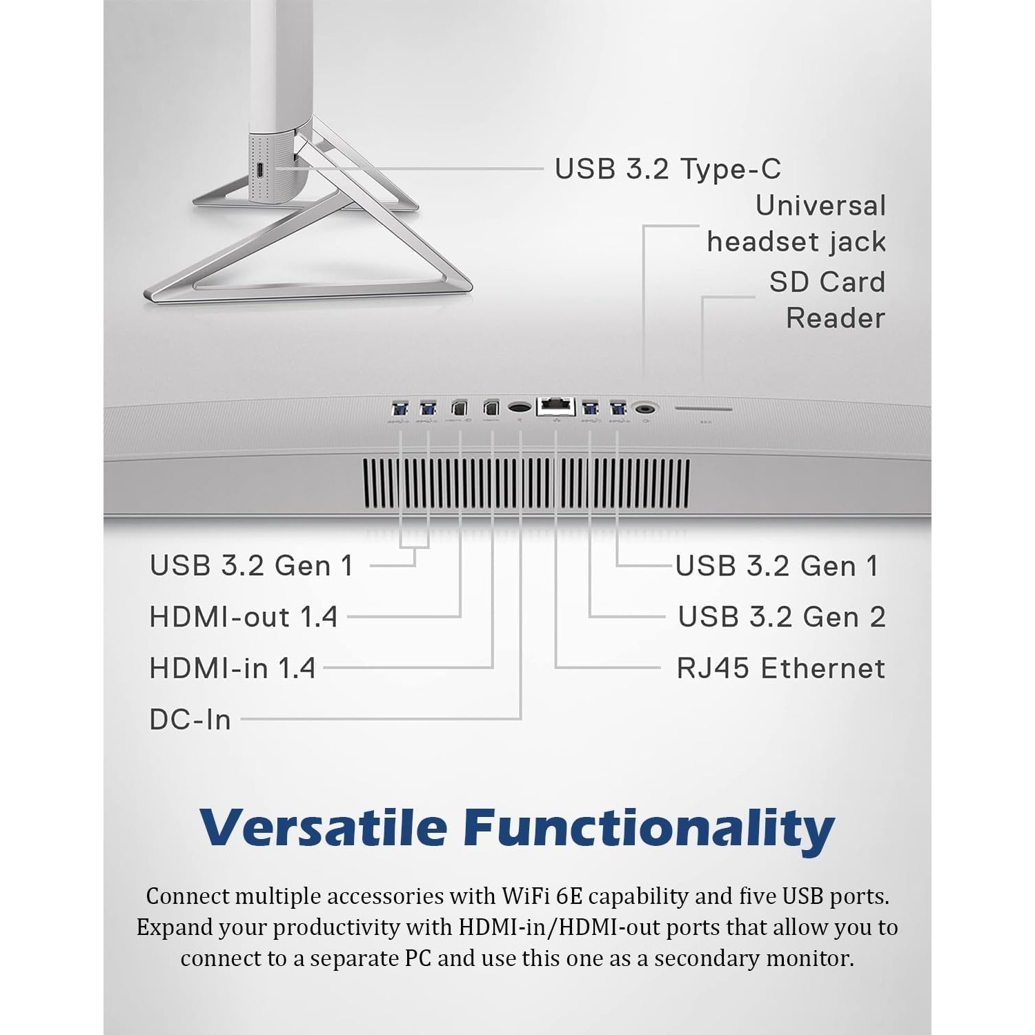 Next-Gen Connectivity: Includes Wi-Fi 6 for ultra-fast wireless stability and an array of ports including HDMI-in and HDMI-out, allowing the AIO to function as a standalone monitor if needed.