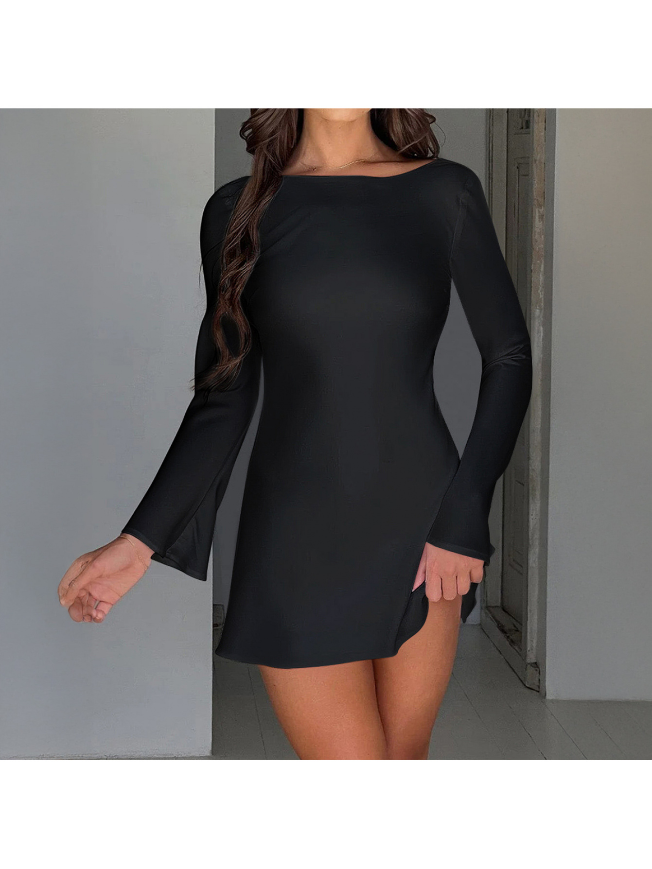 Diyun Style Elegant Long Sleeve Backless Short Dress Women’s Fashion Summer Station