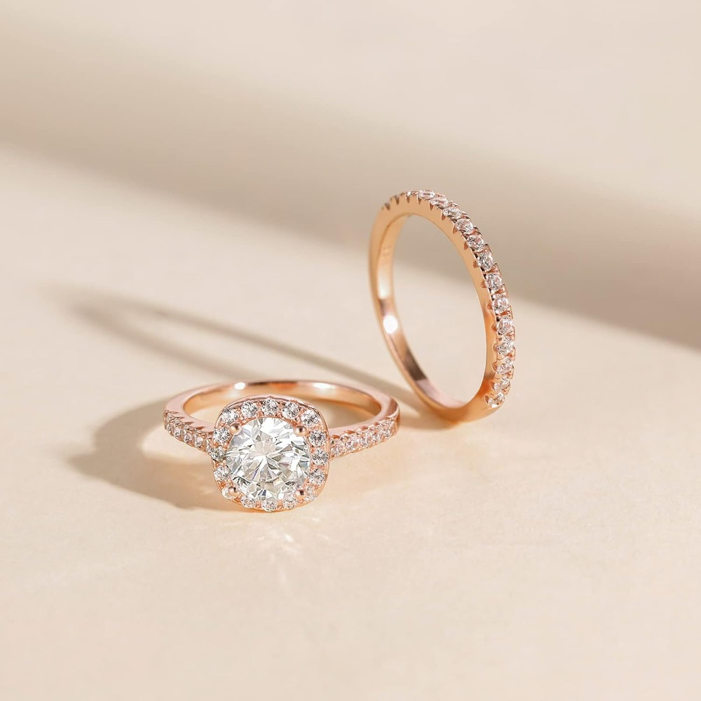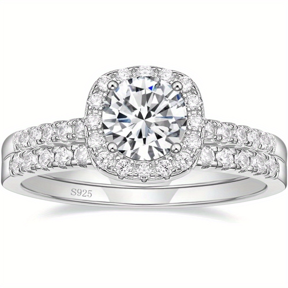 1, 25ct 925 Sterling Silver Bridal Rings Sets Cubic Zirconia Halo CZ Engagement Wedding Bands for Women Promise Rings for Her Size 4-11