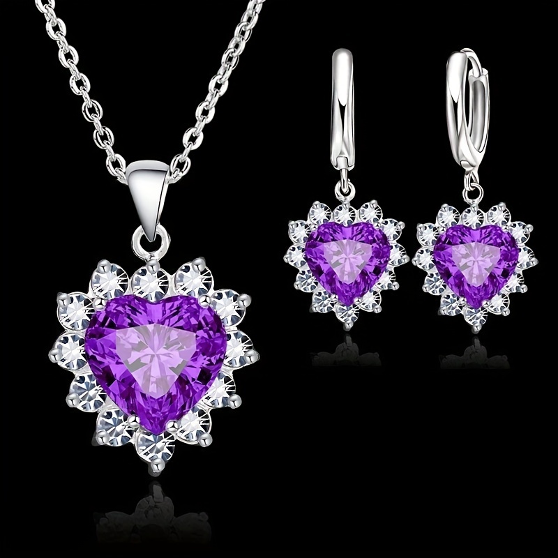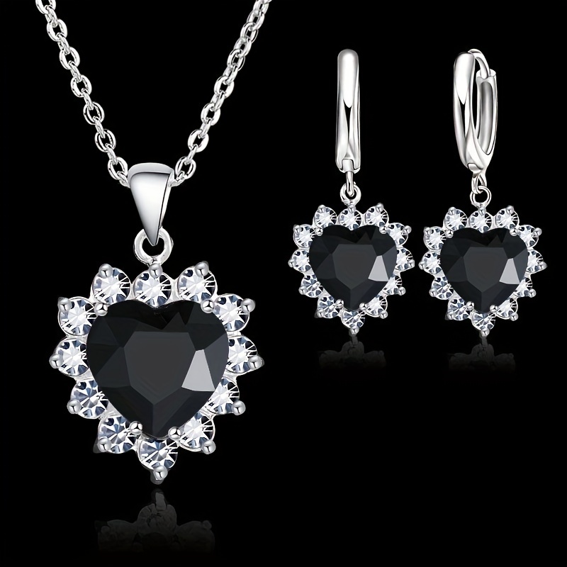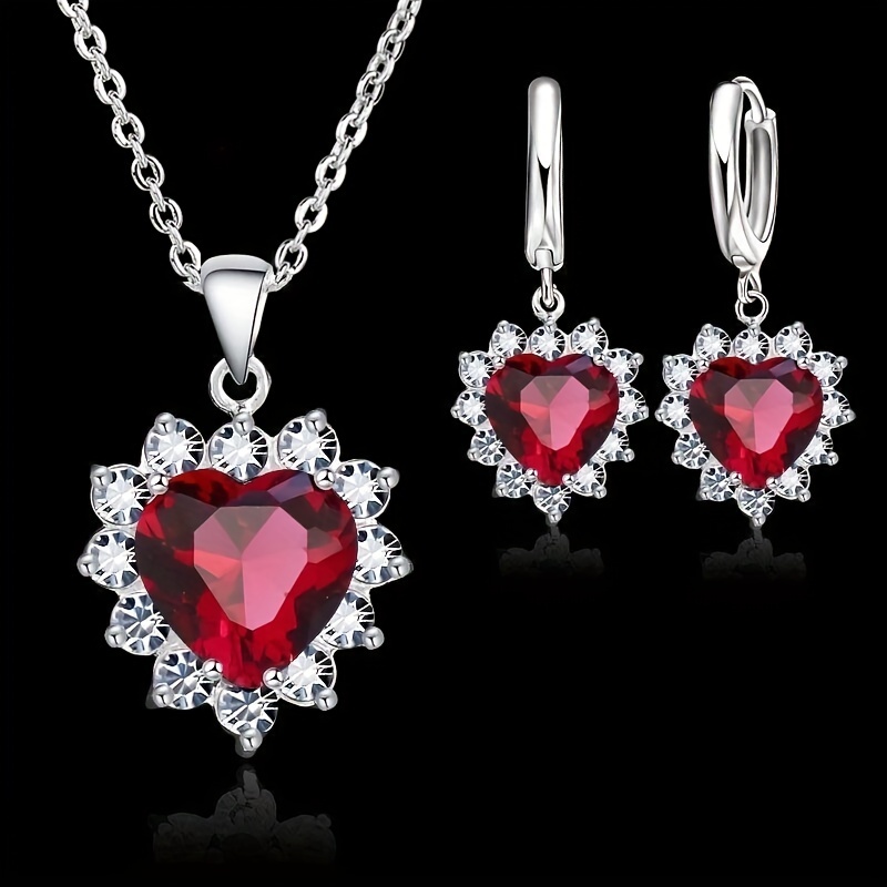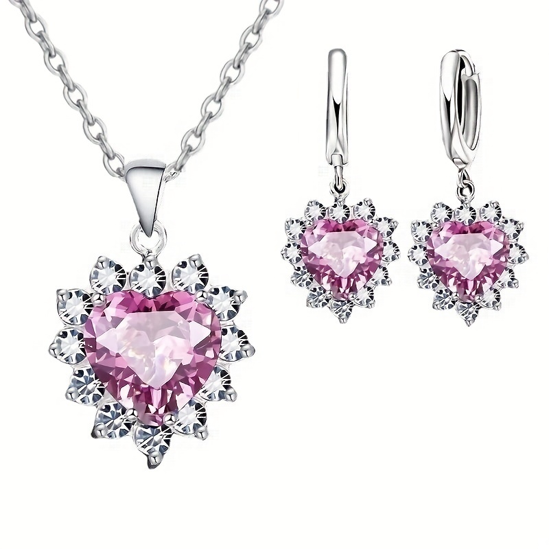 Elegant 3pcs Heart-Shaped Jewelry Set for Women – Silvery Plated Necklace & Earrings, Resin Inlay, Zinc Alloy – Perfect Romantic Gift,Valentine’s Day