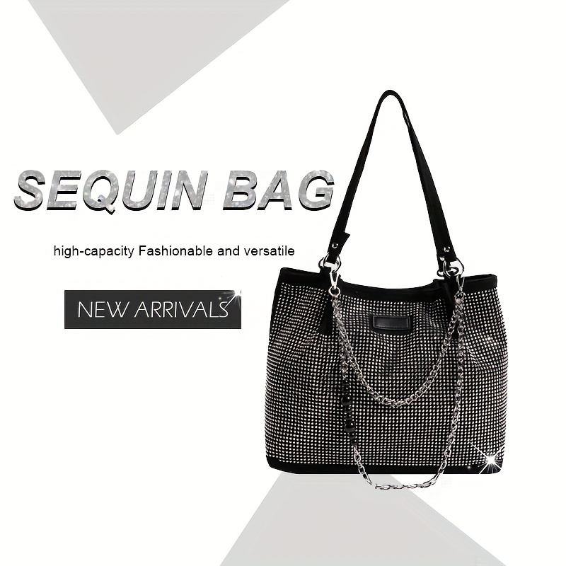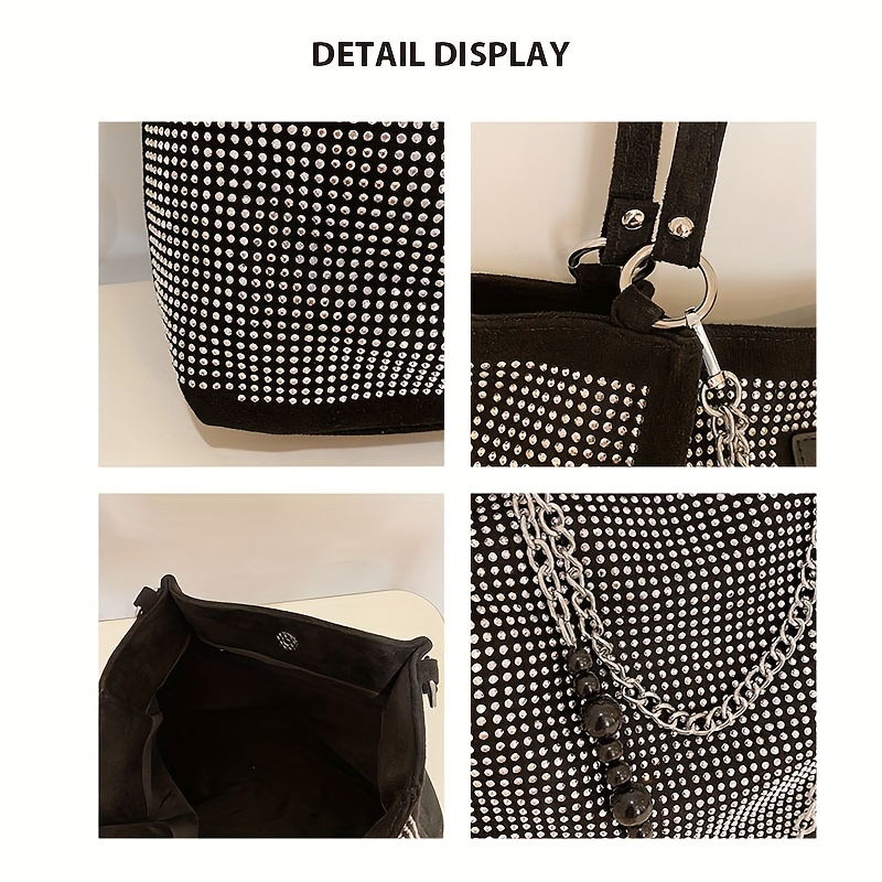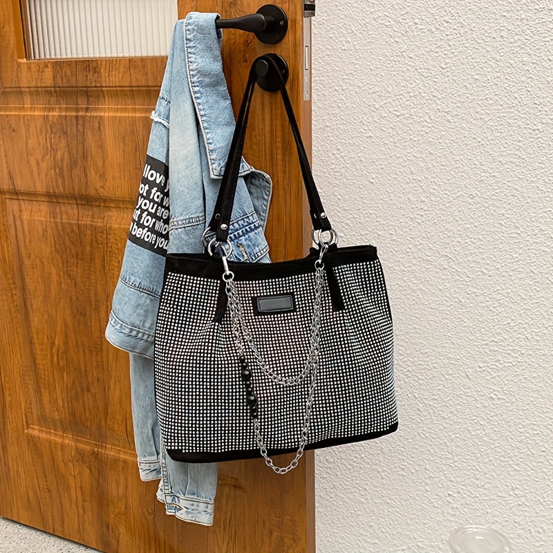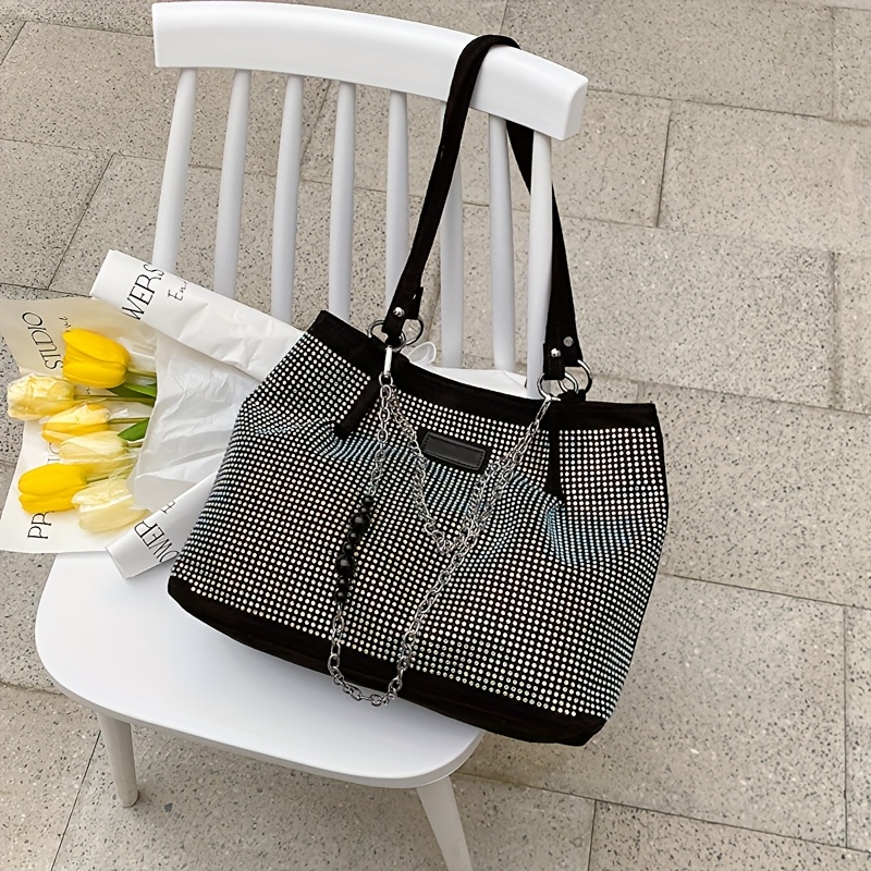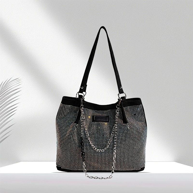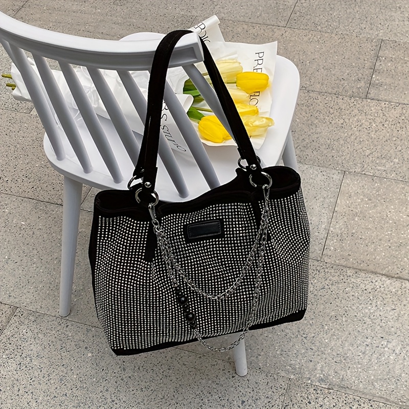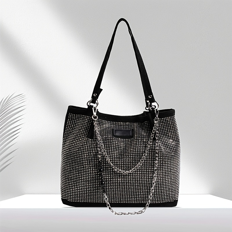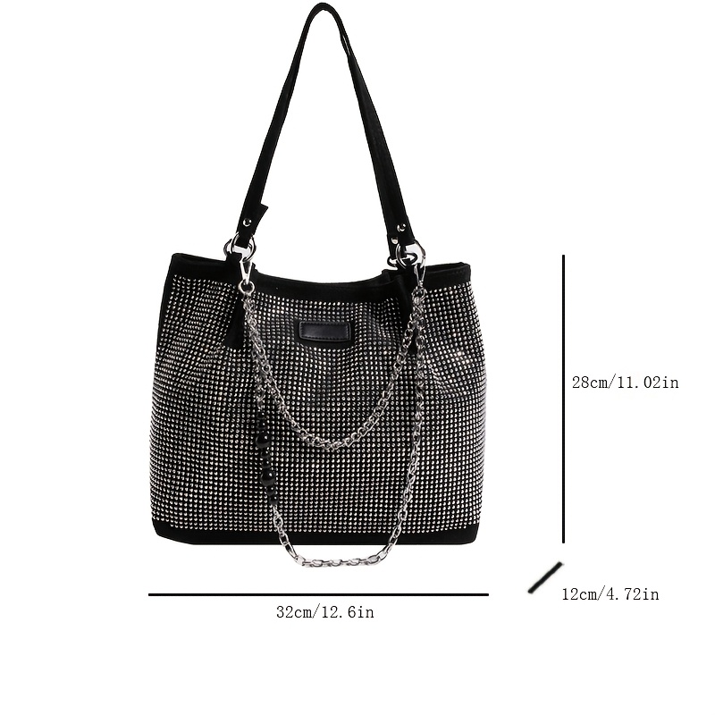 Elegant Black Rhinestone-Embellished Handbag for Wo – Lightweight, Versatile with Sparkling Rhinestones, Perfect for Parties, Commuting & Holiday Gifts, Synthetic, Buckle Closure, Party Handbag | Elegant Handbag | Synthetic Bag, Purse