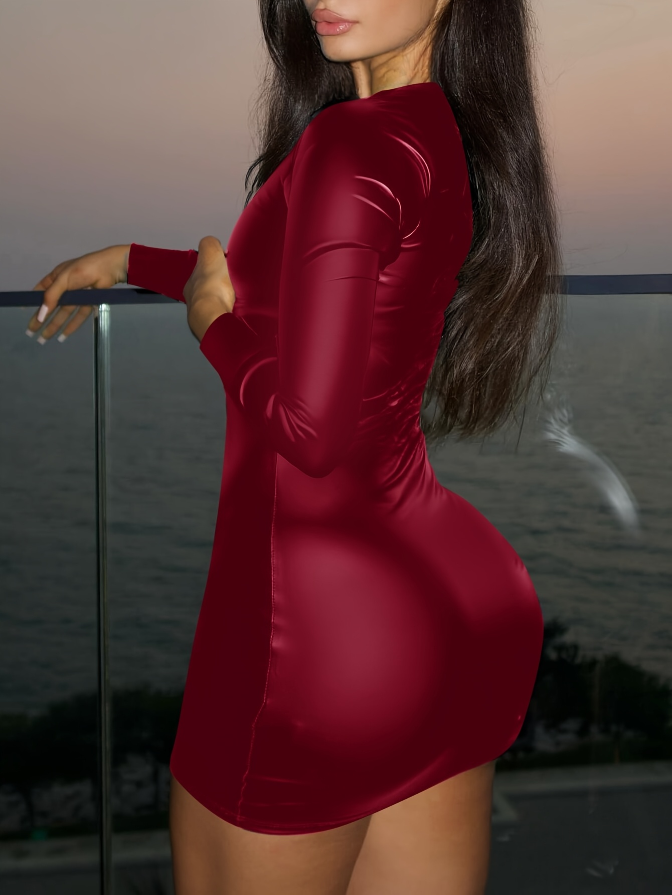 [Elegant Bodycon Dress] Elegant Bodycon Mini Dress | Women’s Round Neck Short Sleeve, Snug Waist & Hip-Hugging Silhouette, Solid Color, Fall Winter 2024 Collection, Versatile for Casual to Formal Events