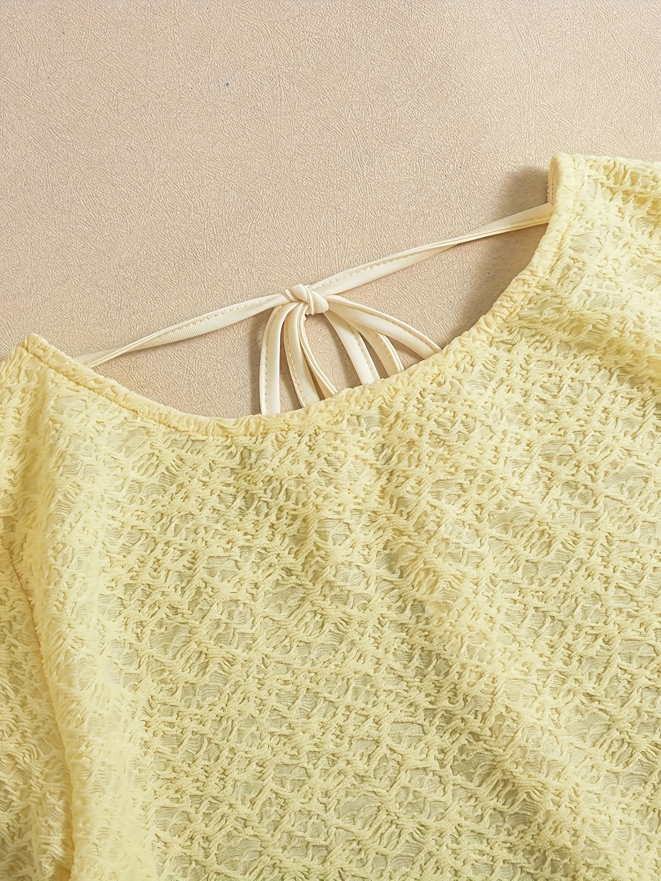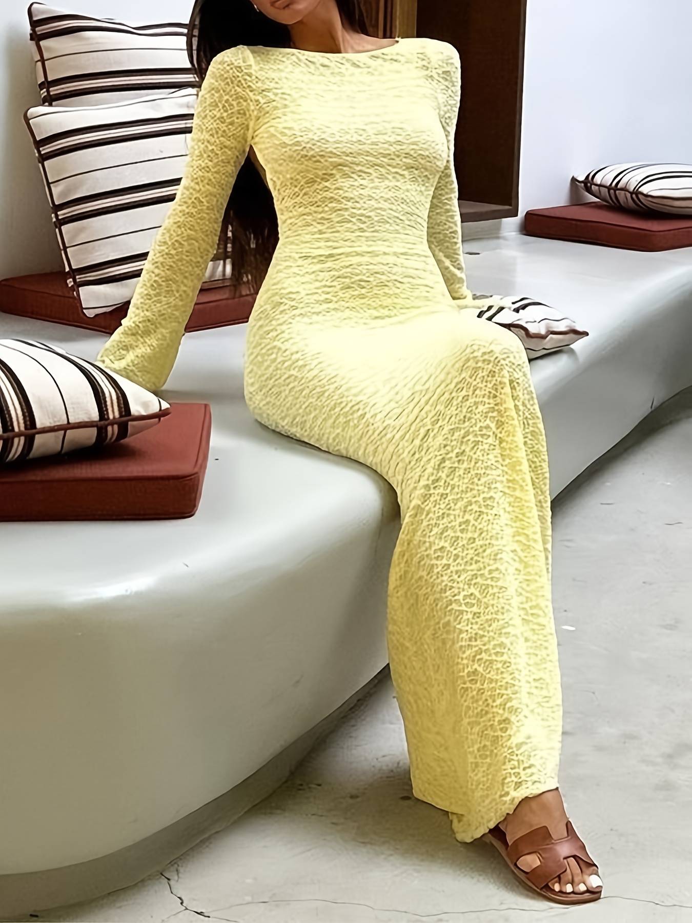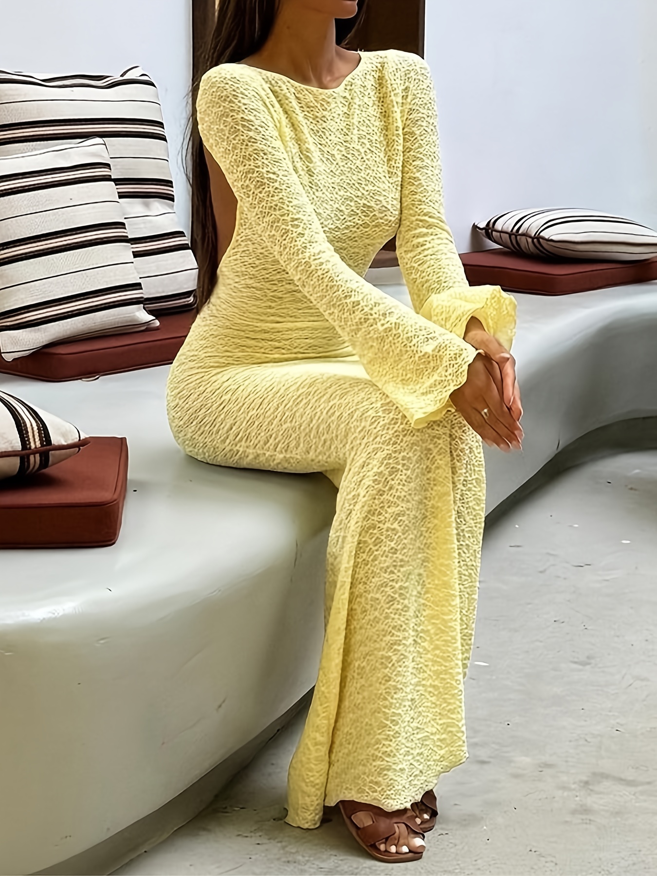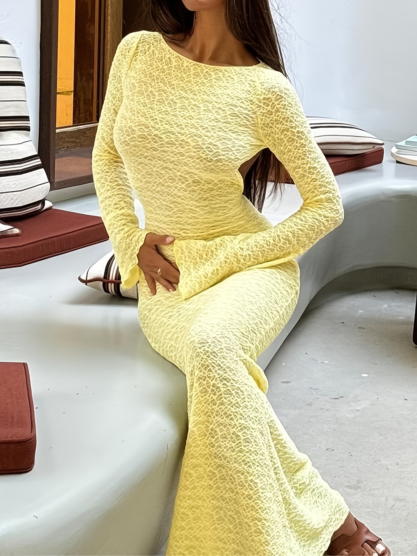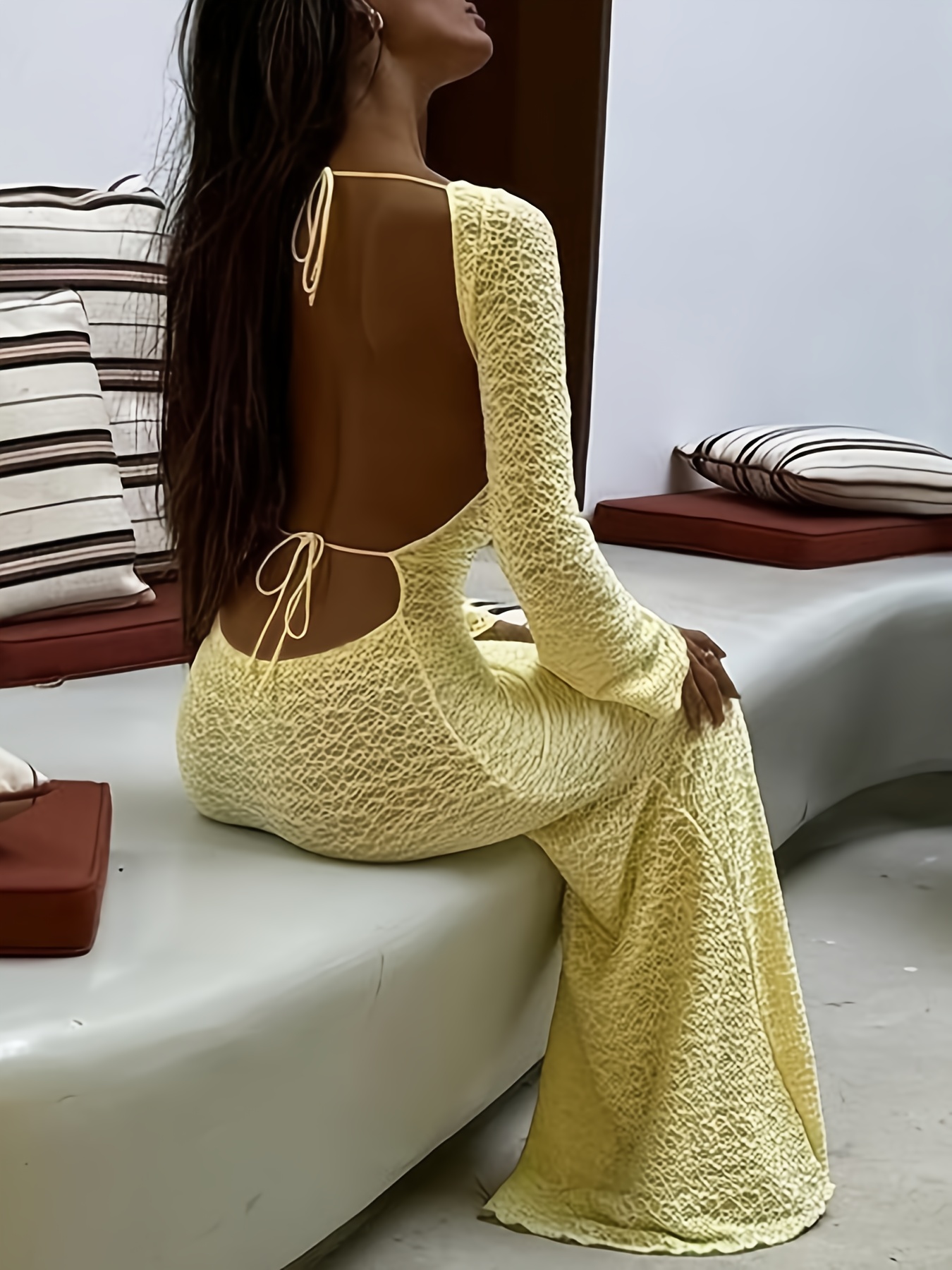 Elegant Fashion Long Sleeve A-Line Sheer Dress for Women | Backless Tie Design, Solid Color, Suitable for Travel and Beach Outfits