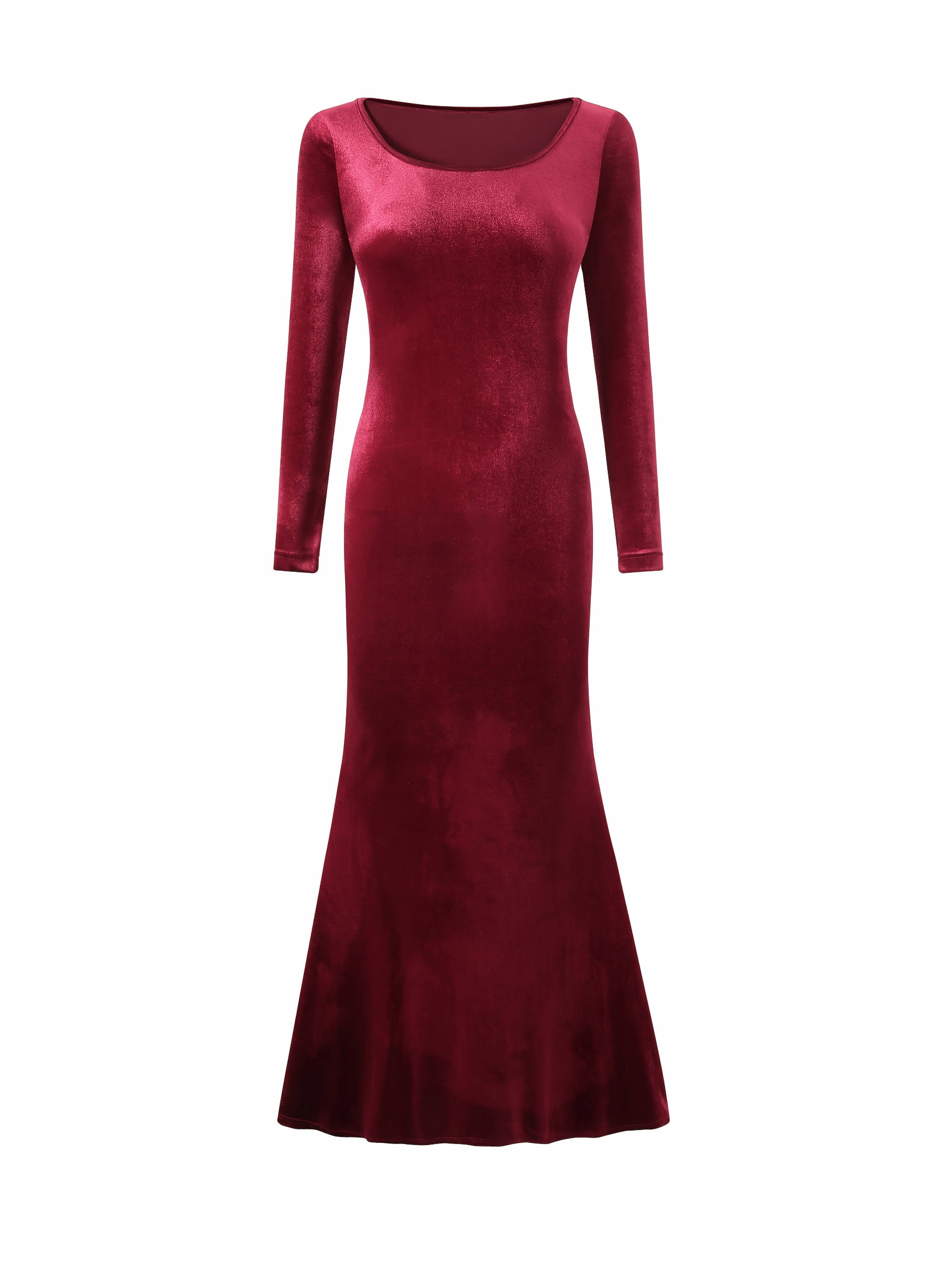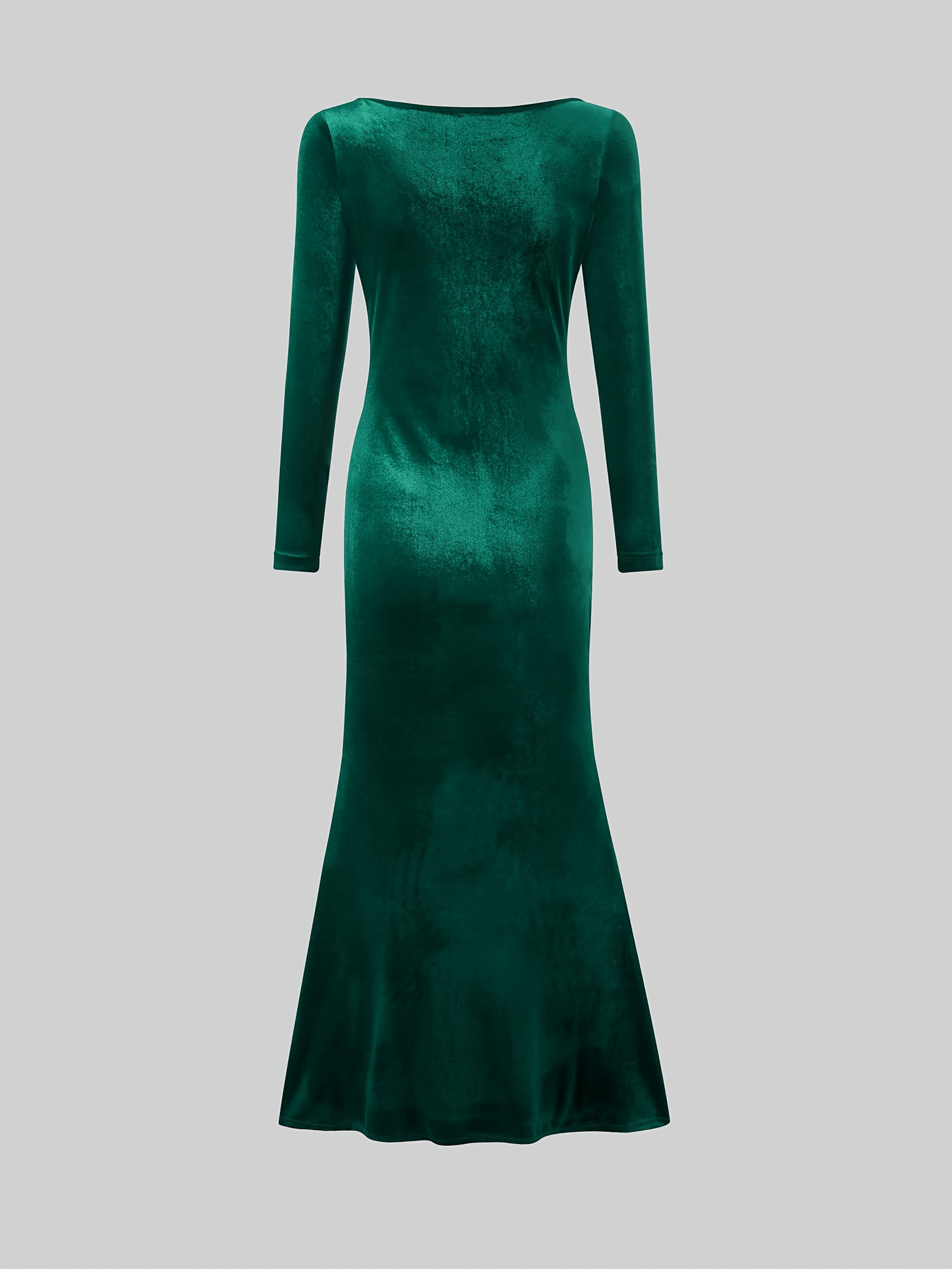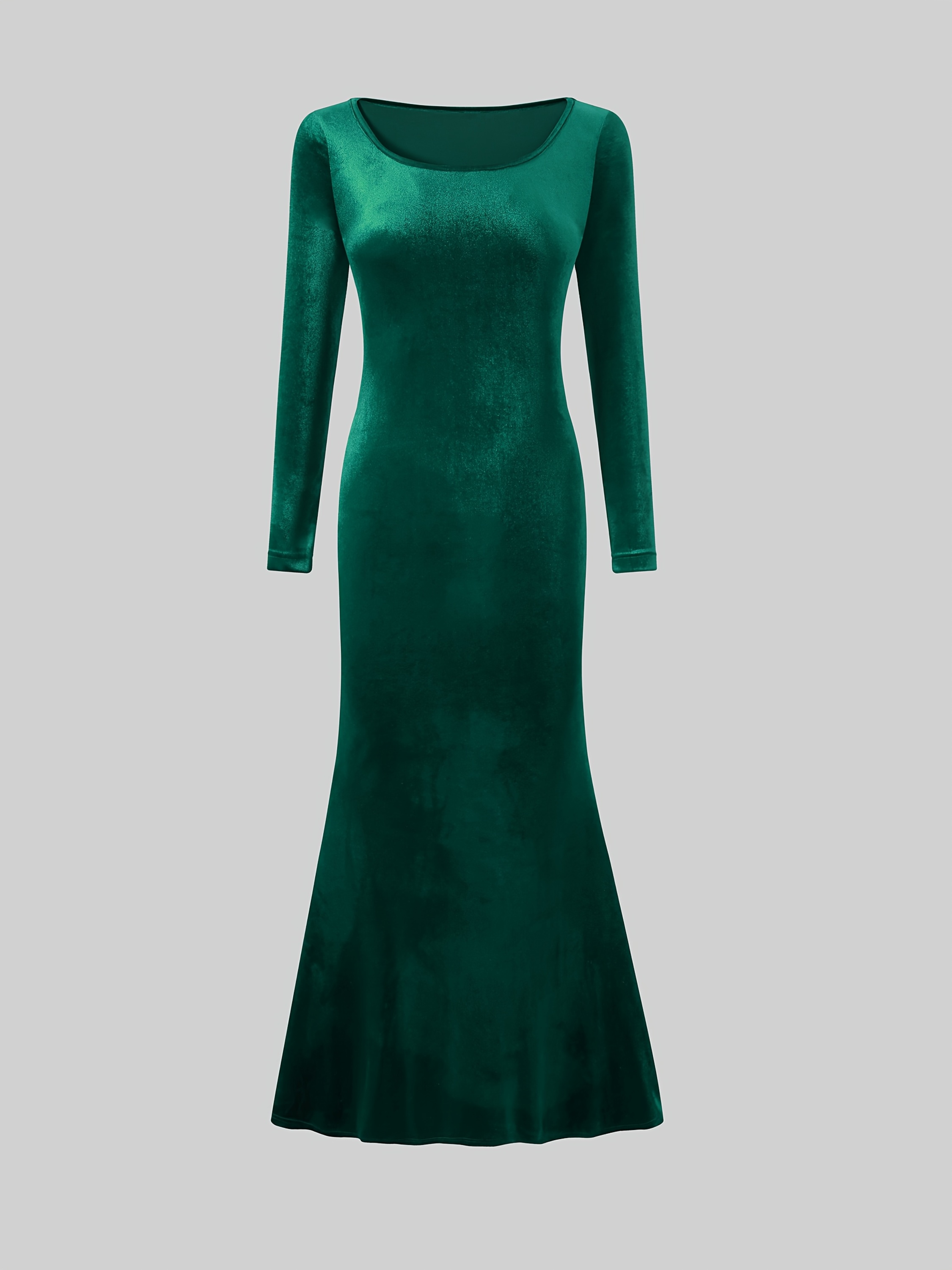 [Elegant Fishtail Dress] Elegant Long Sleeve Fishtail Dress | Solid Color Round Neck Wrap Skirt for Women, Spring Autumn Winter