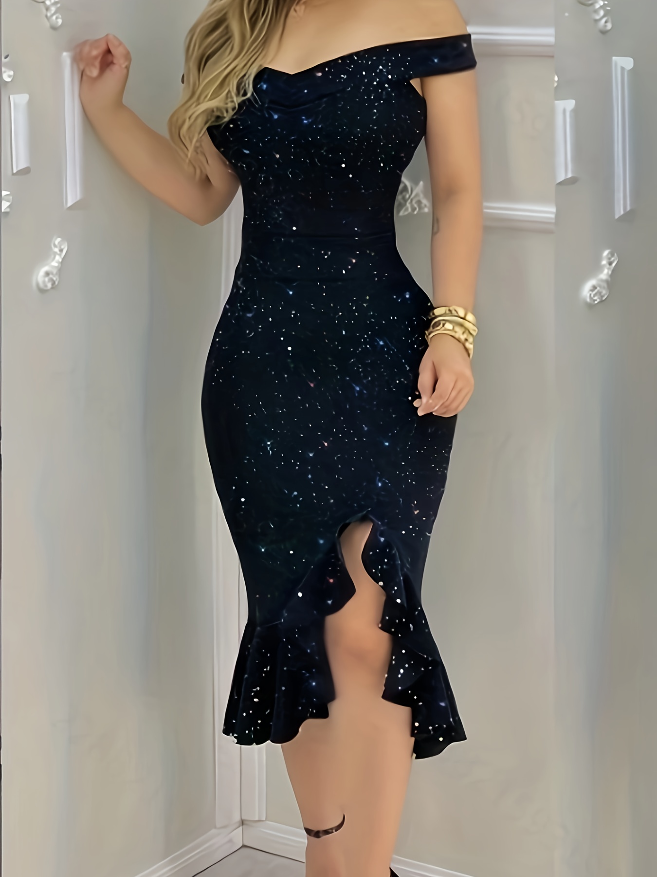 Elegant Ladies’ Dress | V-Neck, Solid Color, Culottes Style for Spring/Fall Night Out