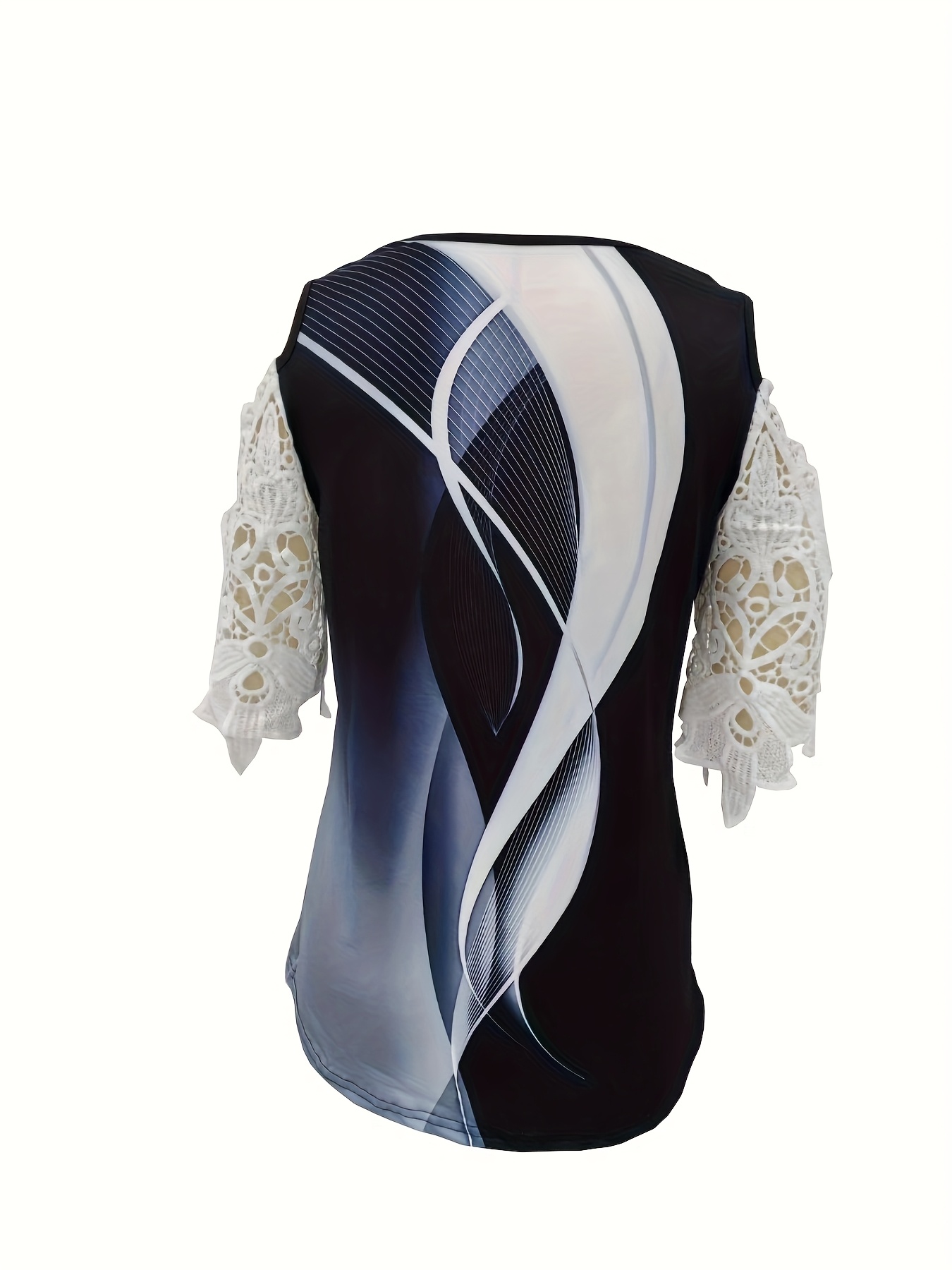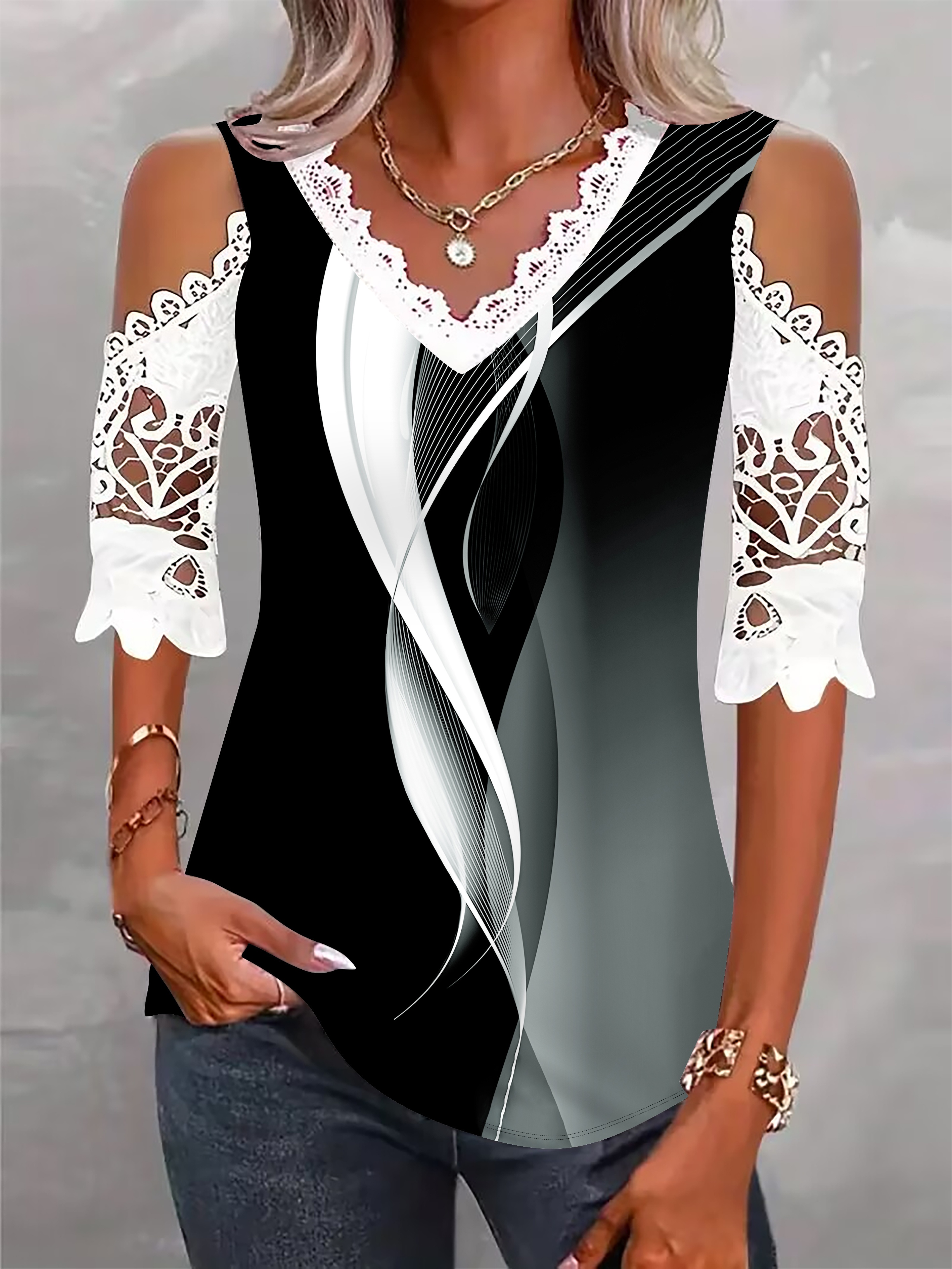 [Elegant Sleeveless Top] Elegant Women’s Lace Sleeveless Top with Gradient Print – Stylish Black and White Design, Perfect for Summer, Summer Top|Elegant Sleeveless Top|Lace Trim Top