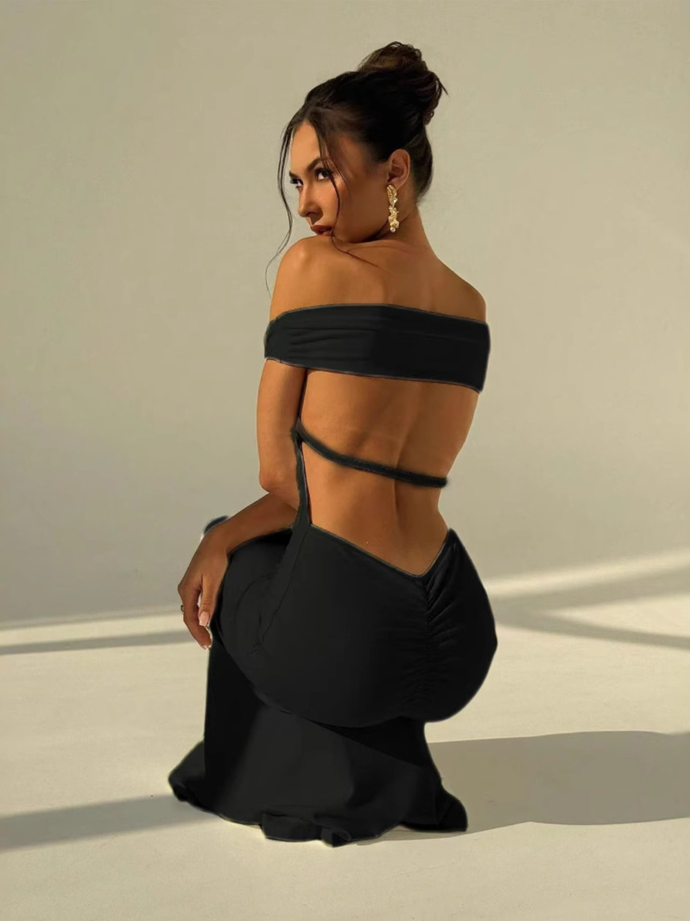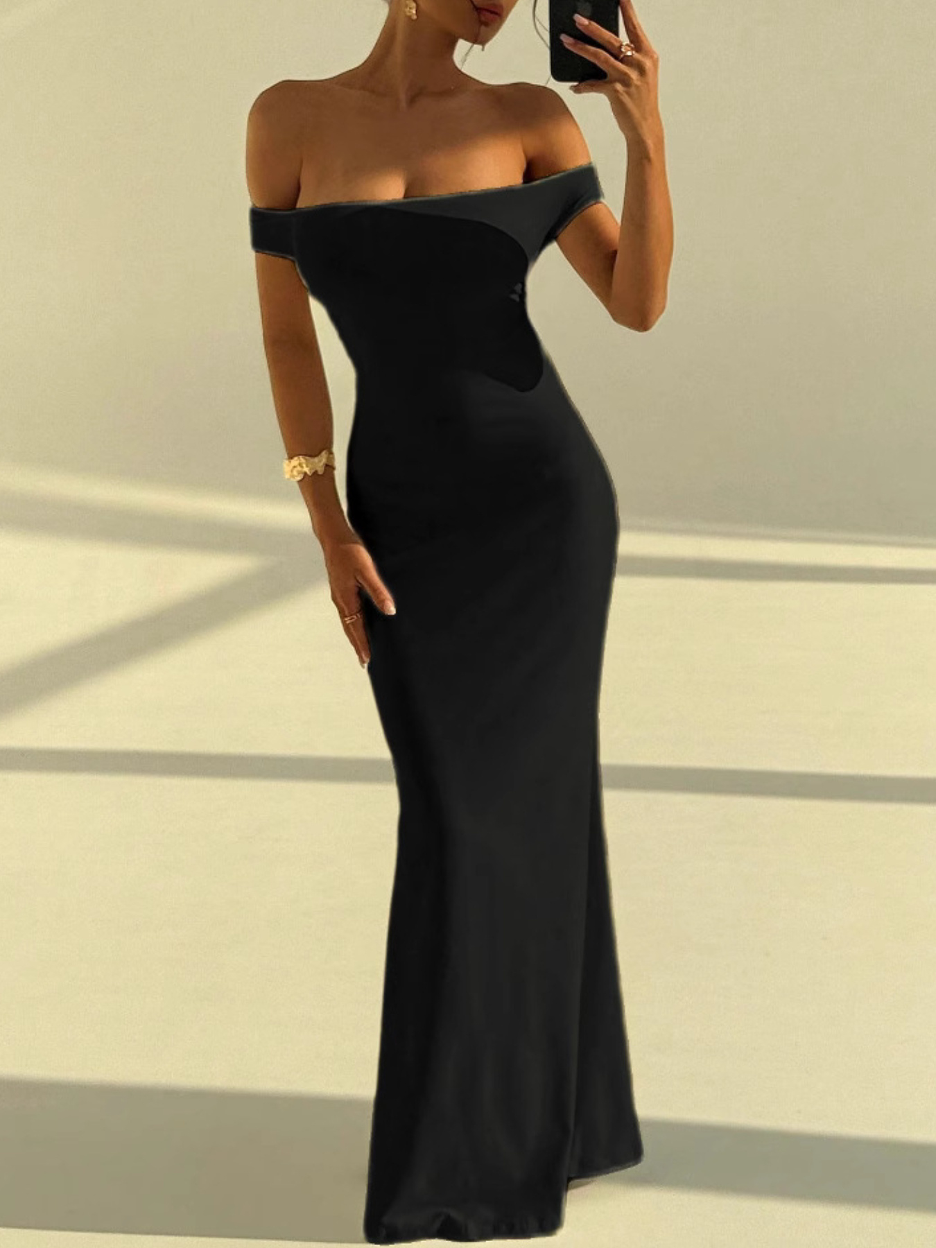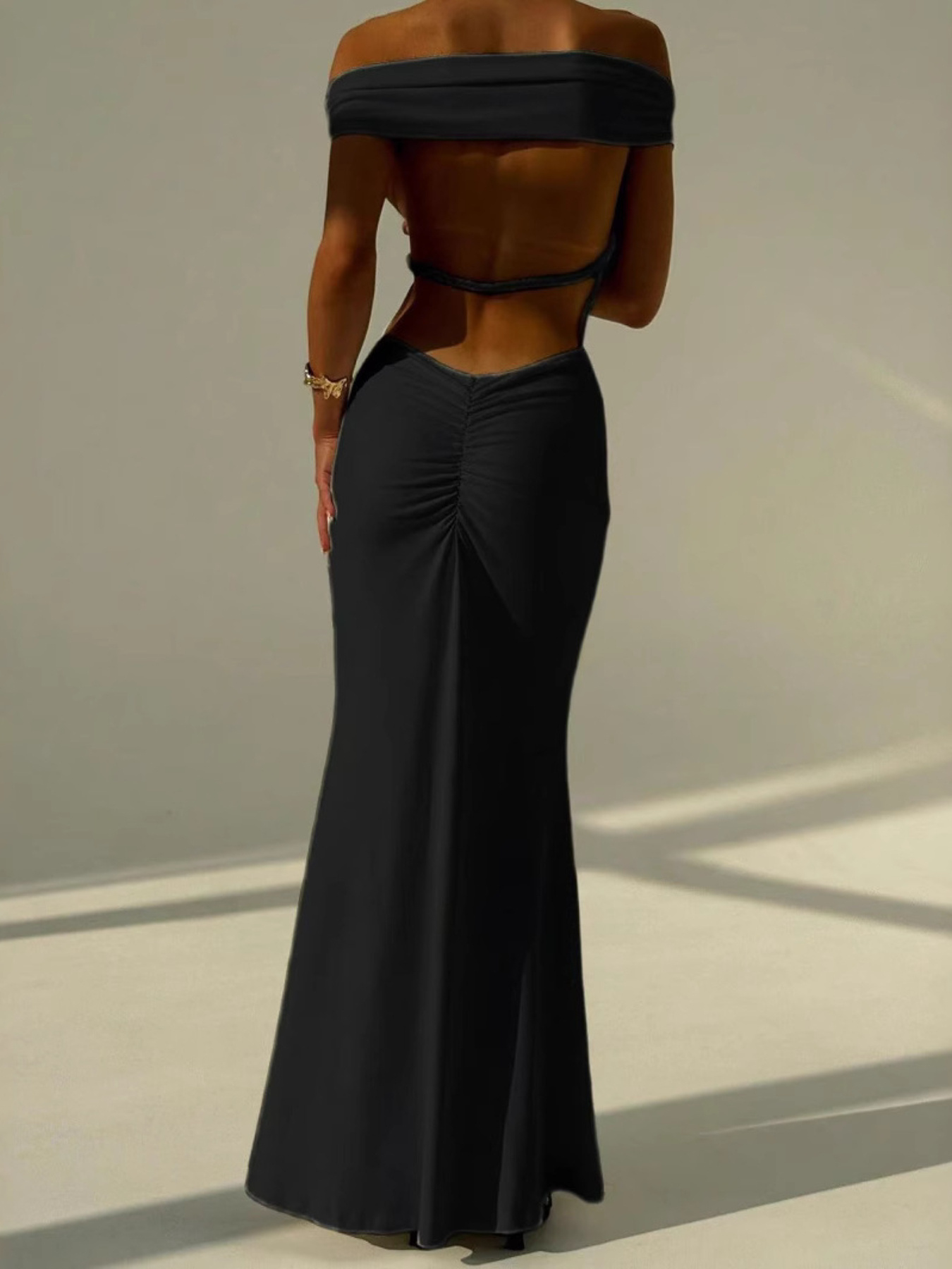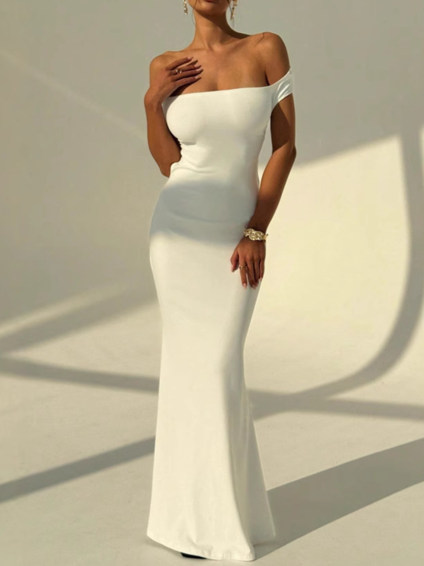 European and American Spring and Summer One-Shoulder Backless Dress | Sexy Hip-Hugging, Fitted Waist, Slim-Fitting Long Dress, Sleeveless, Solid Color, Off the Shoulder, SCACTO Brand