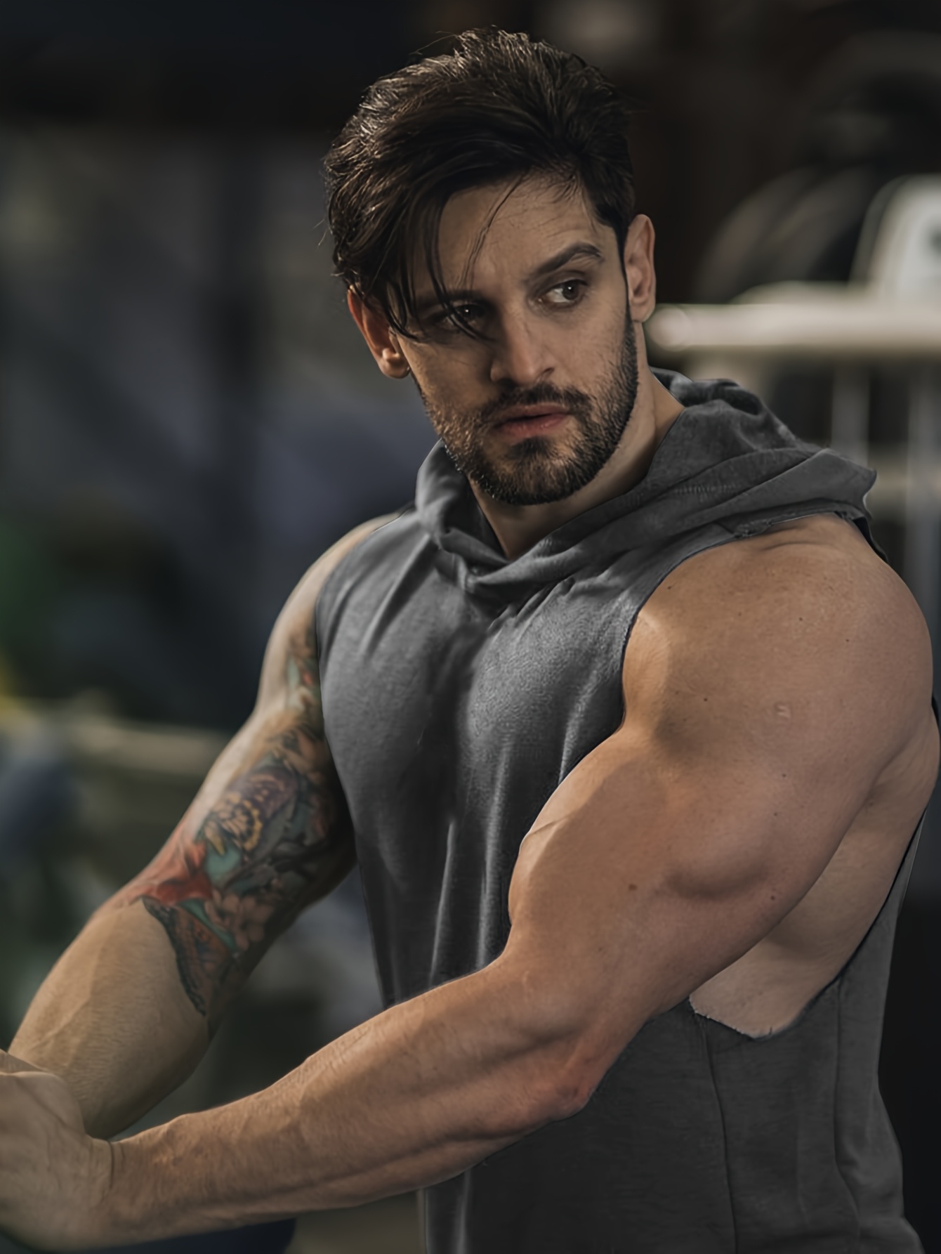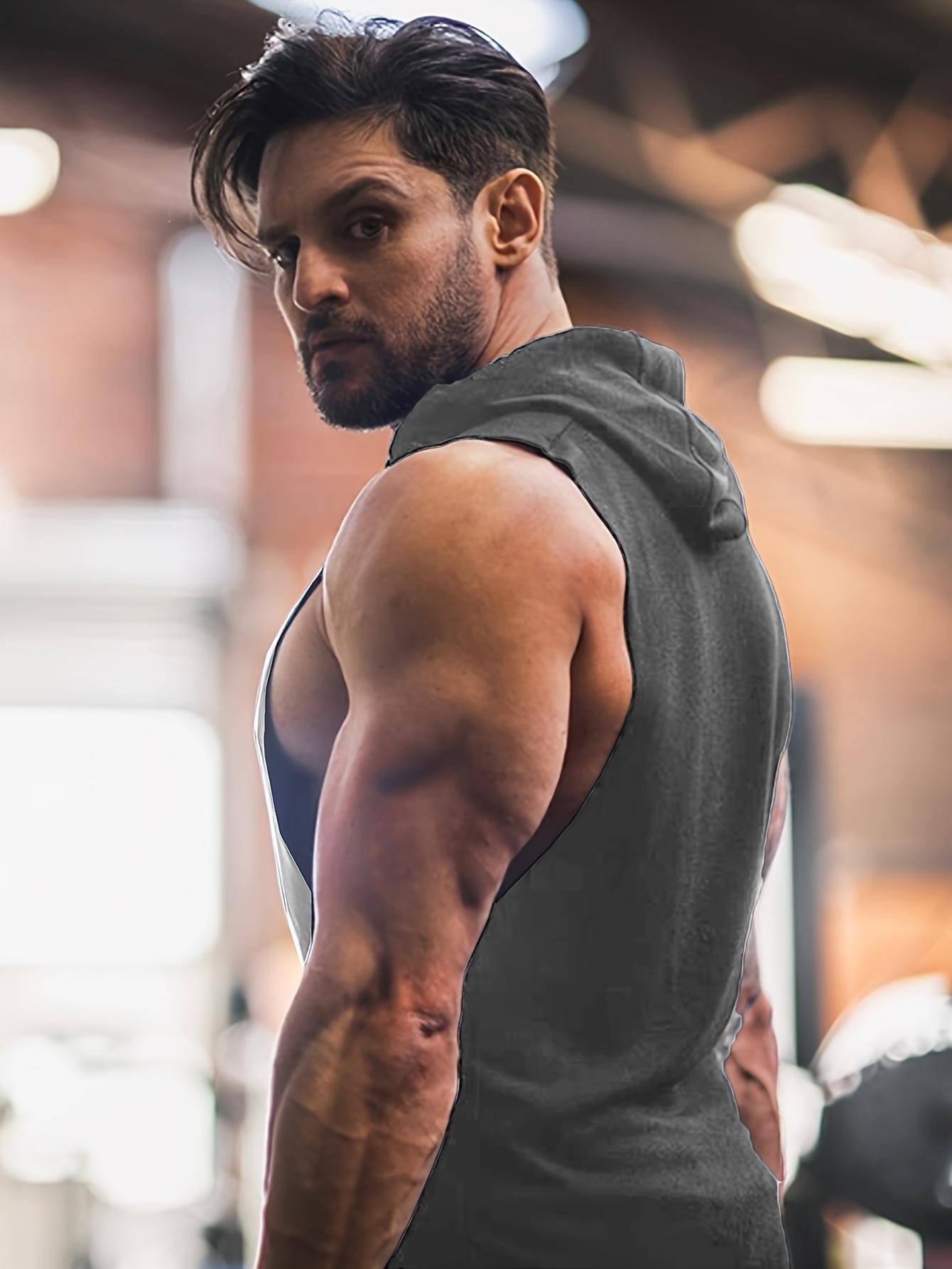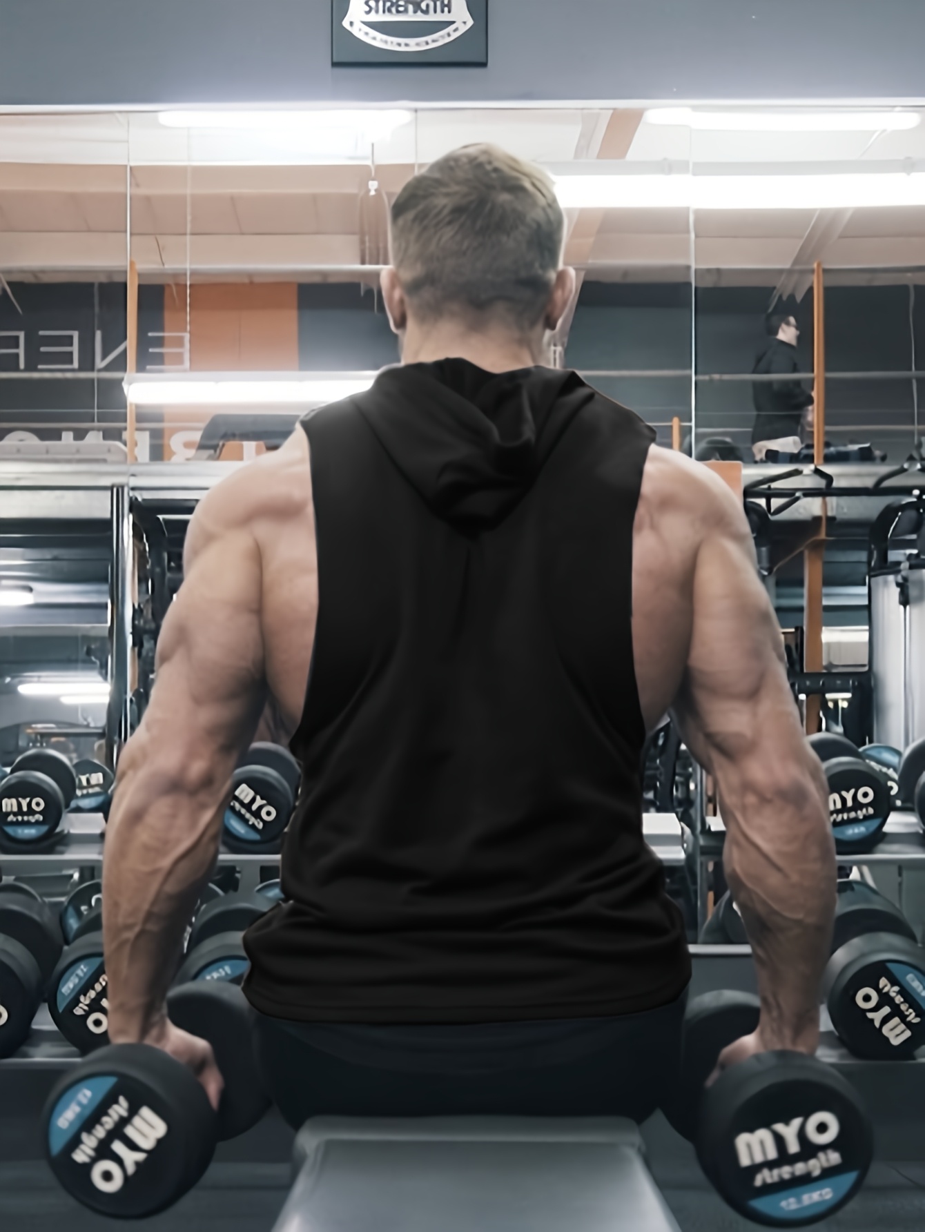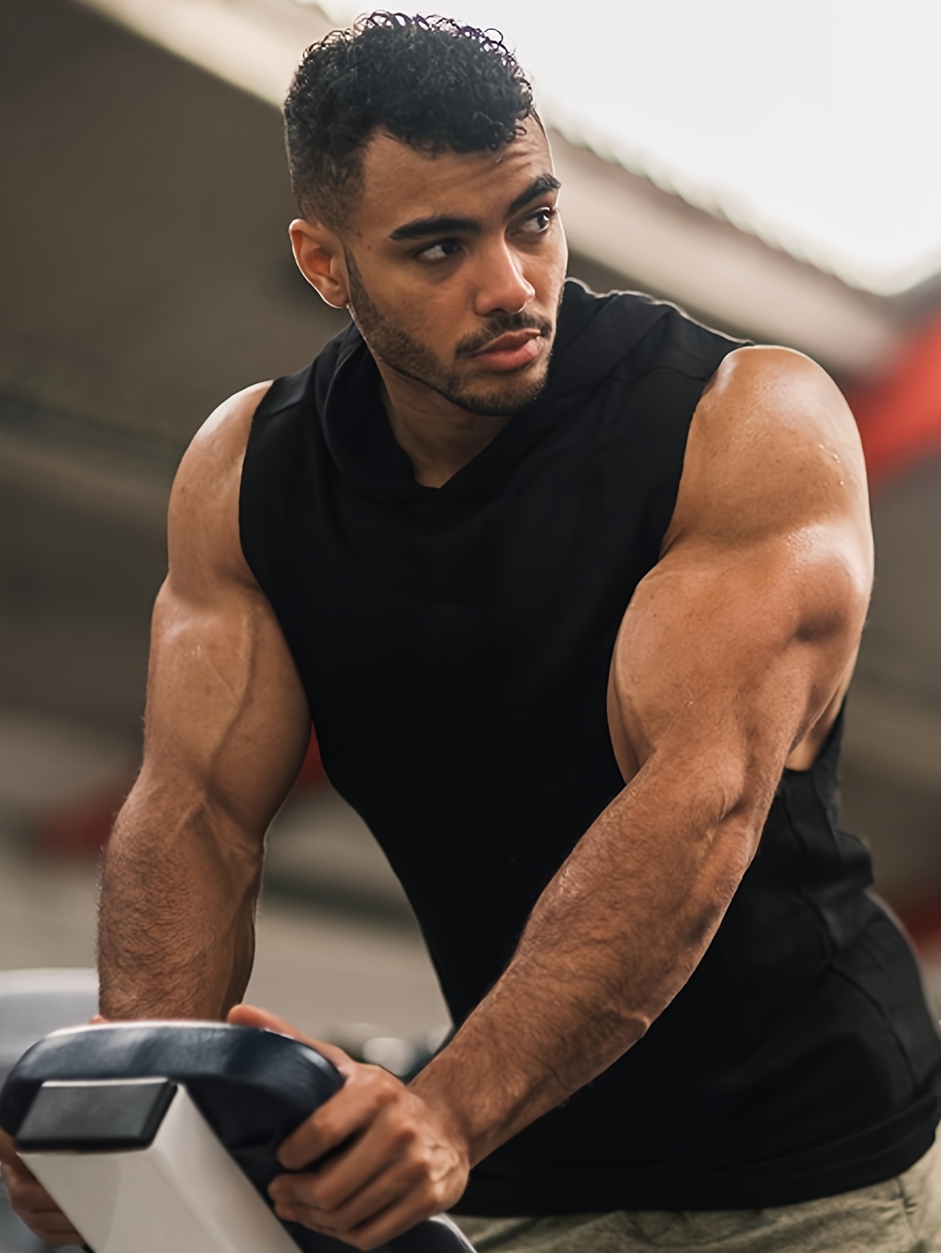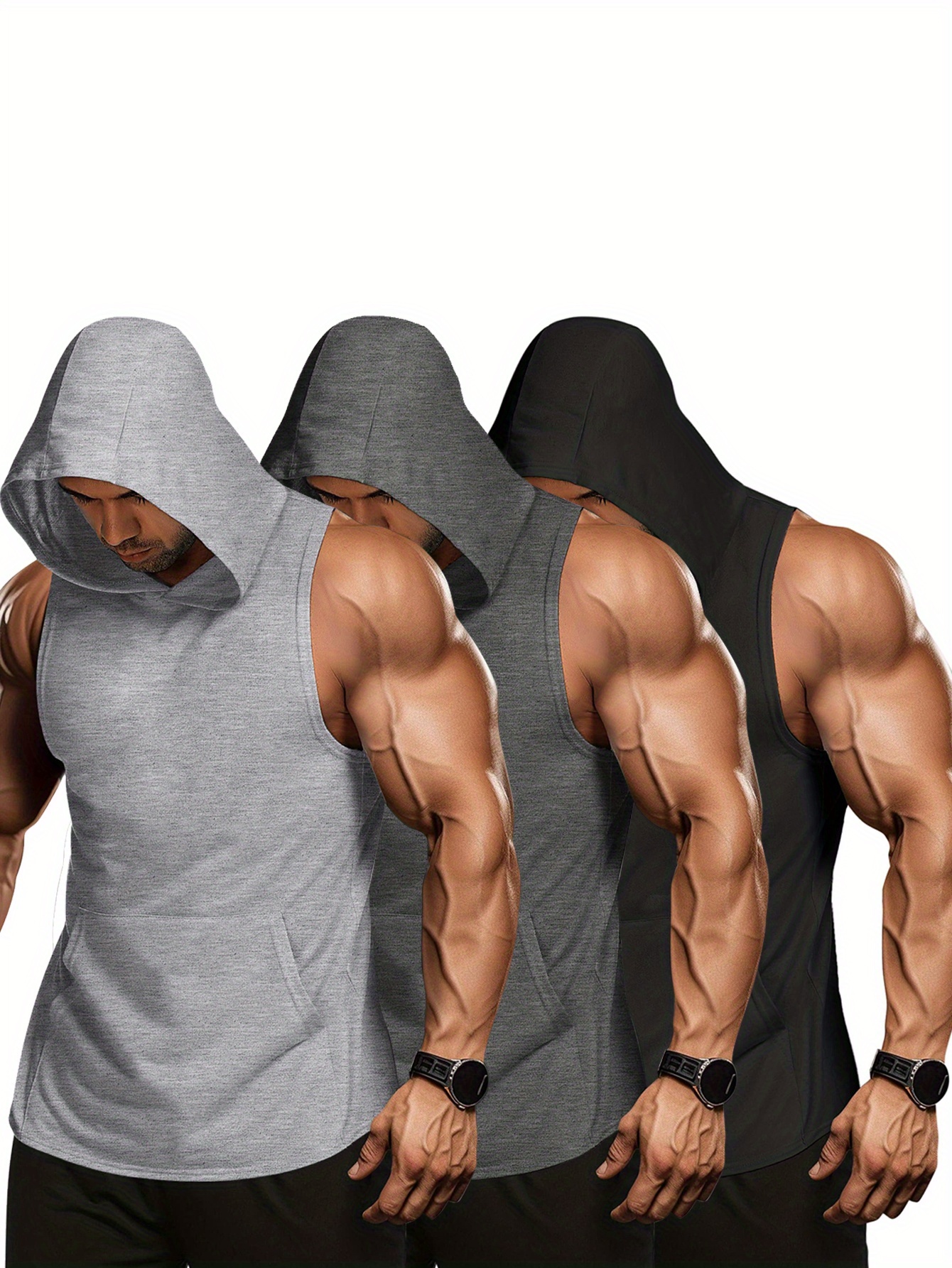 EXARUS 3pcs Set of Men’S Summer Sleeveless Hooded Vests, Moisture-Wicking And Sweat-Absorbing, Suitable for Sports And Fitness, with Pockets.