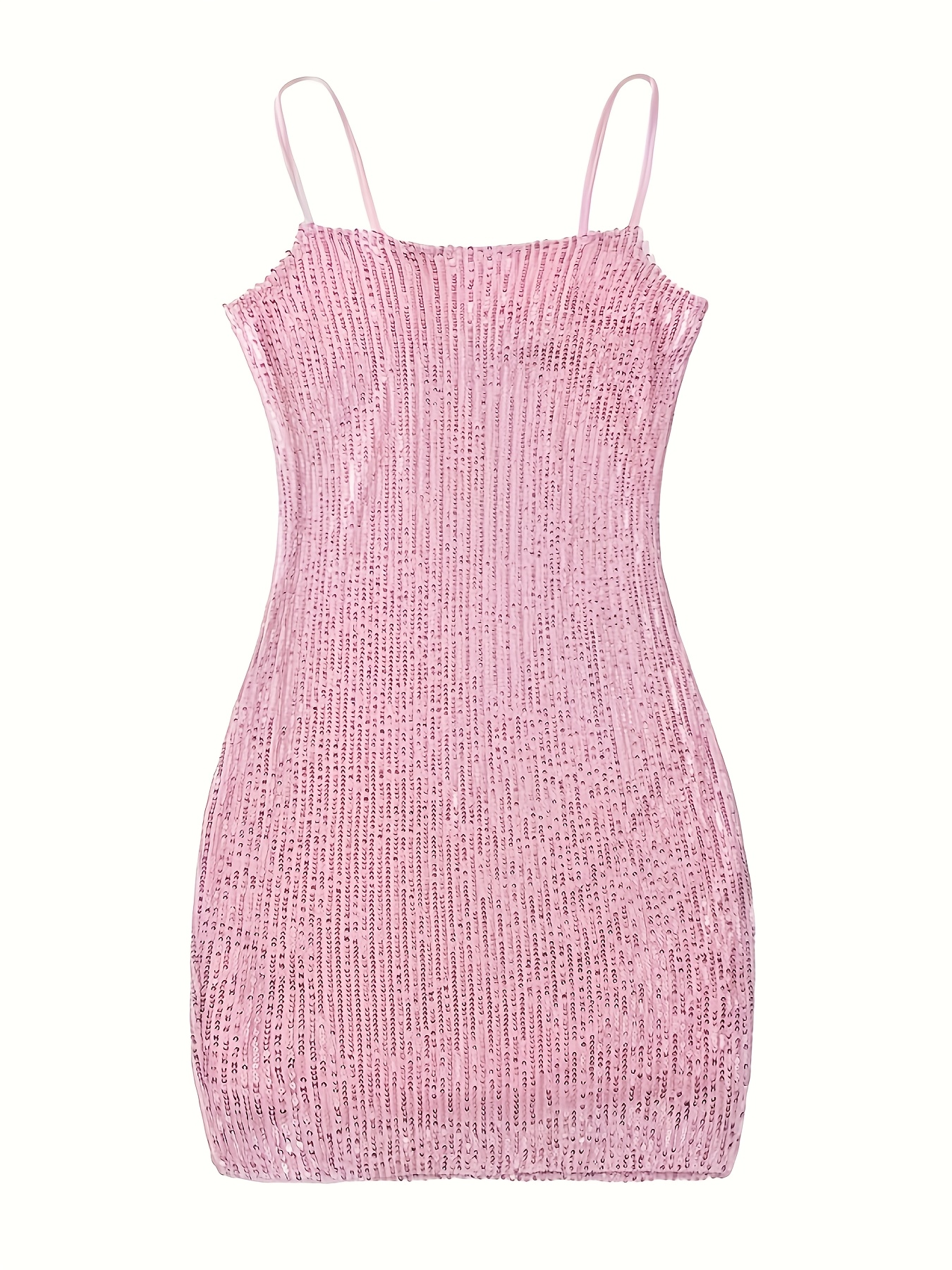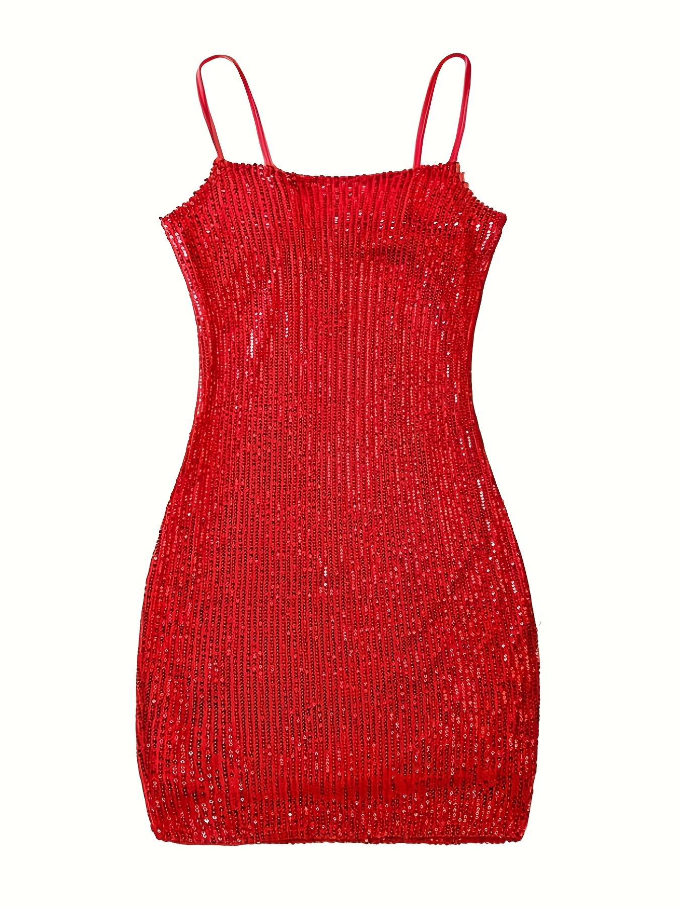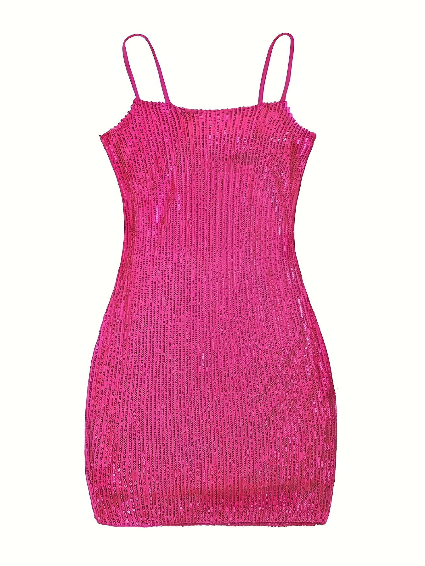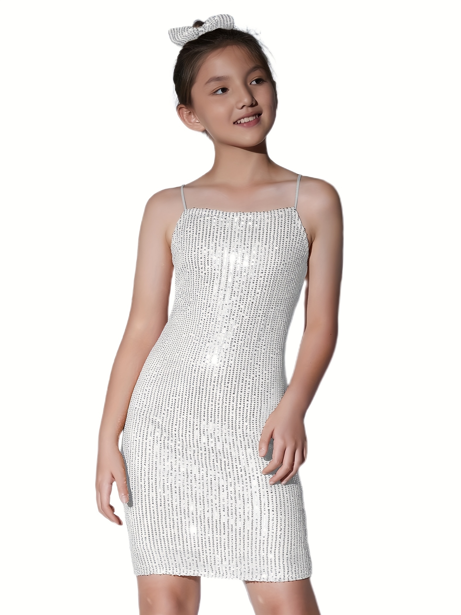 EXARUS Girls’ Short Bodycon Dress with Spaghetti Straps And Sequins for Homecoming, Off-The-Shoulder Mini Dress for Ages 6-14