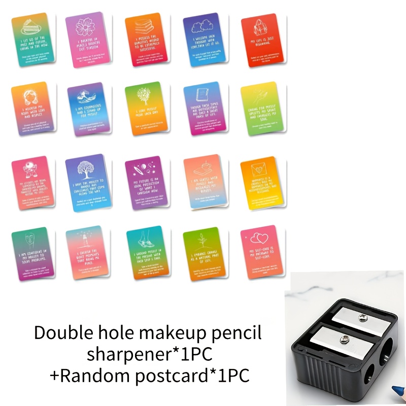[Eyebrow Pencil Sharpener] 1pc Eyebrow Pencil Sharpener 2-in-1 High Quality Manual Travel Size with Shavings Catcher Gift Postcard Box Style Makeup Artist Essential