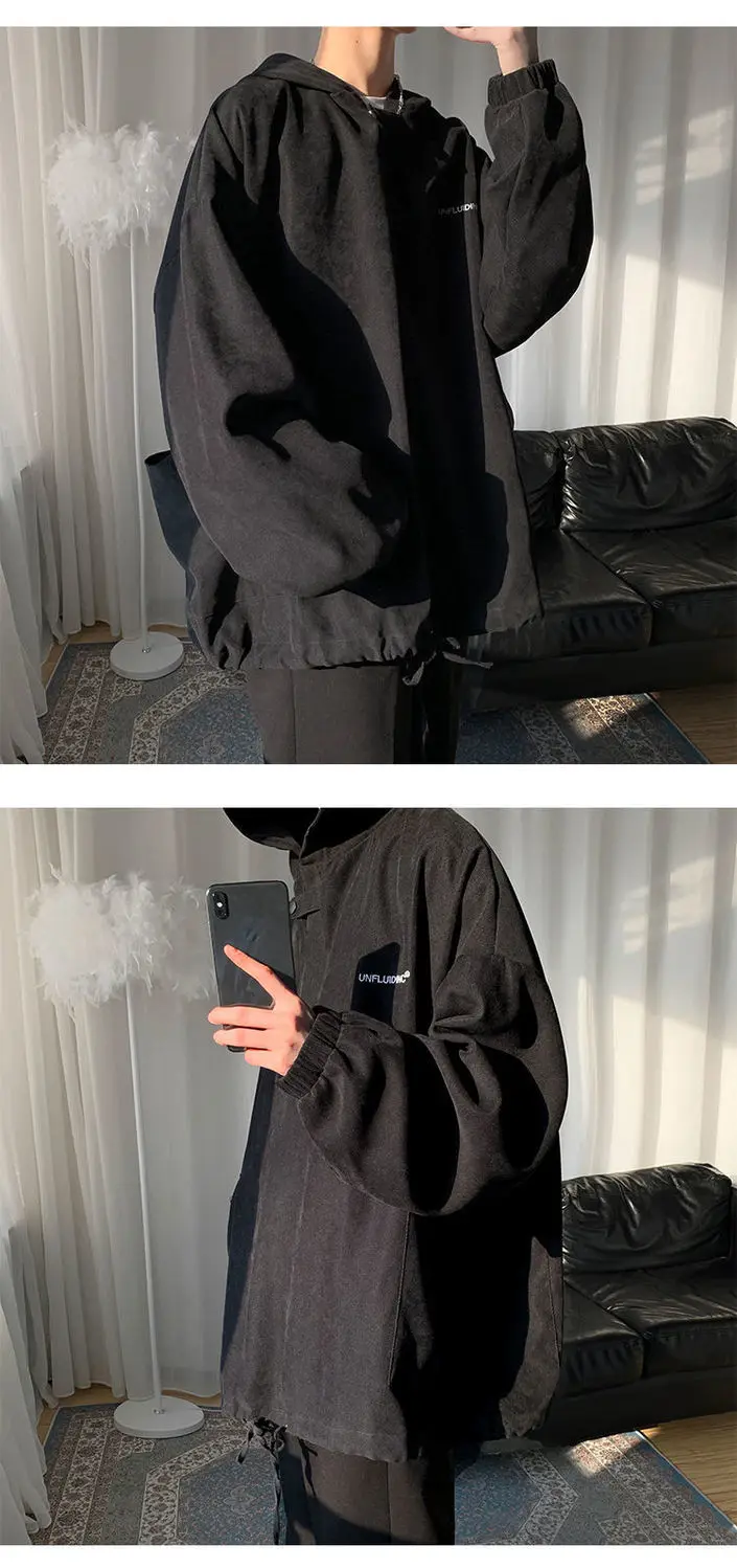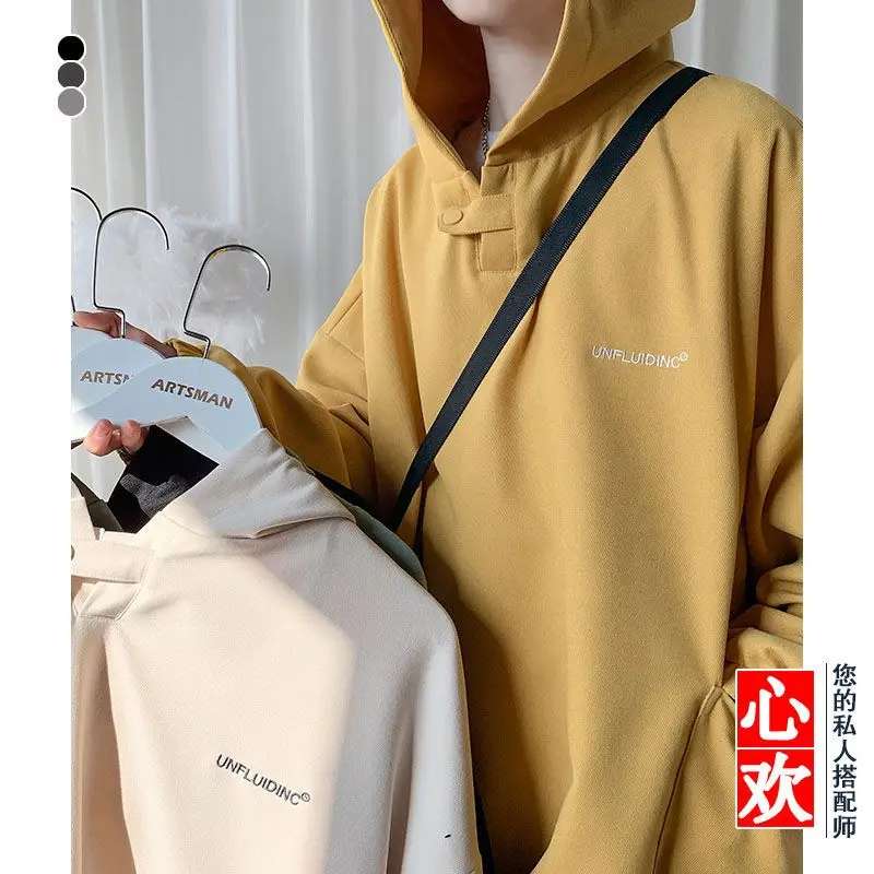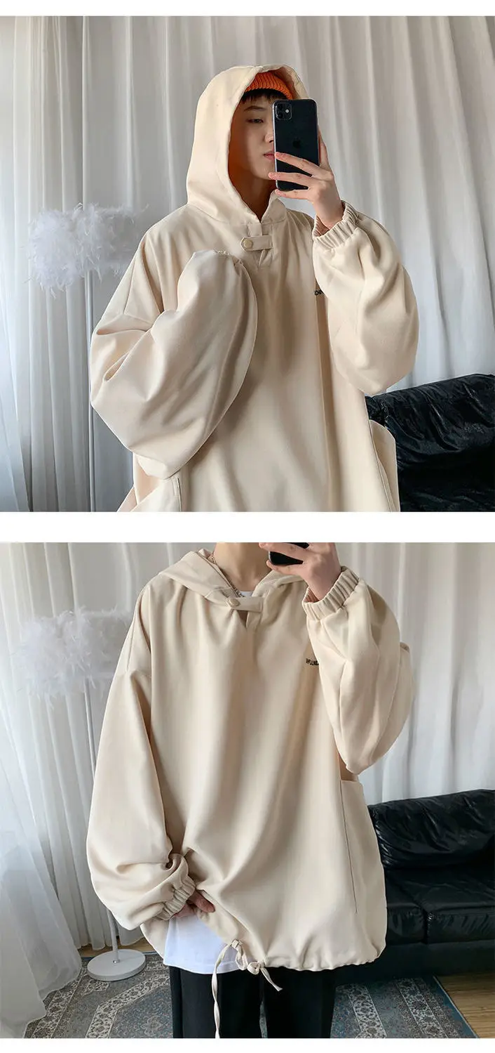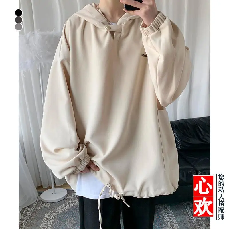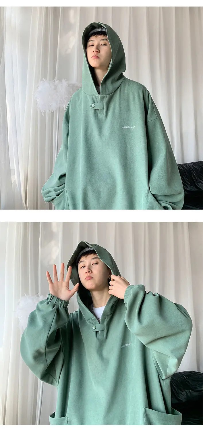 Fall Winter Letter Print Pocket Men Long Sleeve Hooded Sweatshirts Loose Vintage Korean Fashion Simple Oversized Couple Clothing