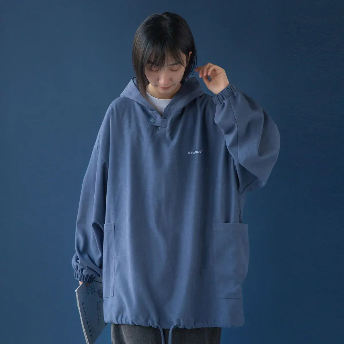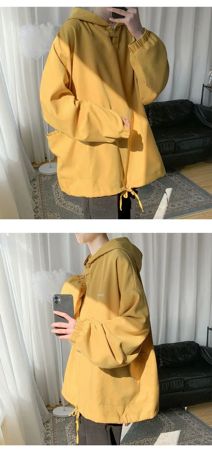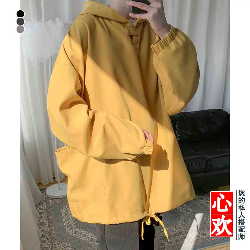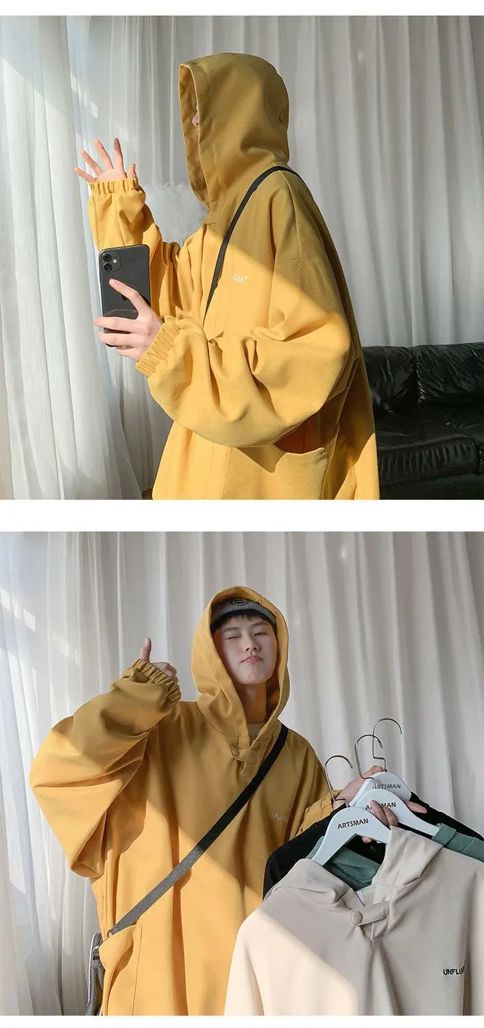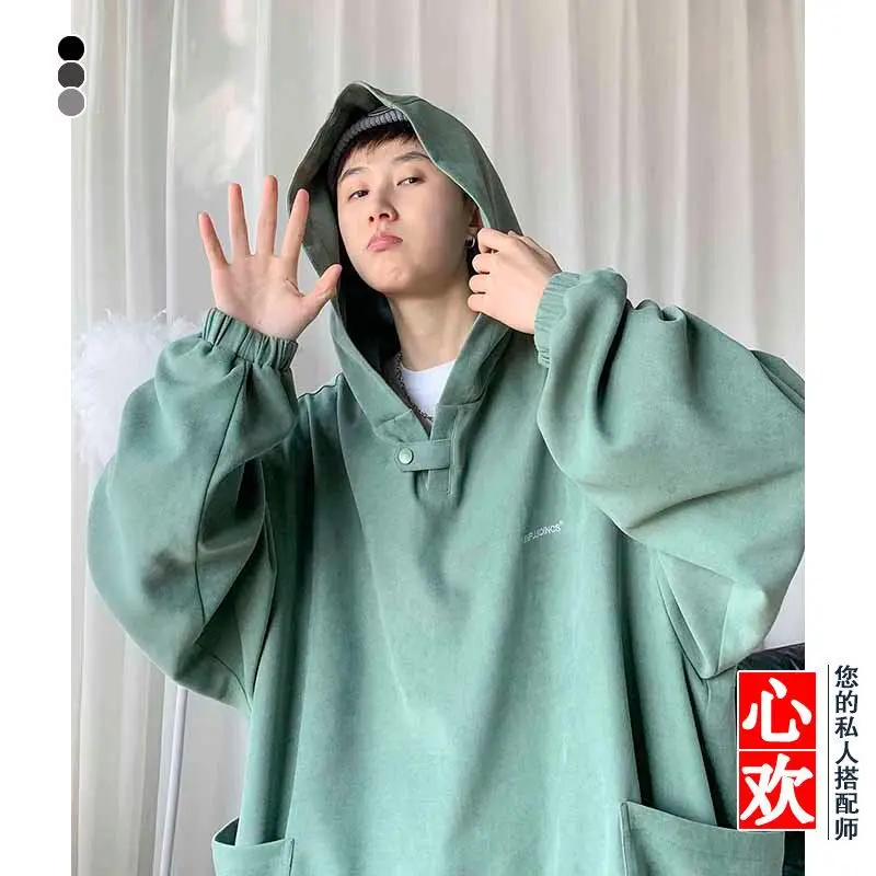 Fall Winter Letter Print Pocket Men Long Sleeve Hooded Sweatshirts Loose Vintage Korean Fashion Simple Oversized Couple Clothing