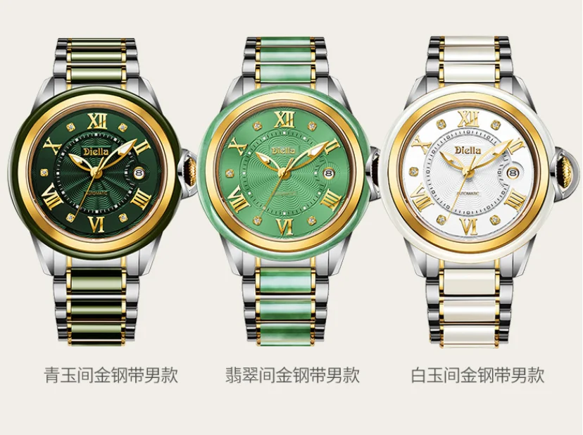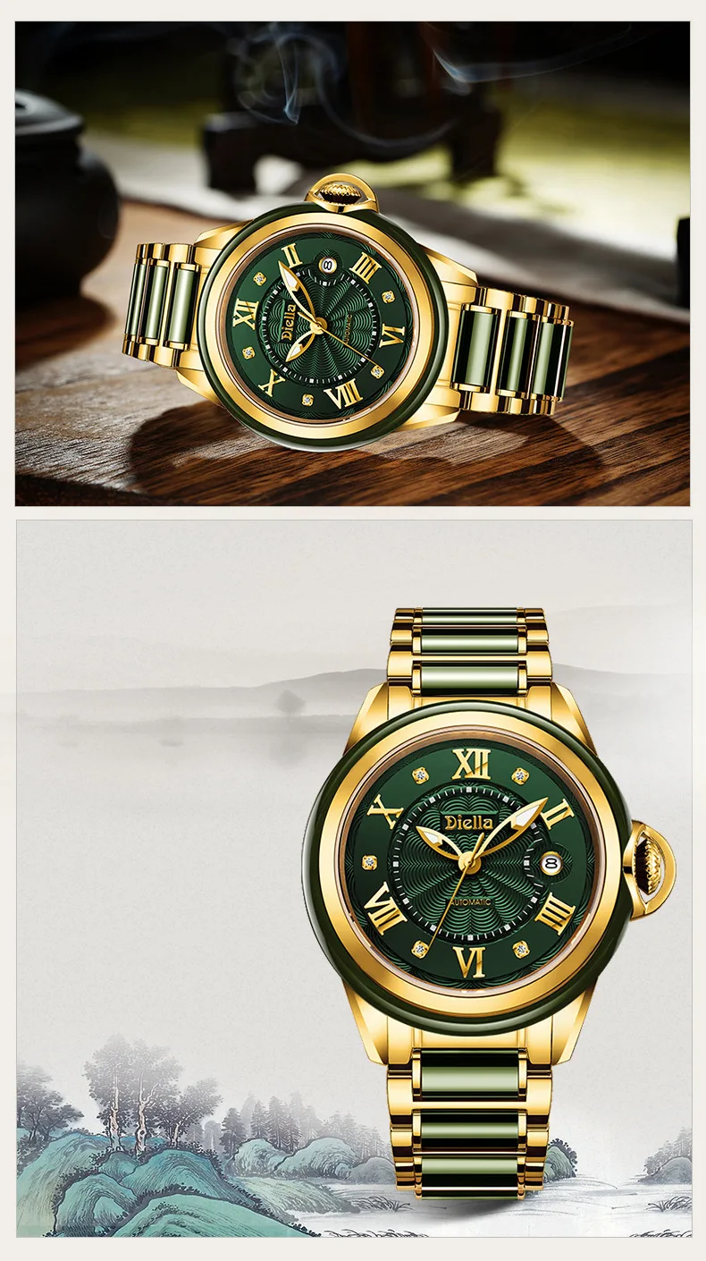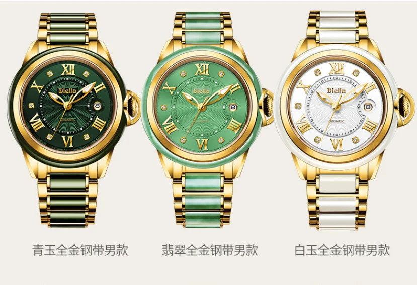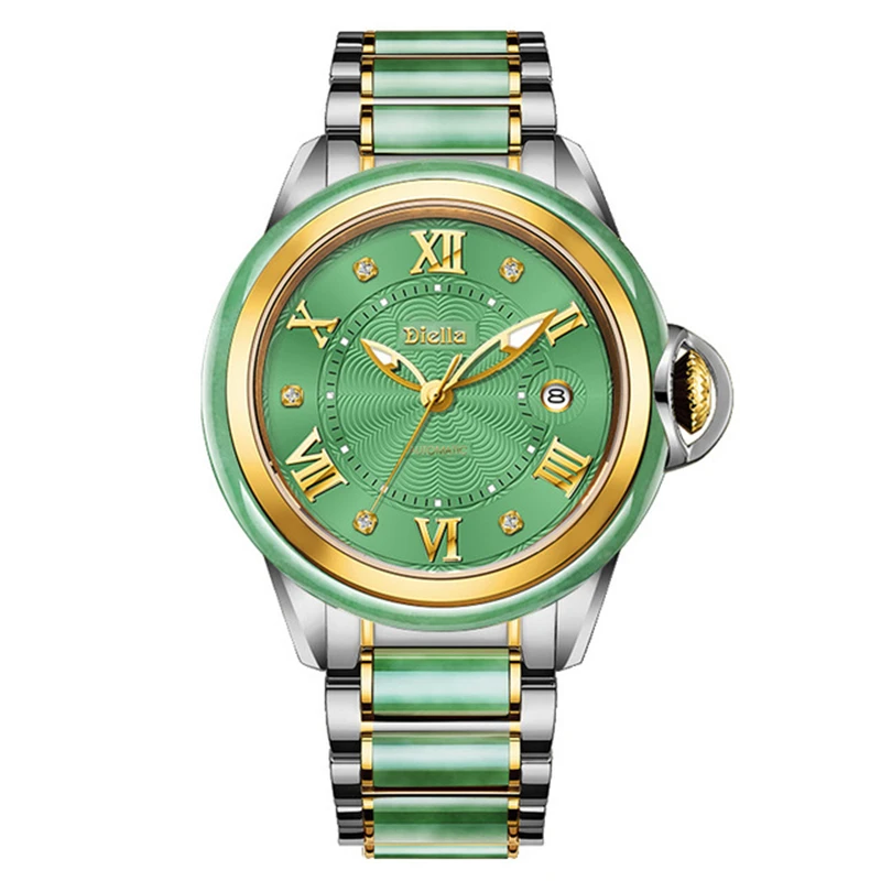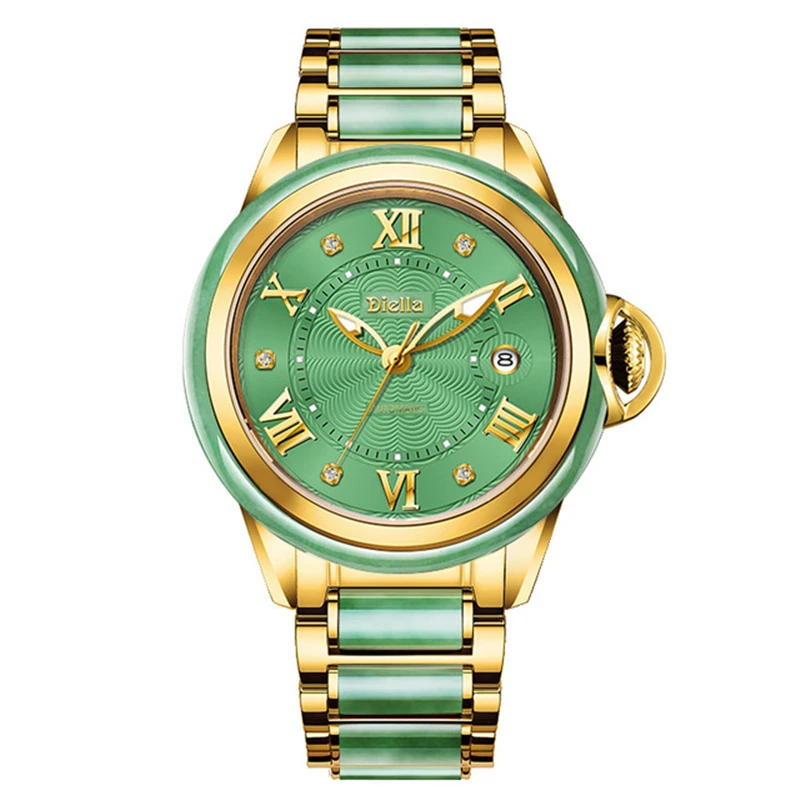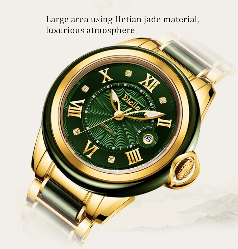 Fashion Jade Automatic Mechanical Men’s Watch Waterproof Luminous Calendar Men Jade Watches Business Gold Jade Watch