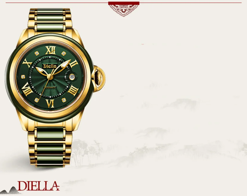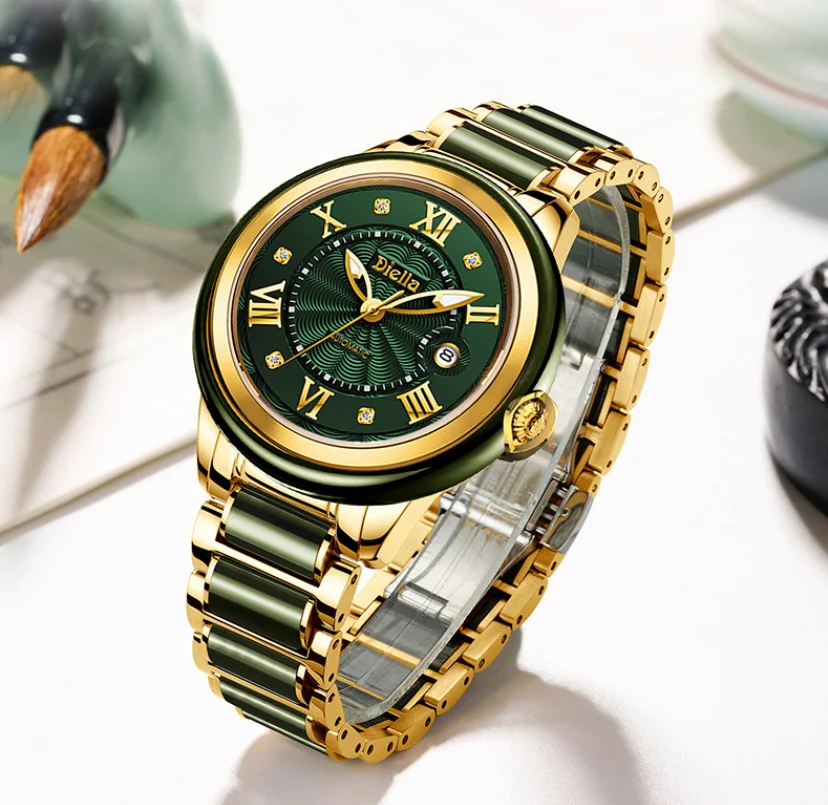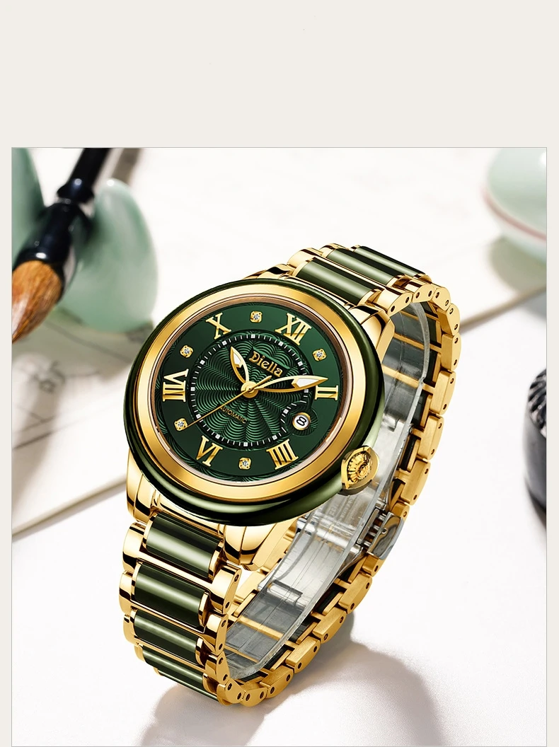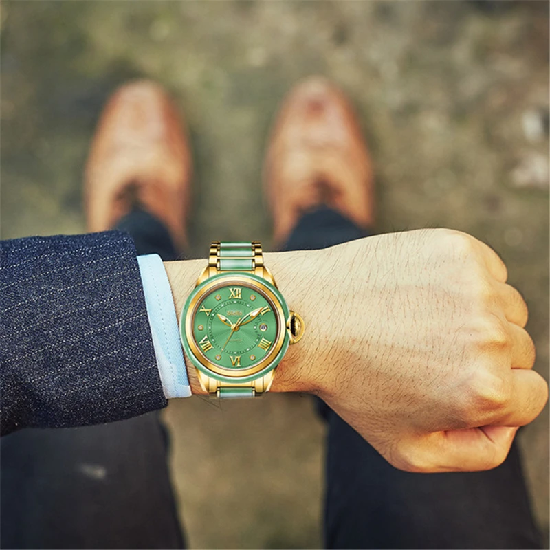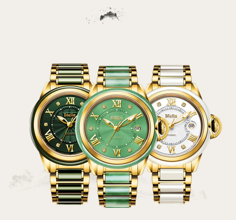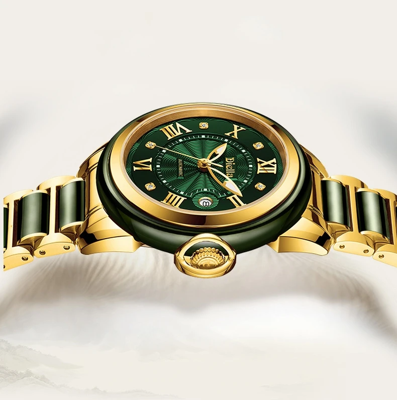 Fashion Jade Automatic Mechanical Men’s Watch Waterproof Luminous Calendar Men Jade Watches Business Gold Jade Watch