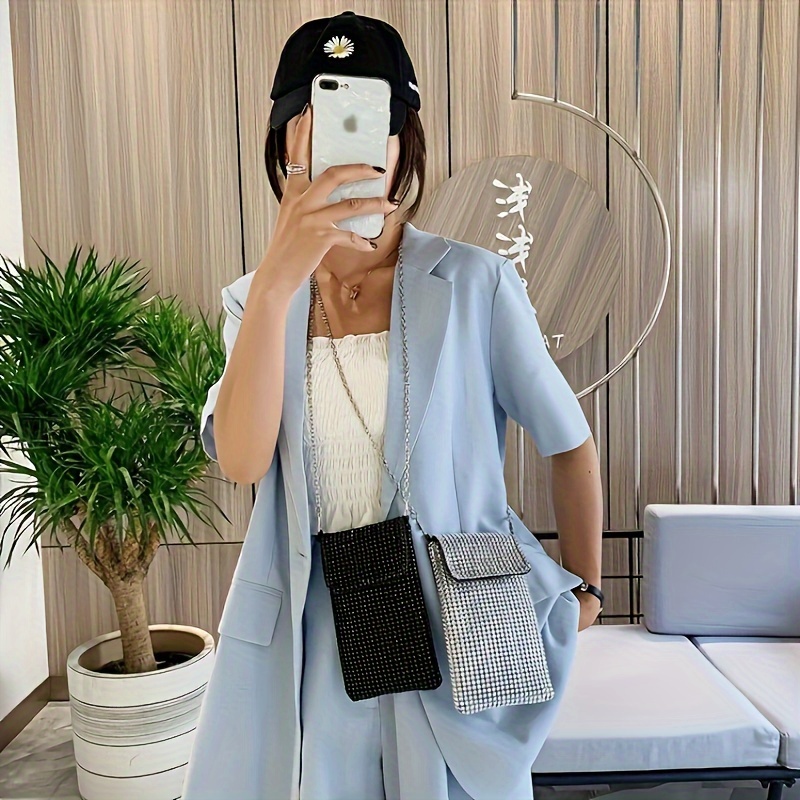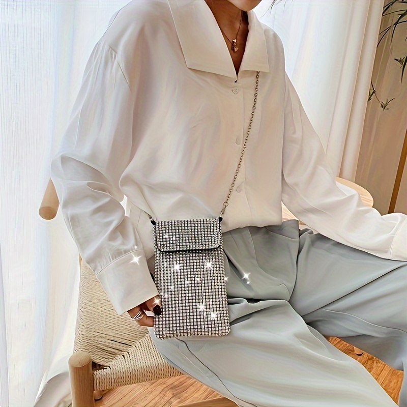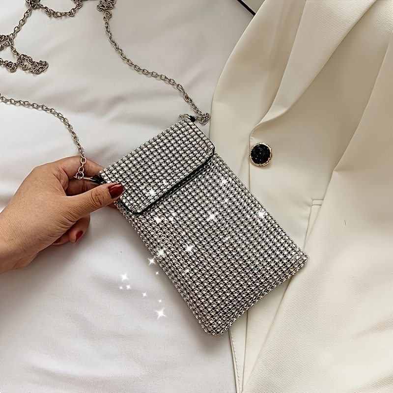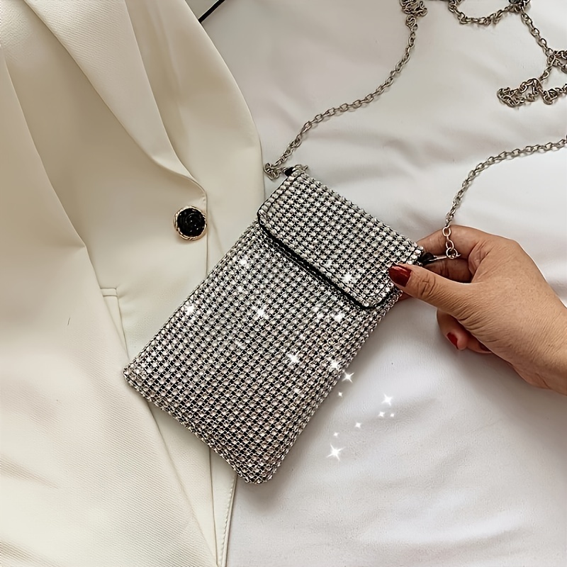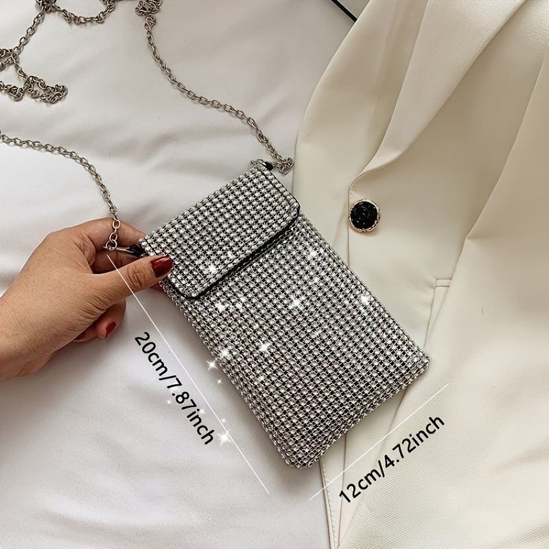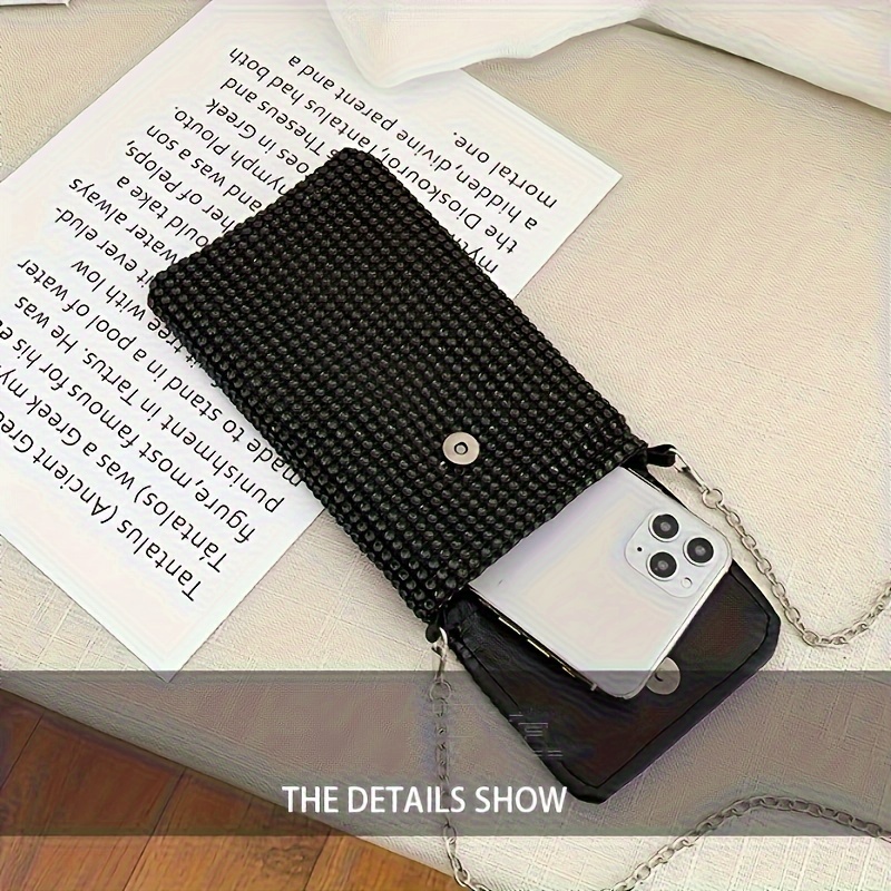 Fashion Women’s Crossbody Phone Wallet with Card Slots, Magnetic Closure and Chain Strap – Casual Polyester Shoulder Bag