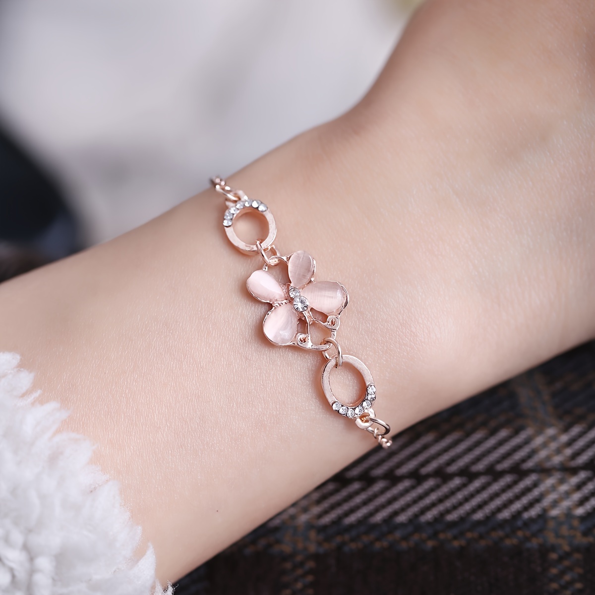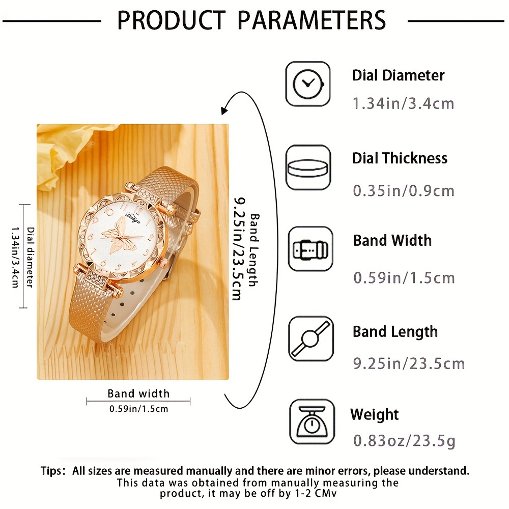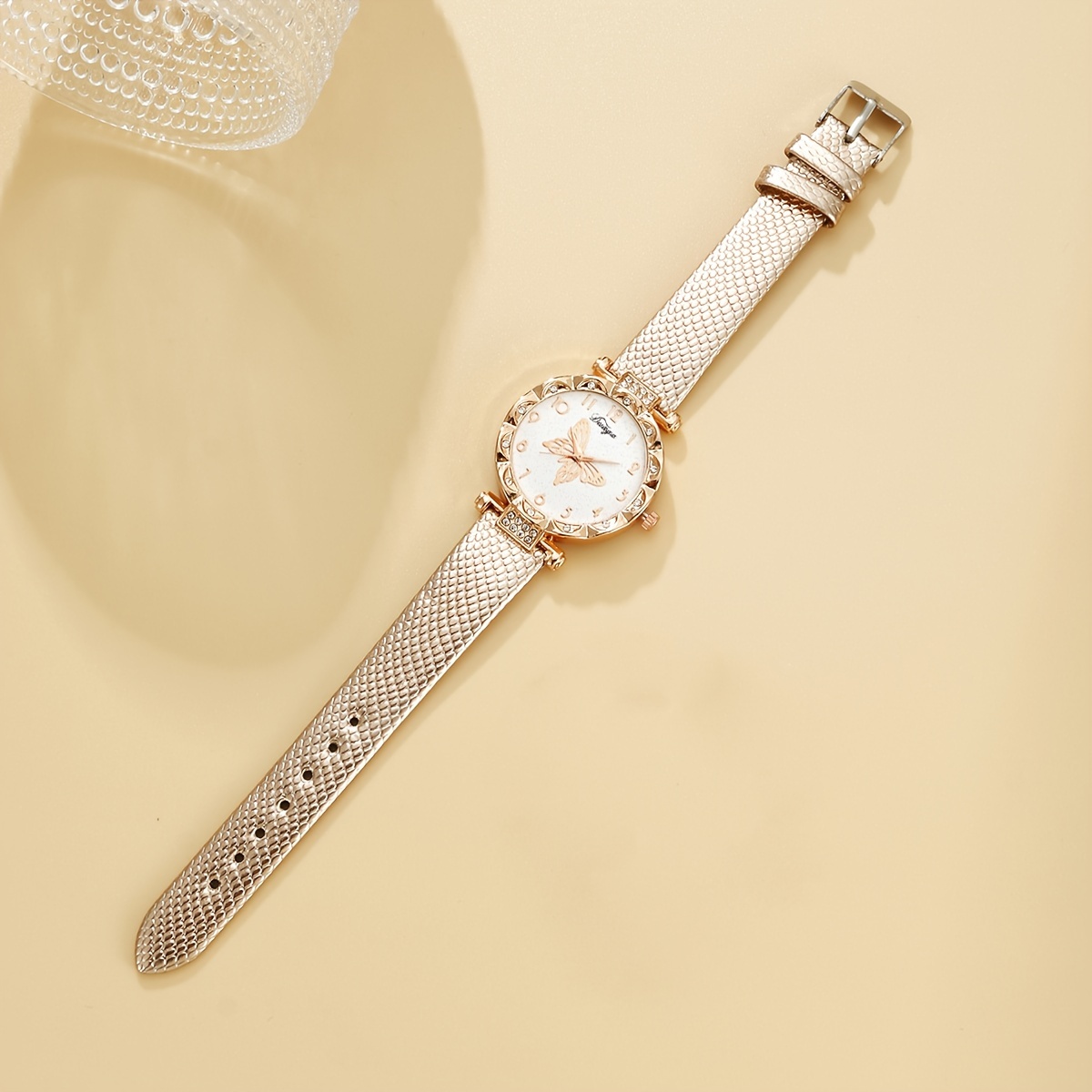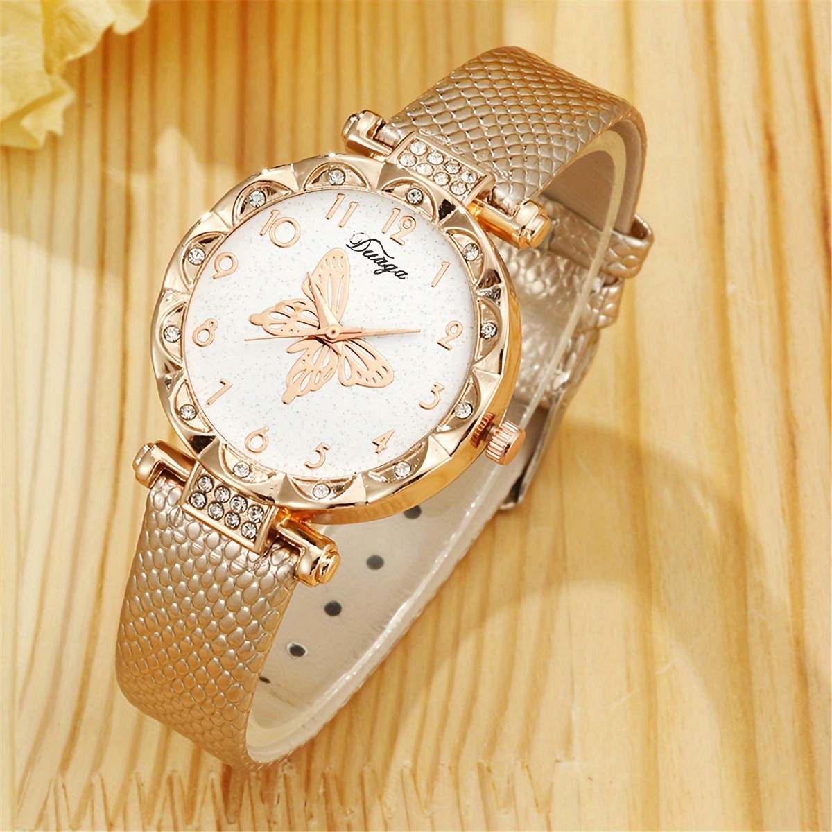 Fashionable Lady’s Rhinestone-encrusted Watch Quartz Watch + Rose Golden Butterfly Bracelet