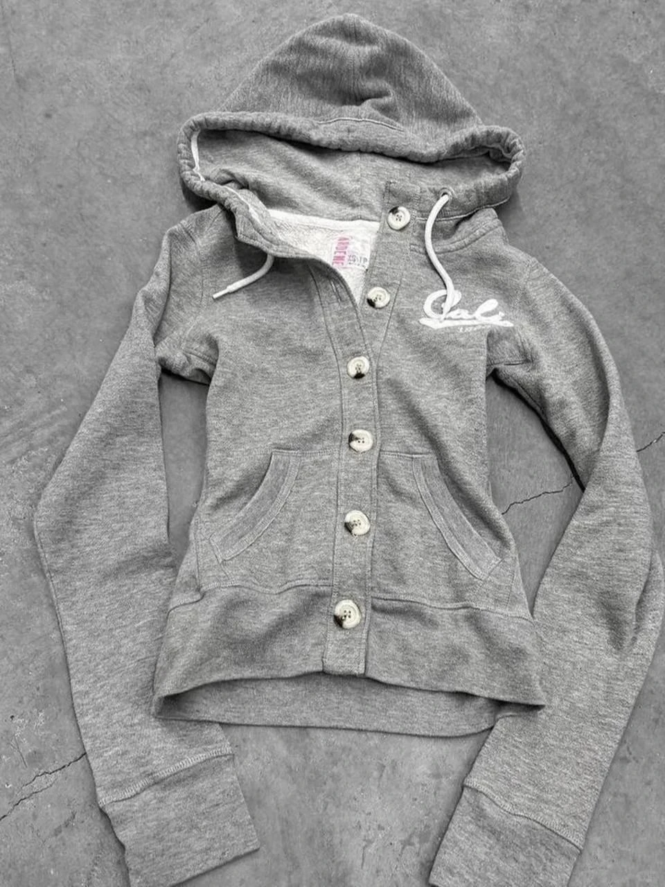 Fashionable millennial hot girl y2k grey hooded sweatshirt jacket for women’s autumn and winter vintage, a niche design top emo
