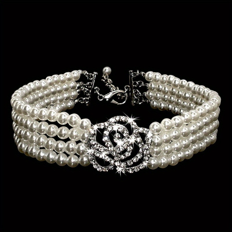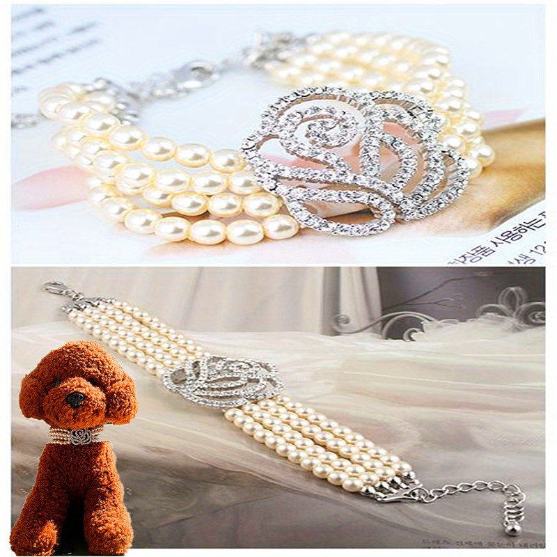 Fashionable Pet Collar, Artificial Pearls and Rhinestone Rose Diamante Dog Necklace, for Puppies and Cats, Plastic Material, Pet Accessories, 1pc