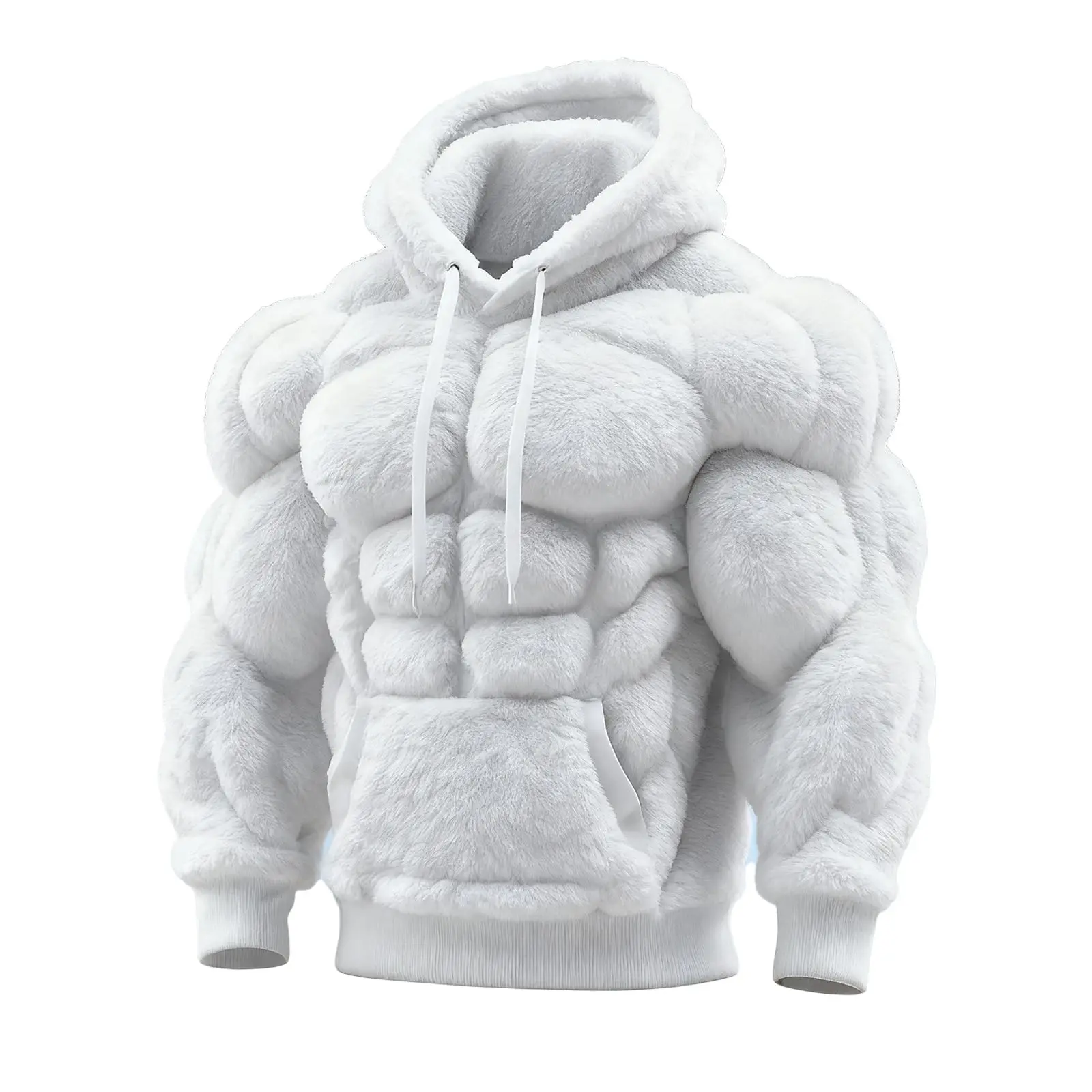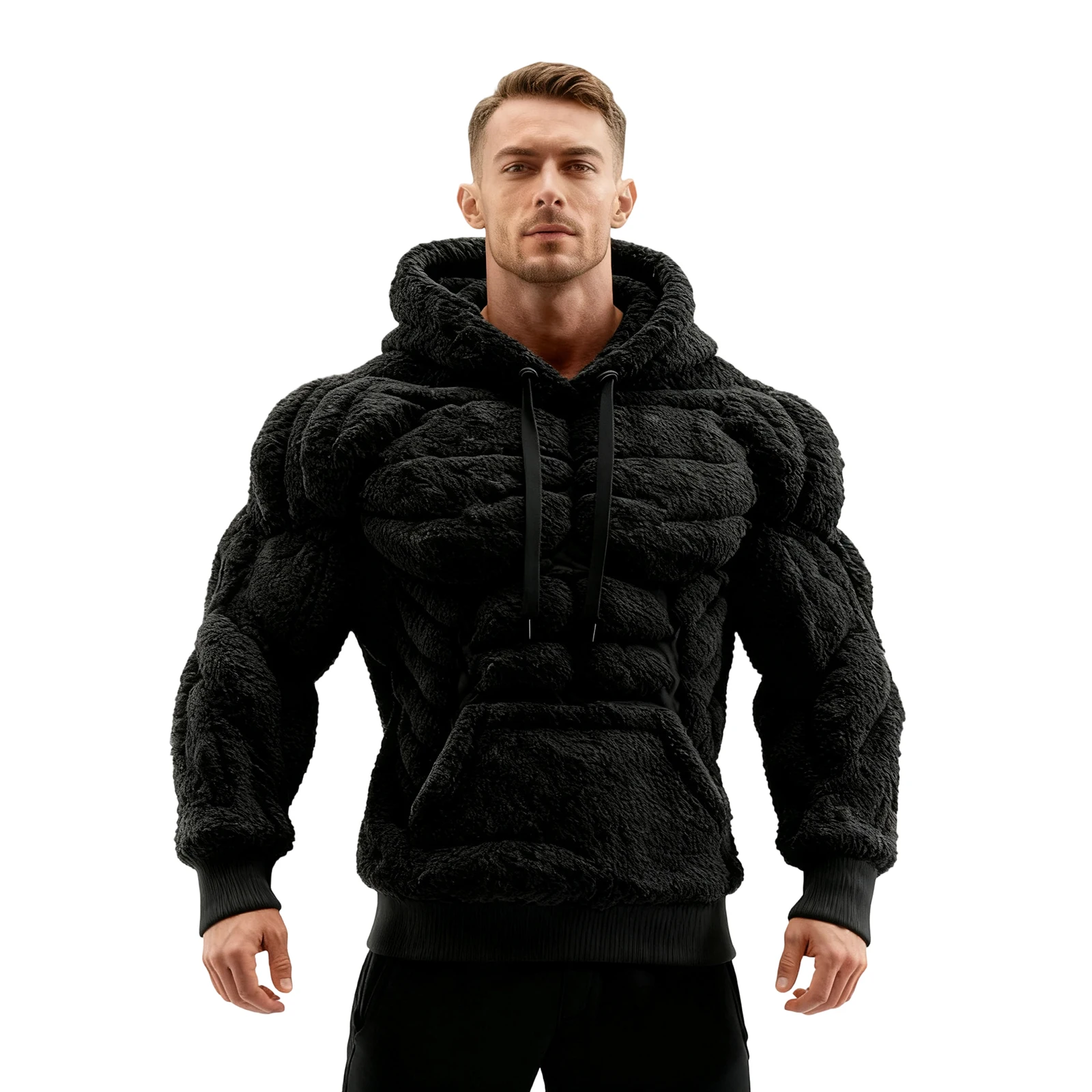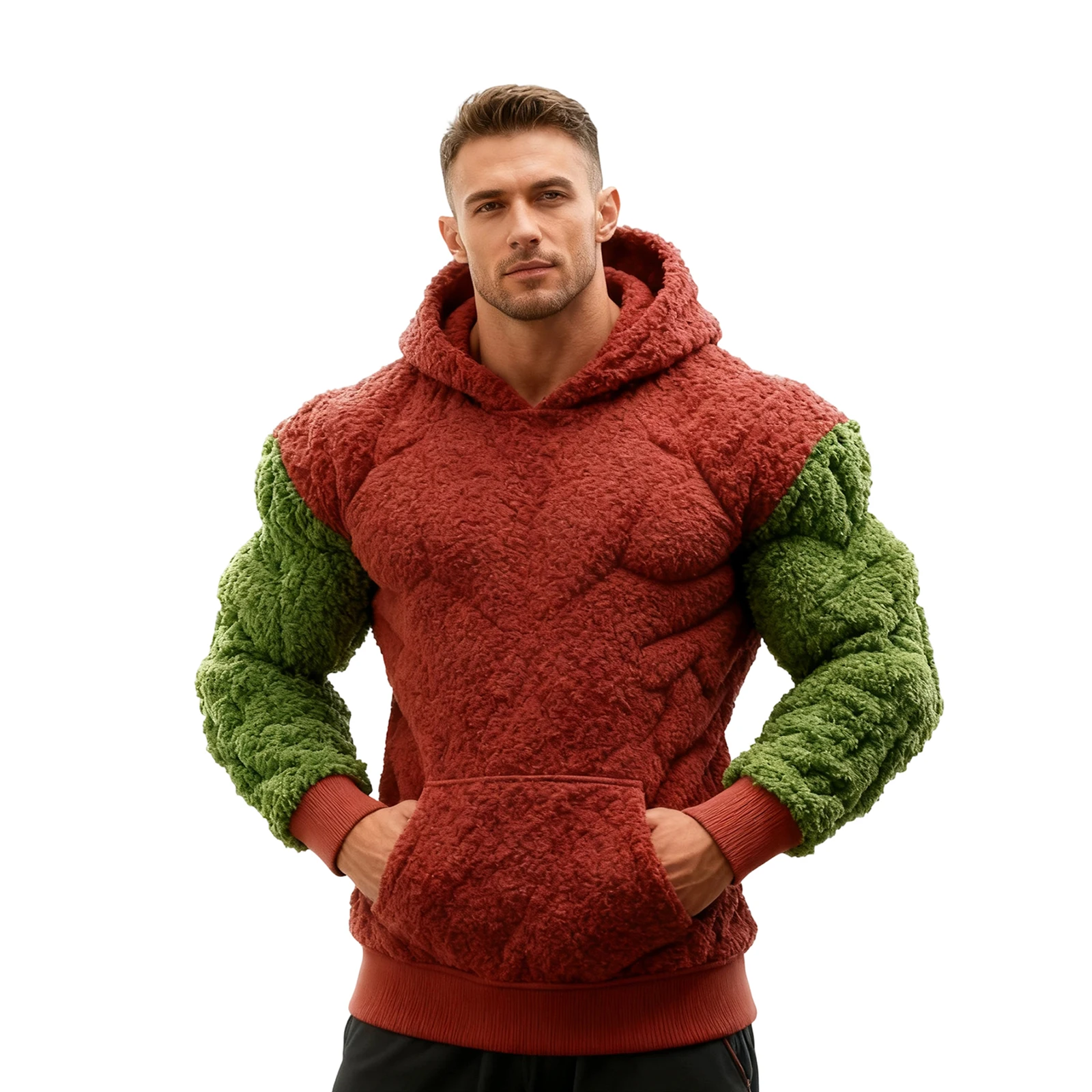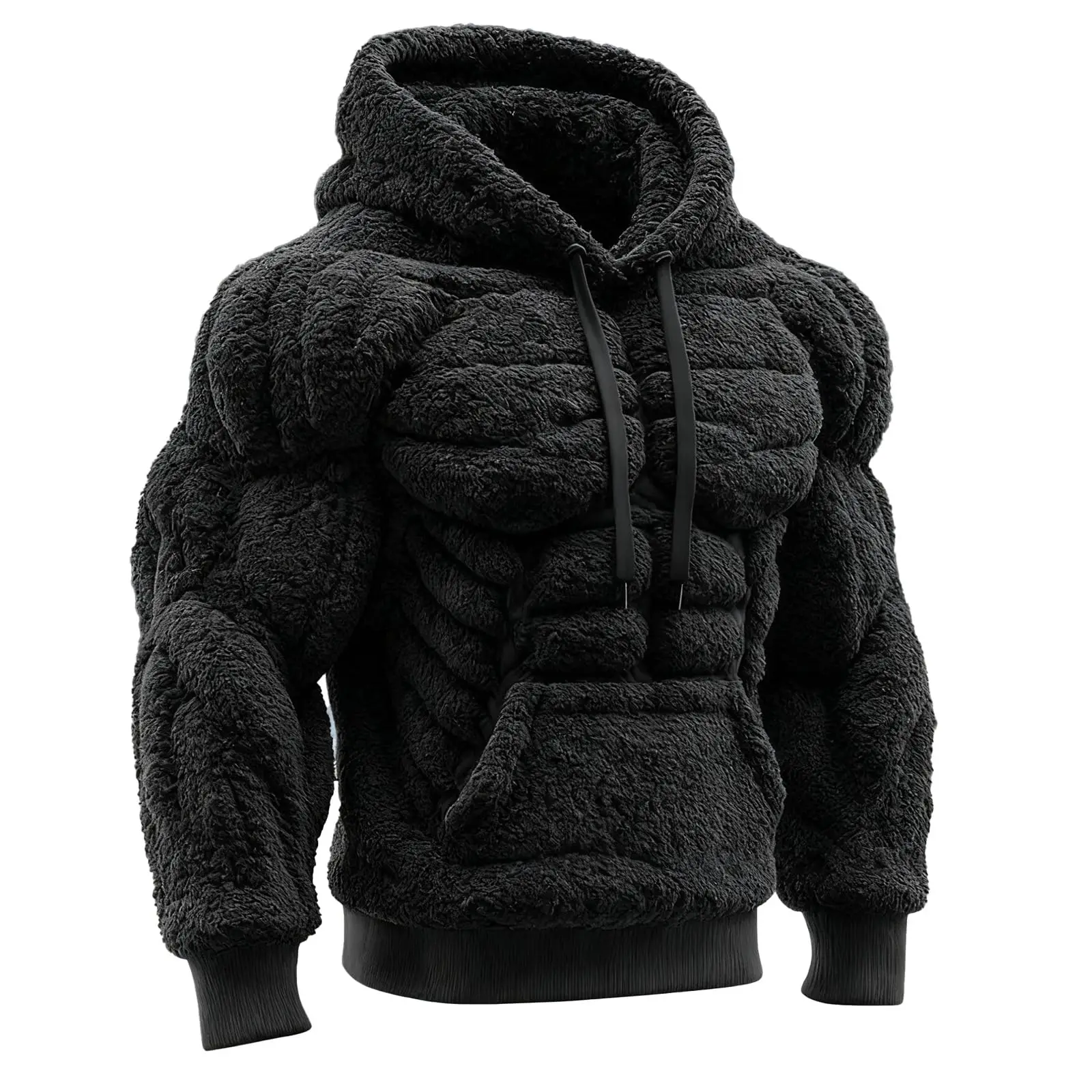 Flannel Solid Color Hooded Sweatshirt Abdominal Muscle Shape Hooded Sweatshirt Long Sleeved Patchwork Hoodie Men’S Pullover