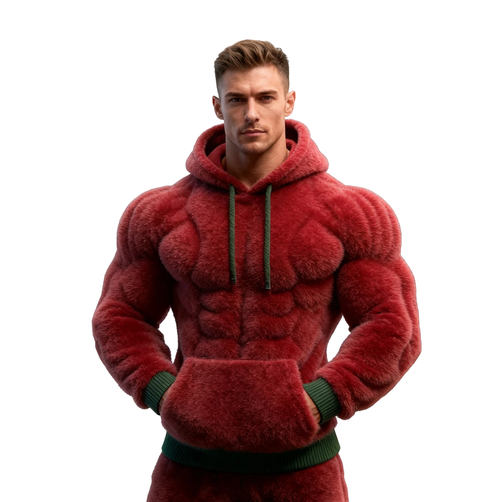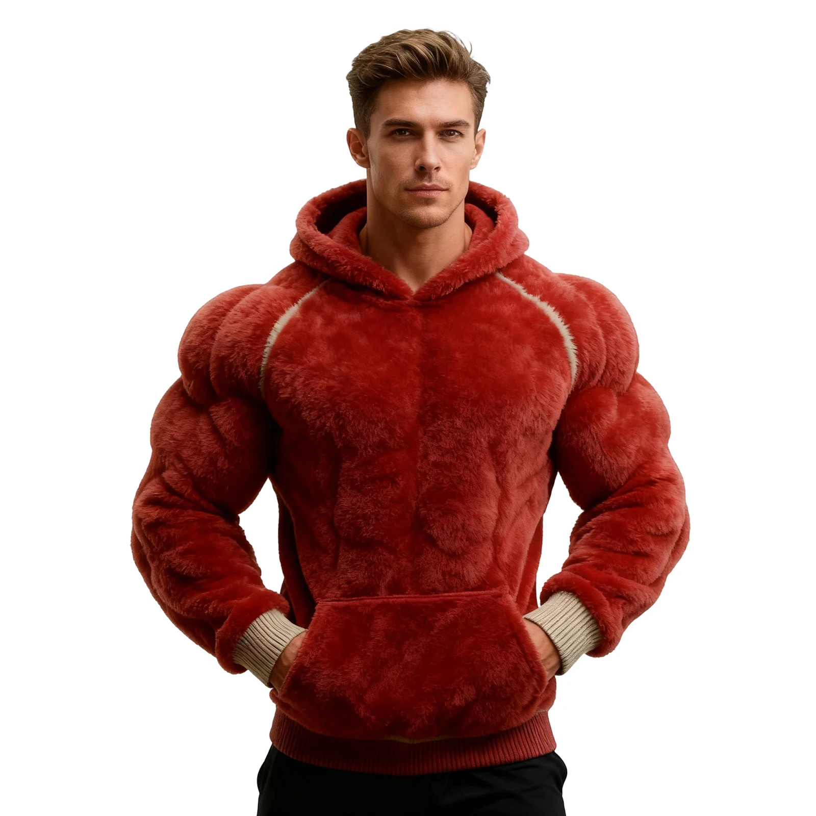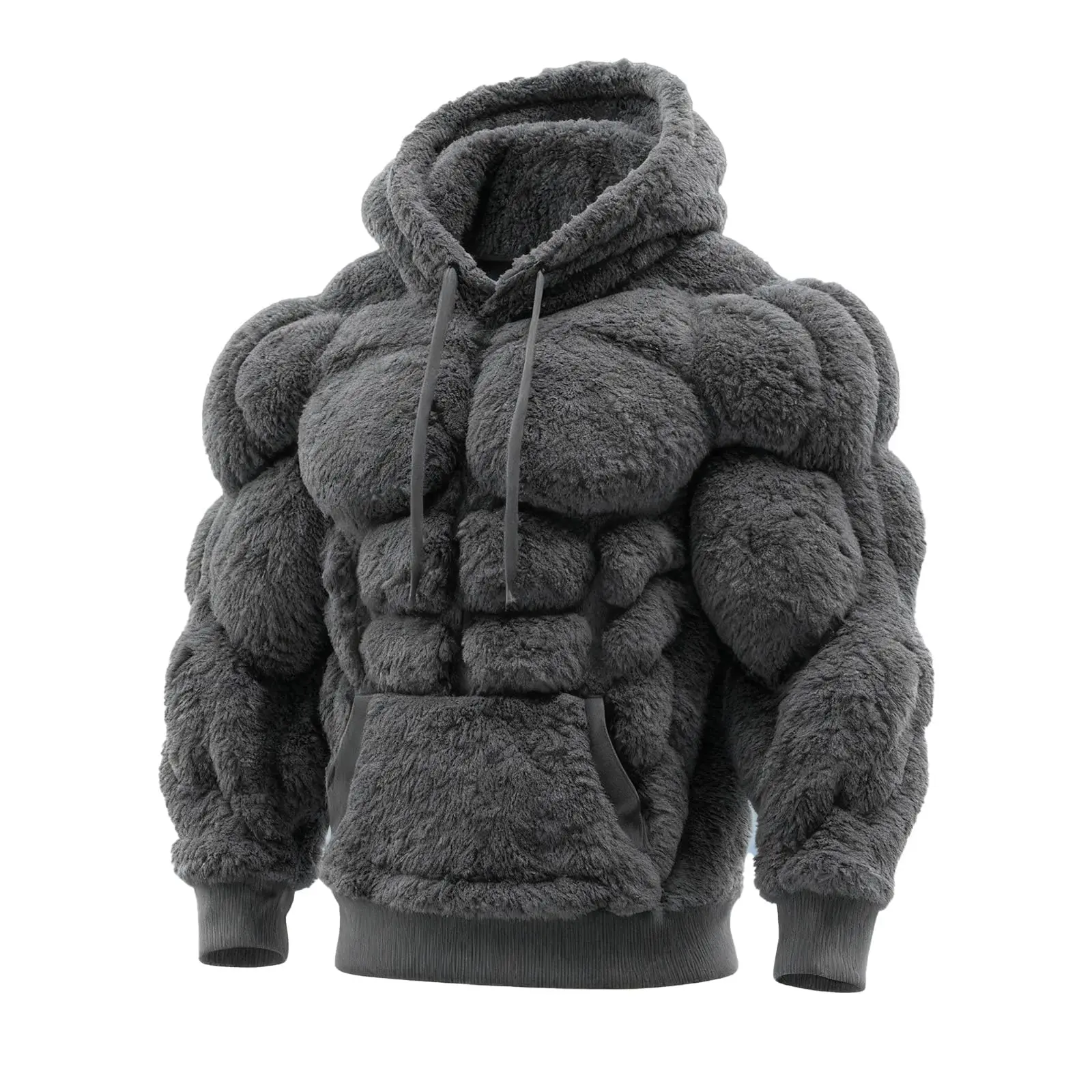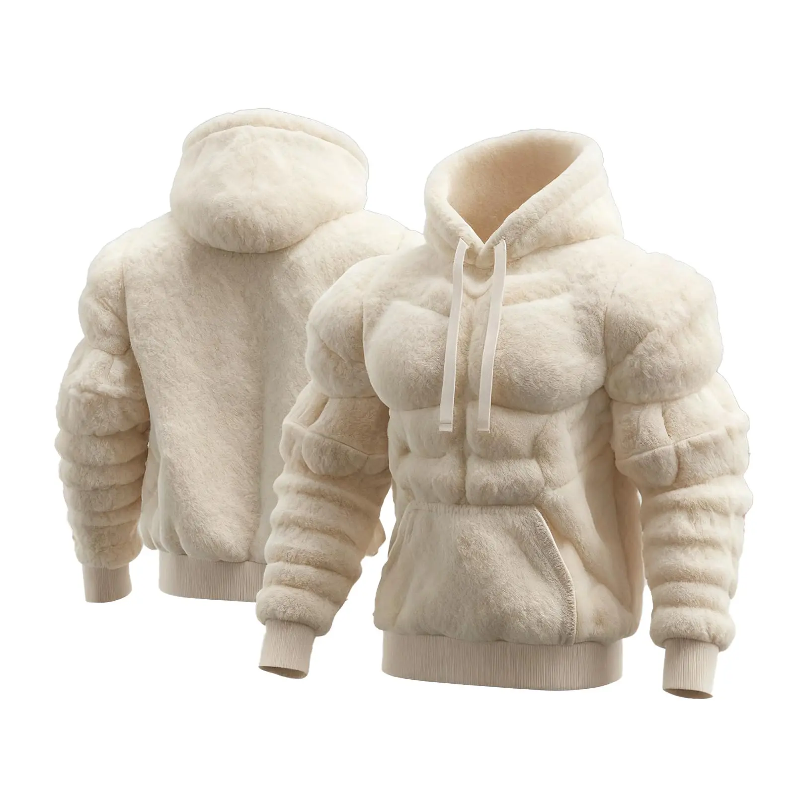 Flannel Solid Color Hooded Sweatshirt Abdominal Muscle Shape Hooded Sweatshirt Long Sleeved Patchwork Hoodie Men’S Pullover