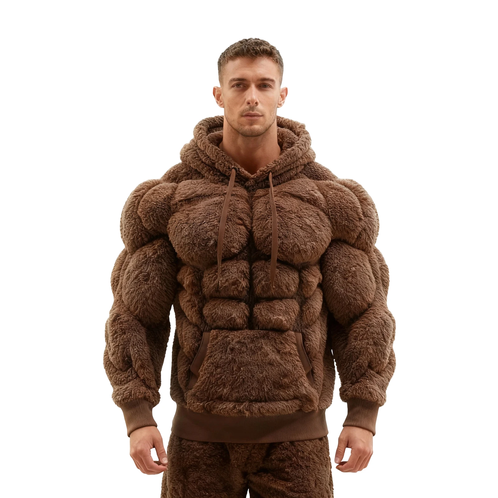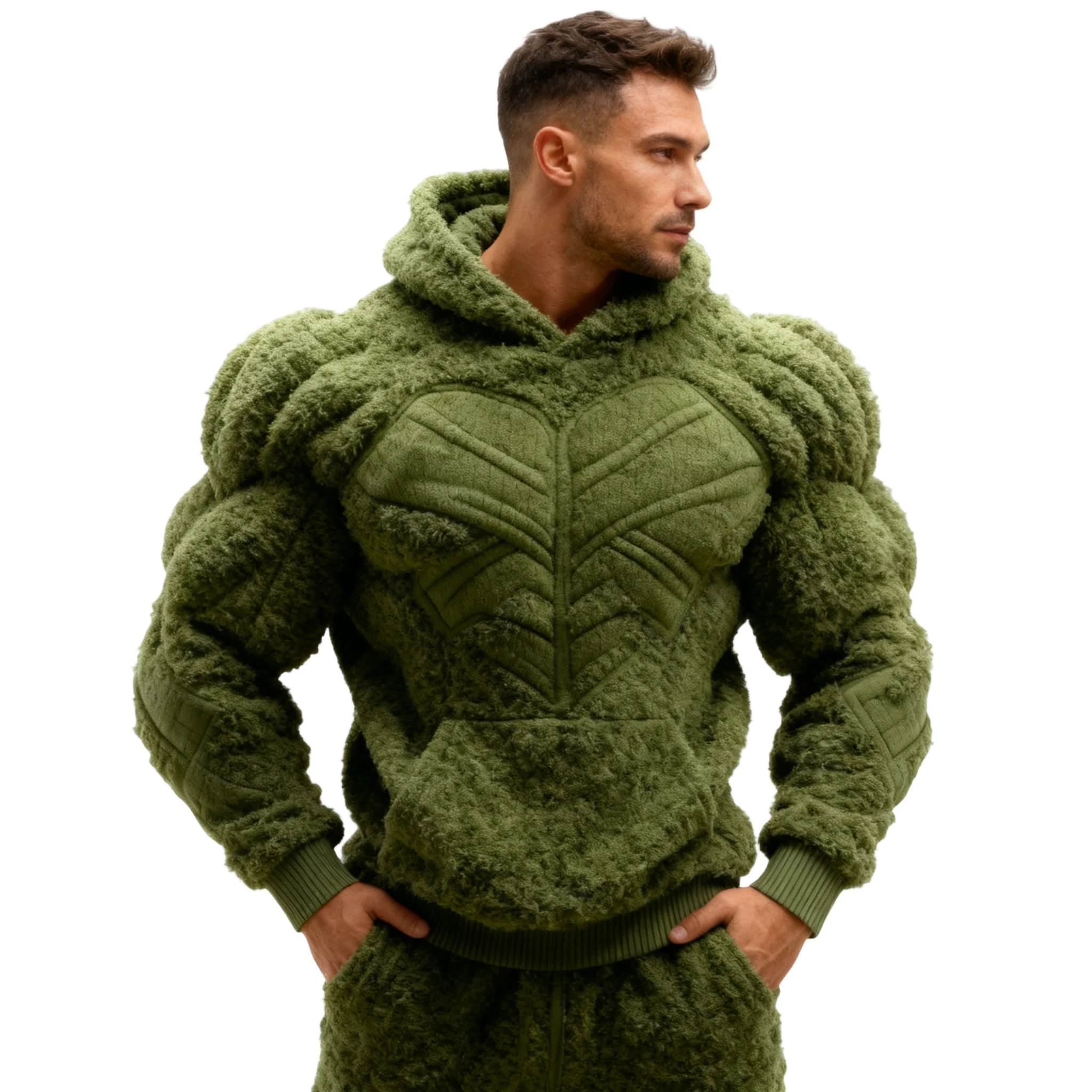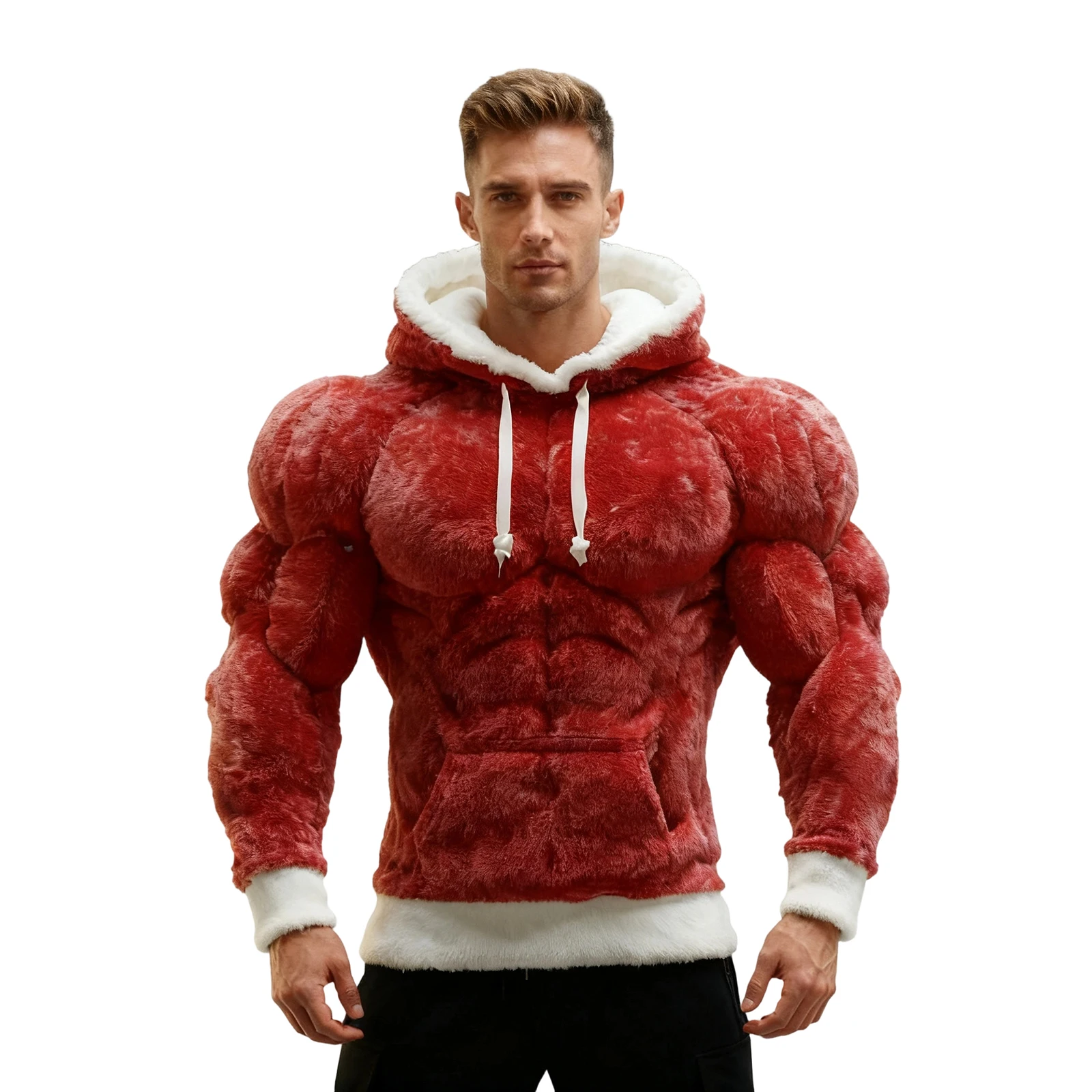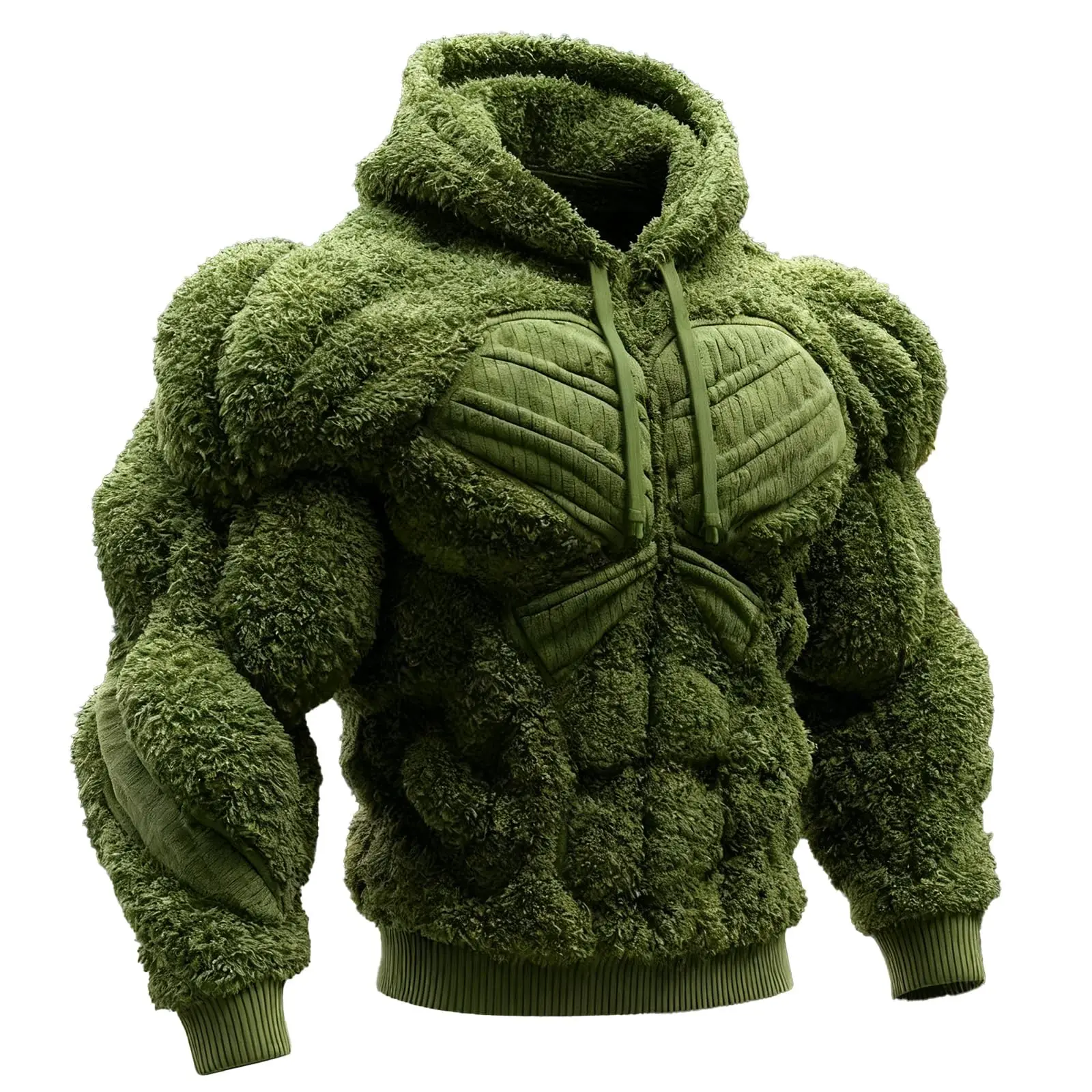 Flannel Solid Color Hooded Sweatshirt Abdominal Muscle Shape Hooded Sweatshirt Long Sleeved Patchwork Hoodie Men’S Pullover
