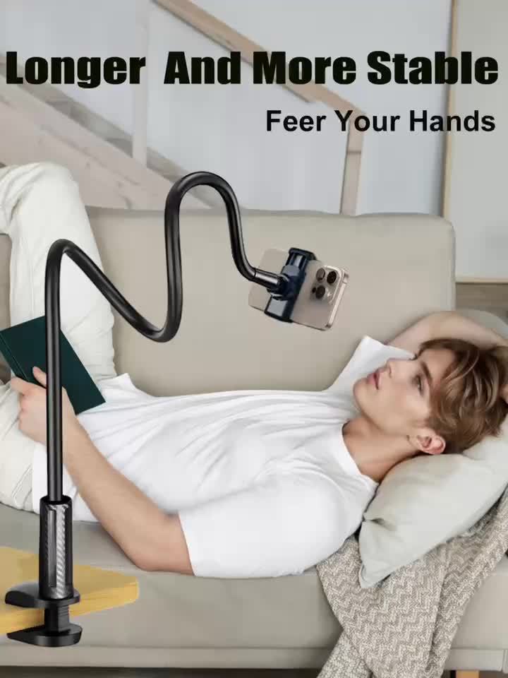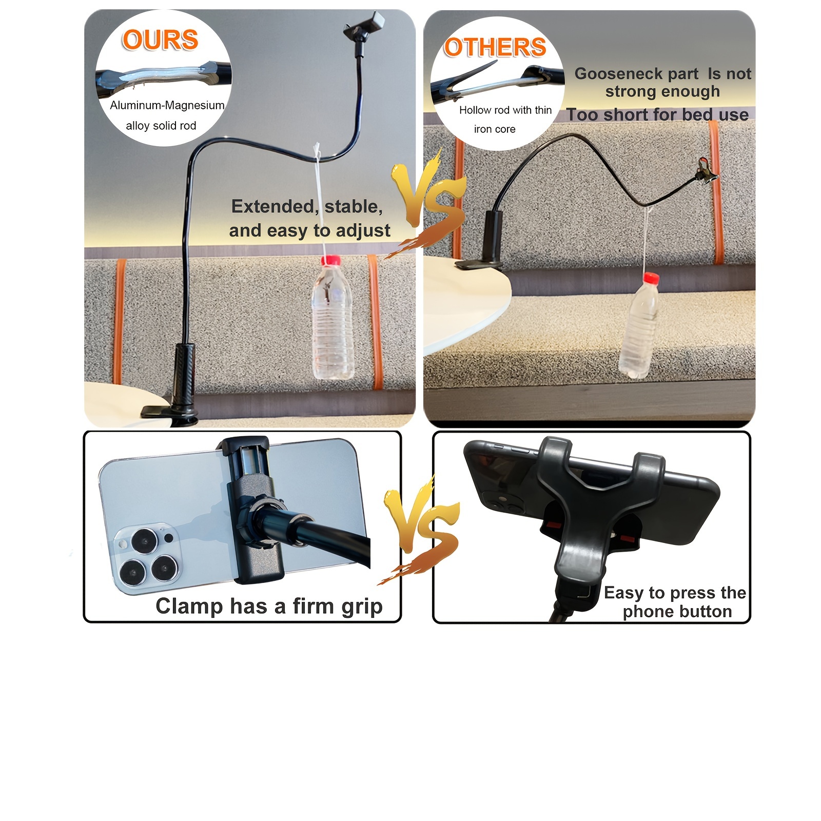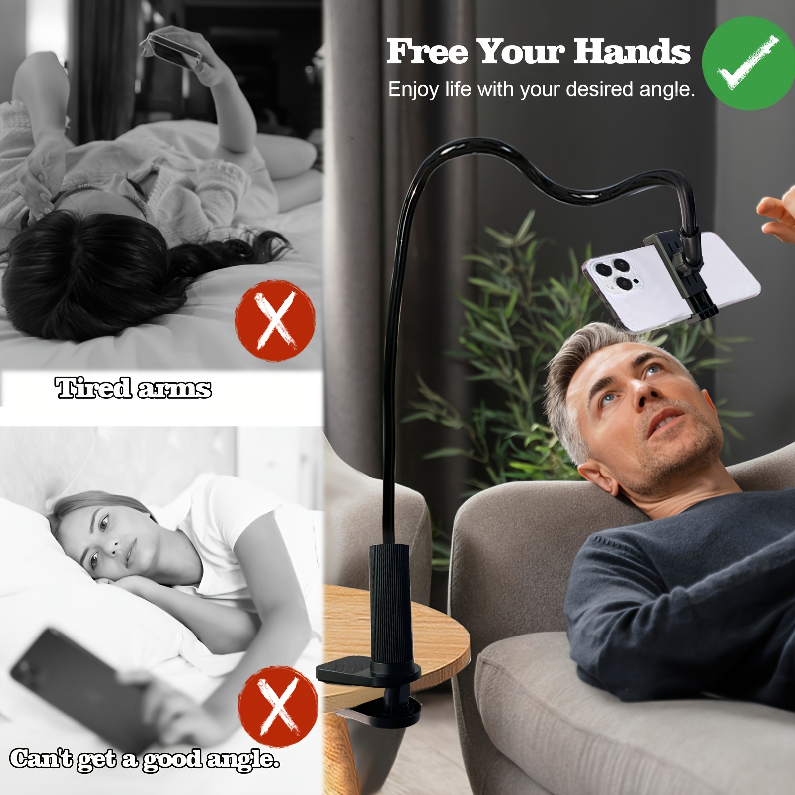 [Flexible Phone Holder] Durable ABS Long Arm Flexible Gooseneck Phone Holder Clamp with Handle | Ideal for Bedside, Desk, Headboard | Perfect for Samsung/iPhone 15 Pro Max/11/12/13/14