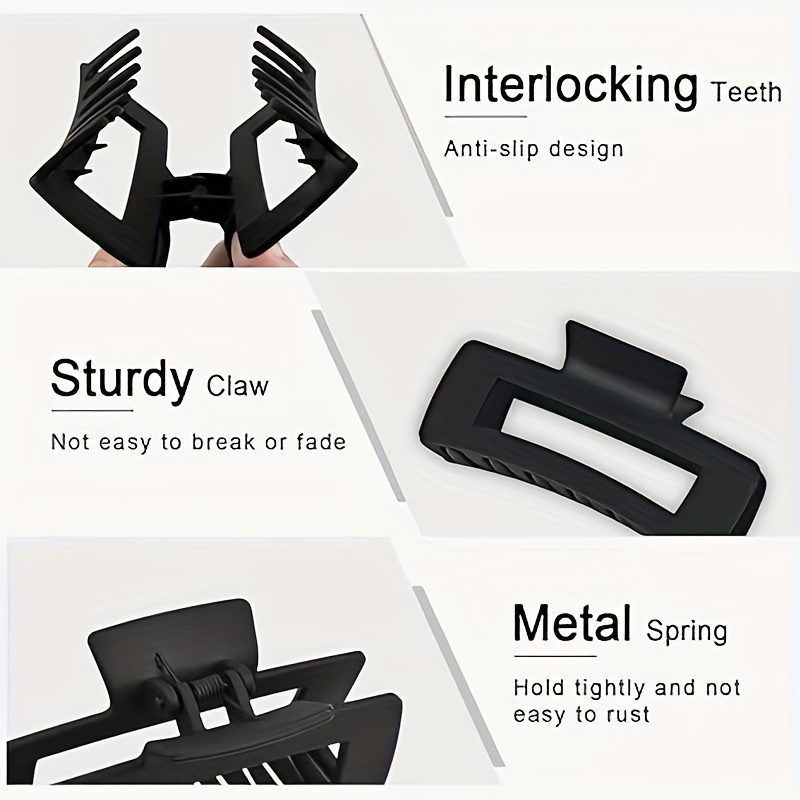 Four Rectangular Hair Clips for Women And, Designed to Prevent Slipping, Suitable for Both Thin And Thick Hair, Featuring a Square Jaw for Strong Hair Accessory Fixation.