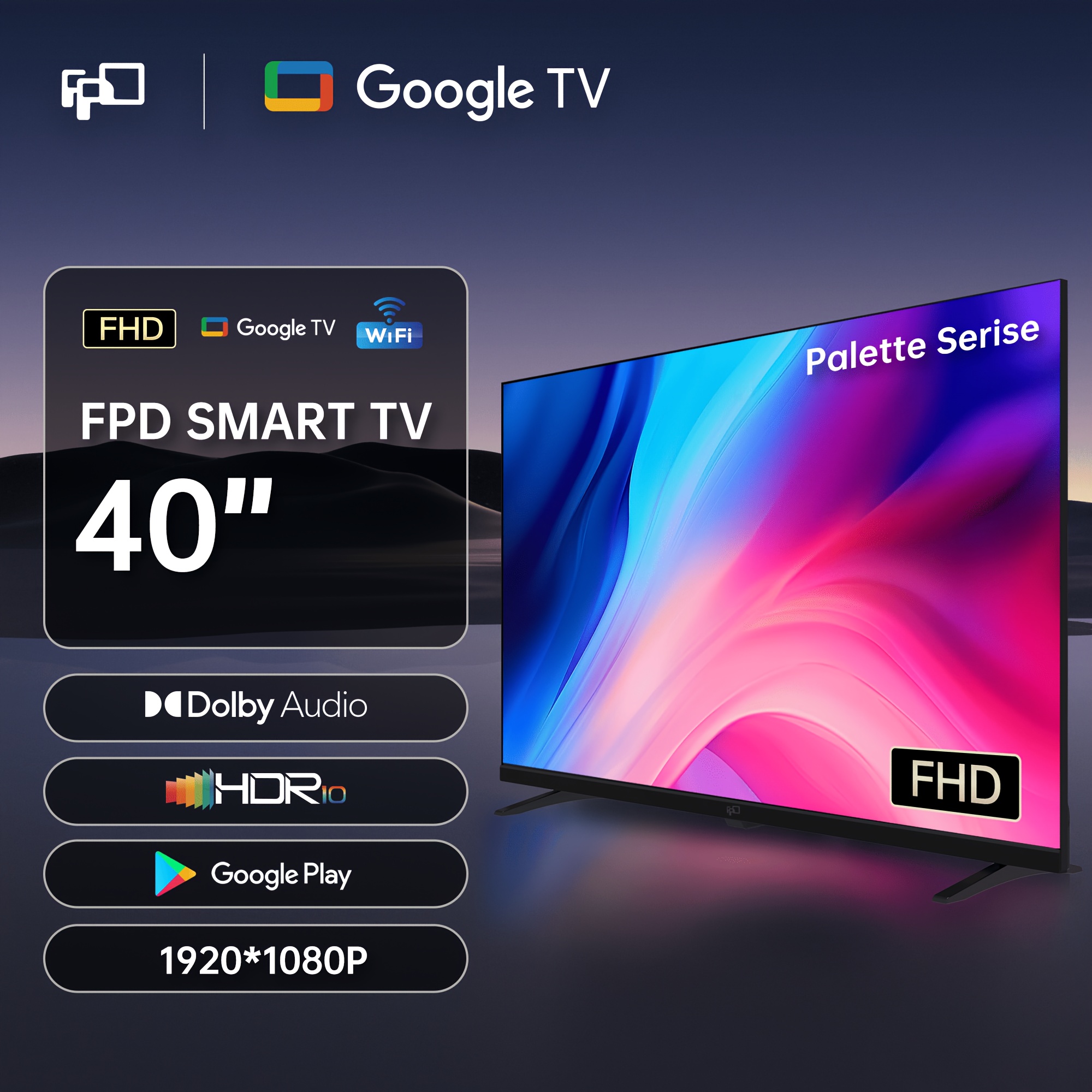 FPD 40 Inch Google TV, 1080P Full HD Smart TV with Google Play Built In Google Cast, HDR 10, Audio, Voice Remote, Stream Live Television (Palette-Series, US40GFS, 2025 Model)