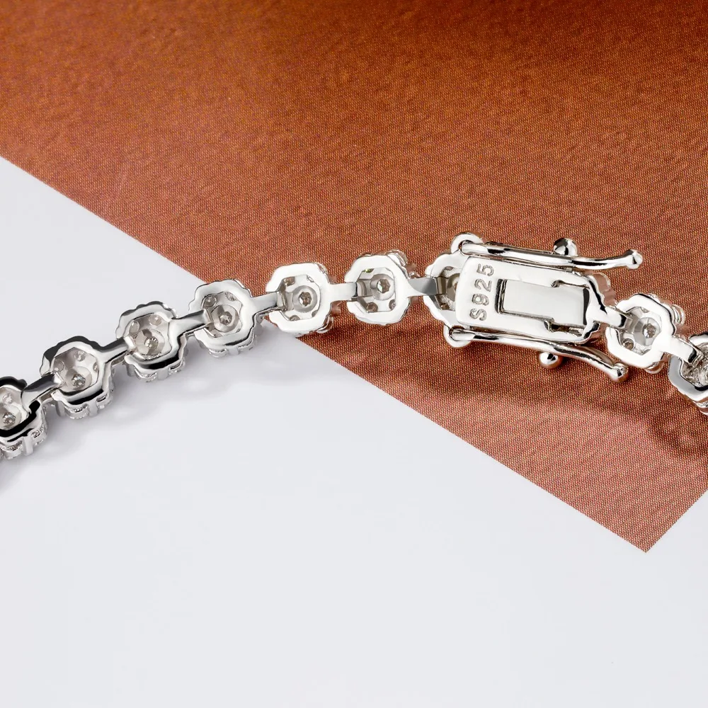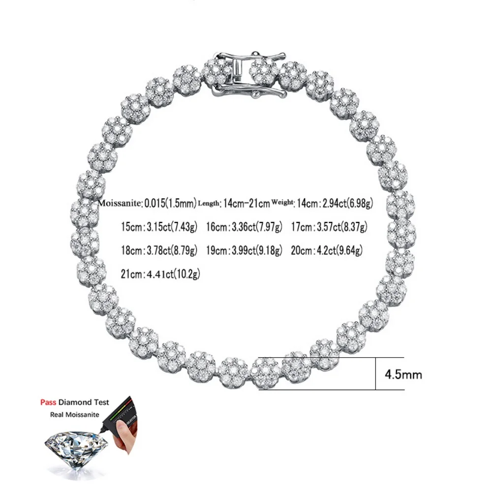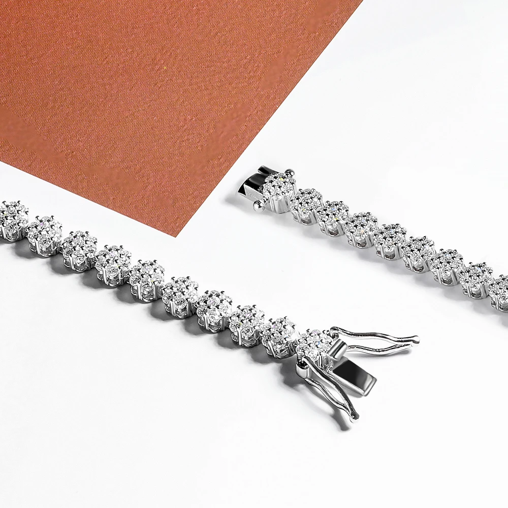 Full Moissanite Tennis Bracelets Women S925 Silver Flower Shape Lab Diamond Hand Chains Party Gifts 18K Plated Jewelry