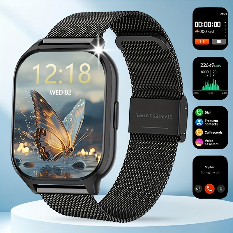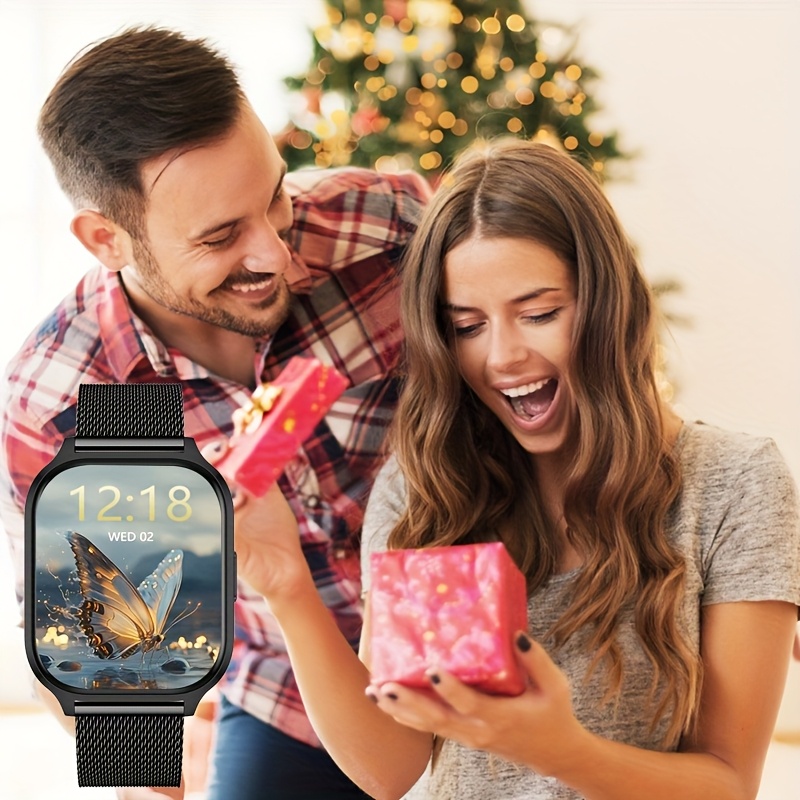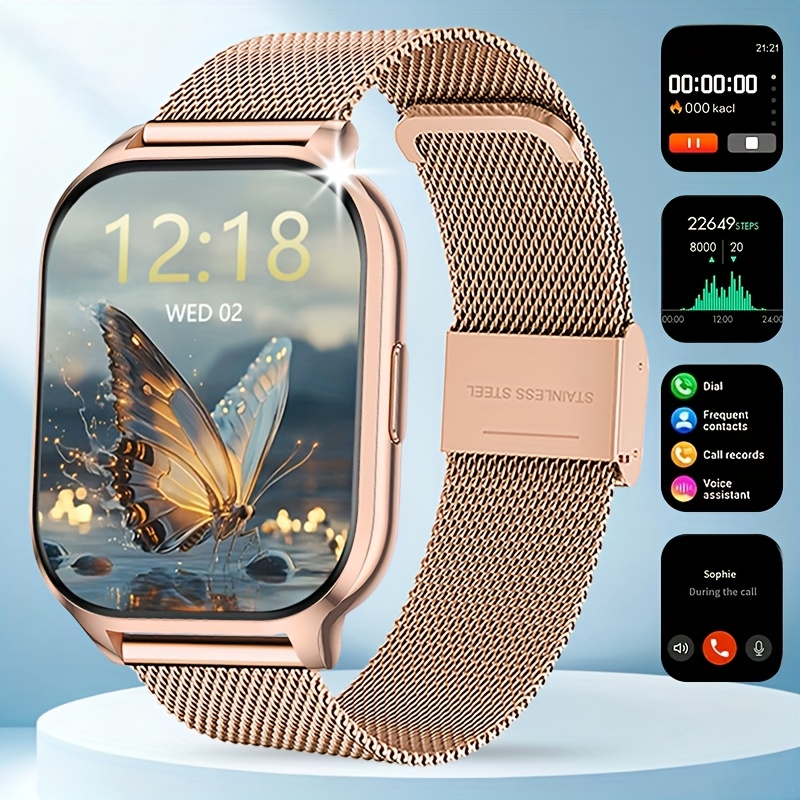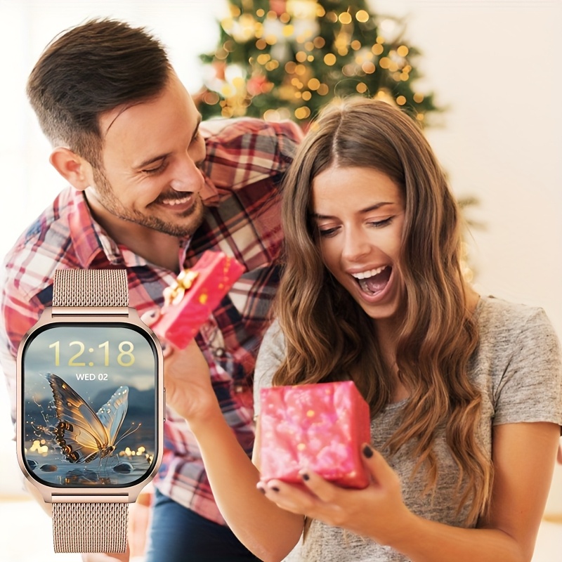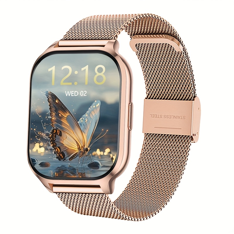 Full Touchscreen Smart Watch for Men and Women, Text Message Notifications, Remote Camera and Music Control, USB Charging, Golden Case, Fashionable Minimalist Design, Compatible with Android and iPhone, the Perfect Gift for Any Occasion!, Remote