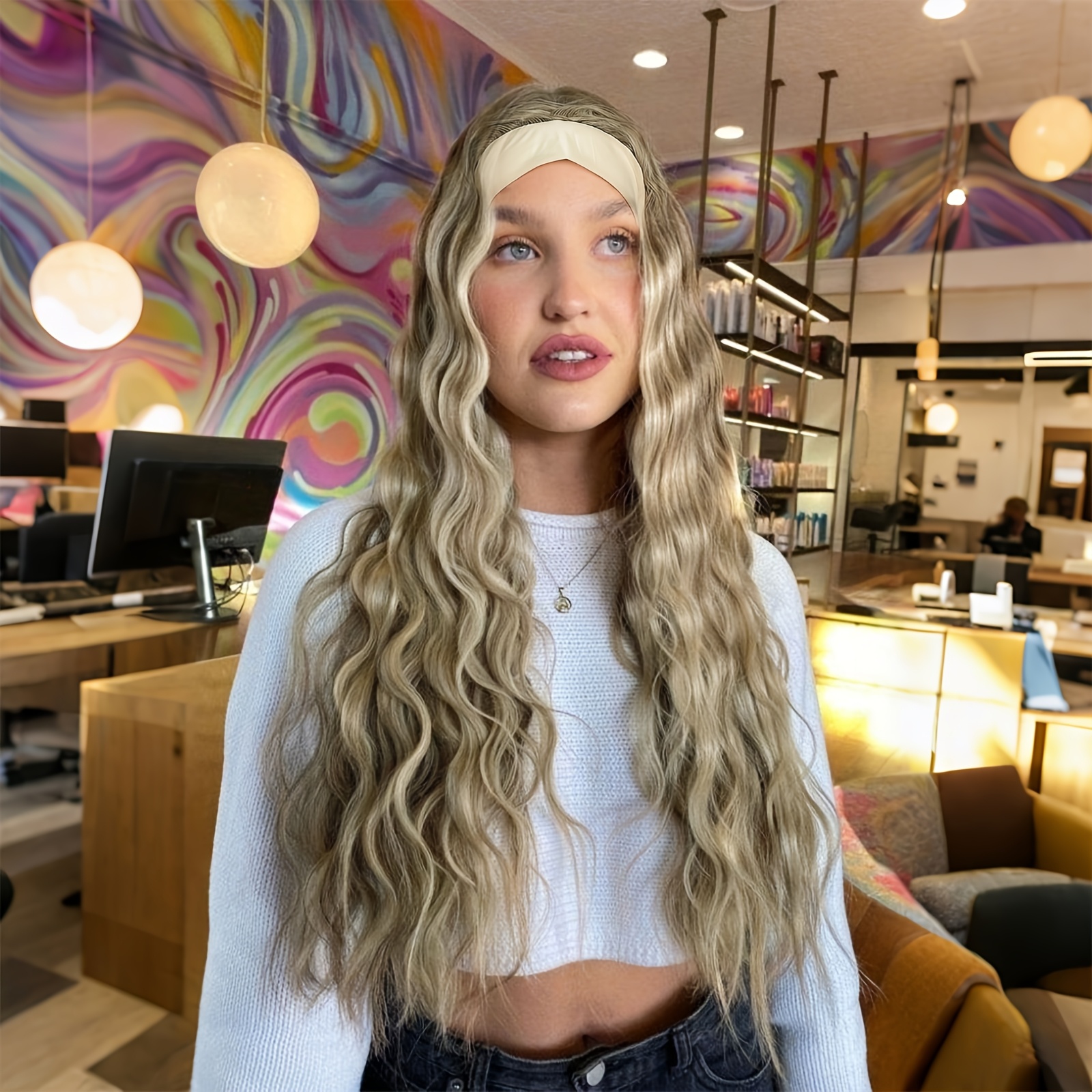 Glueless Headband Wig Wet And Wavyh Synthetic Hair Wigs for Women Wave None Lace Wigs Brown Color Machine Made Wigs Synthetic Hair Wig for Women Daily Cosplay, Daily Wear Wig, Cosplay Wig, Natural Look Wig, Wavy Synthetic Wig, Highquality Synthetic Wig, Lightweight Wig, Women’S Wig, Synthetic Hairpiece, Cosplay Enthusiasts, Women’S Fashion Wig
