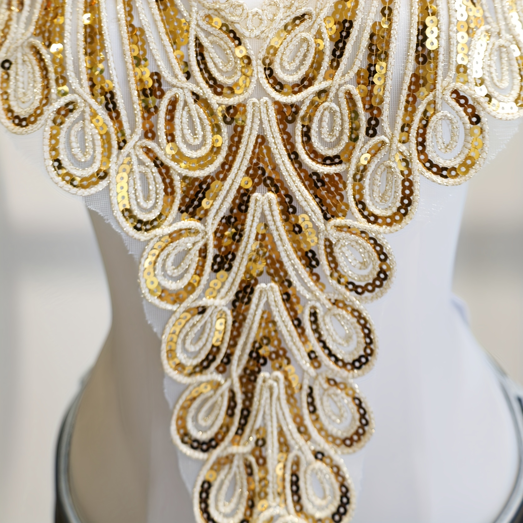 [Golden Glitter Lace Trim] Polyester Golden Glitter Feather-Like Lace Trim | Elegant Decorative Accents for DIY Crafts, Sewing & Knitting Projects, Luxurious Neckline, Reflective Beauty