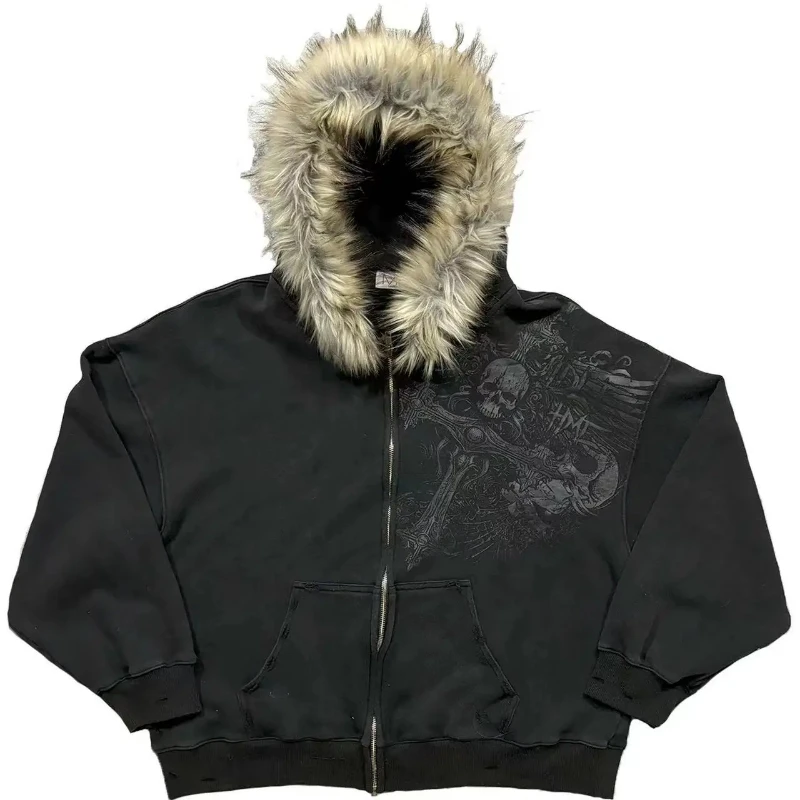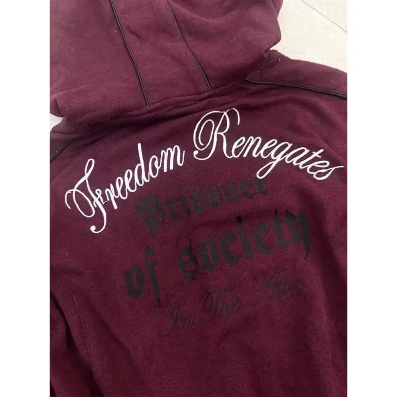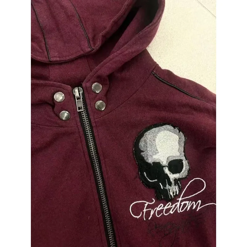 Gothic Harajuku skull letter embroidery slim vintage zip up hoodies for women subculture y2k winter new dark casual sweatshirts