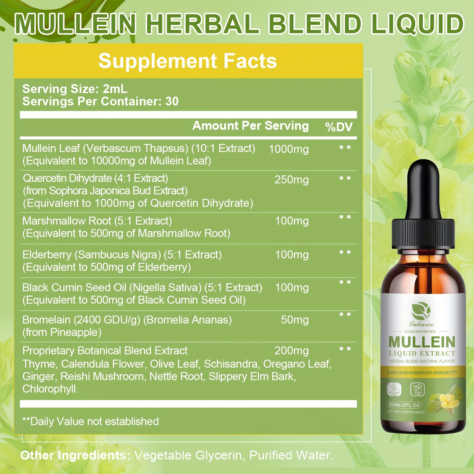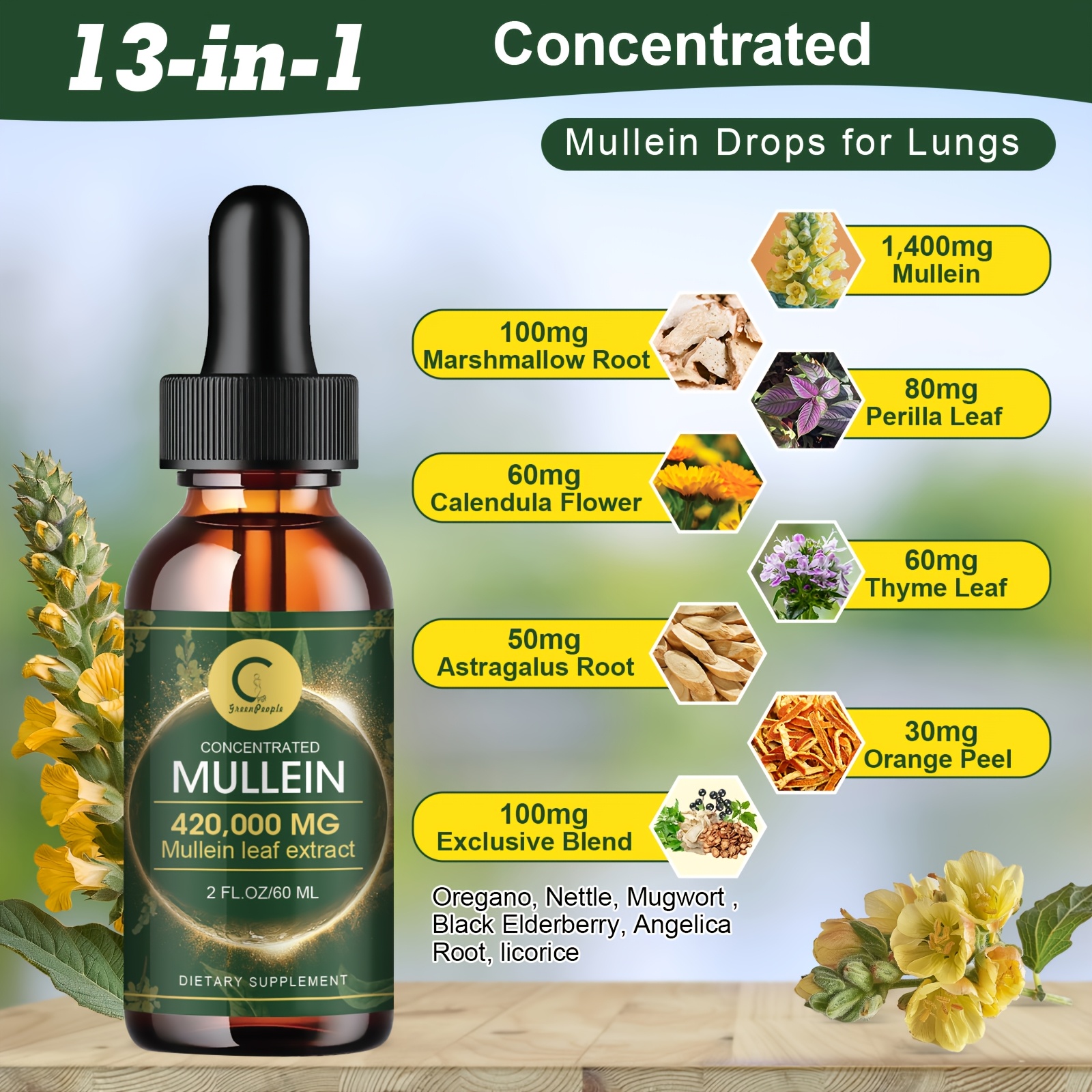 GPGP Greenpeple Mullein Drops for Lung Health – Liquid Tincture of Mullein Leaf, Supports Respiratory, Immune, And Digestive Health, Natural Herbal Supplement, Choice for Christmas Gifts, 2Fl.Oz/60Ml, Winter Gifts